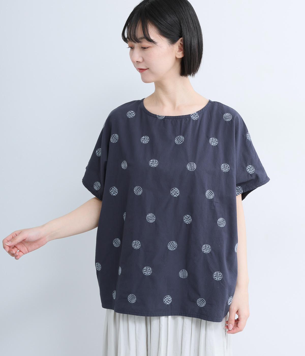 お花とトンボ刺繍コットンブラウス