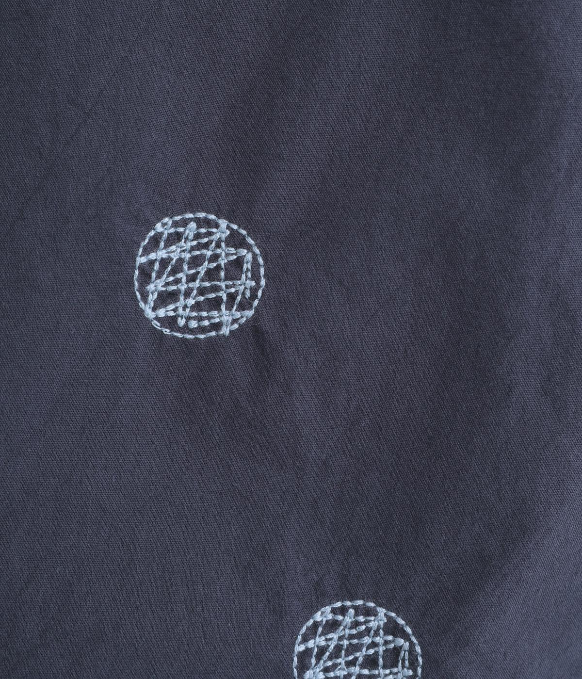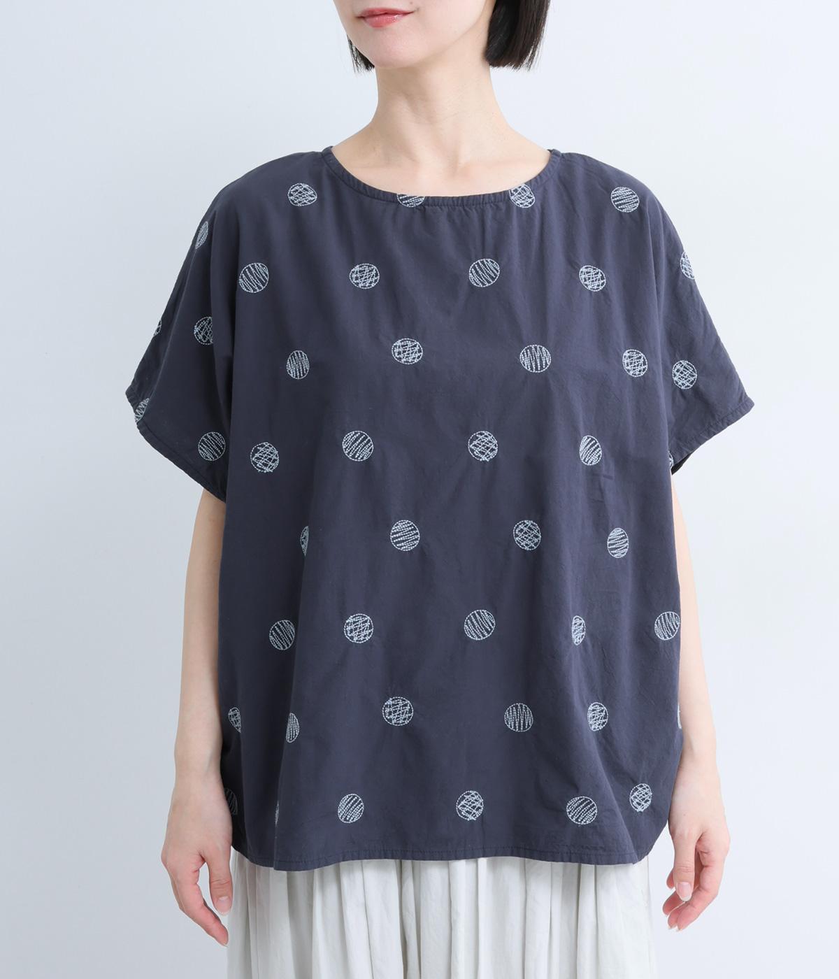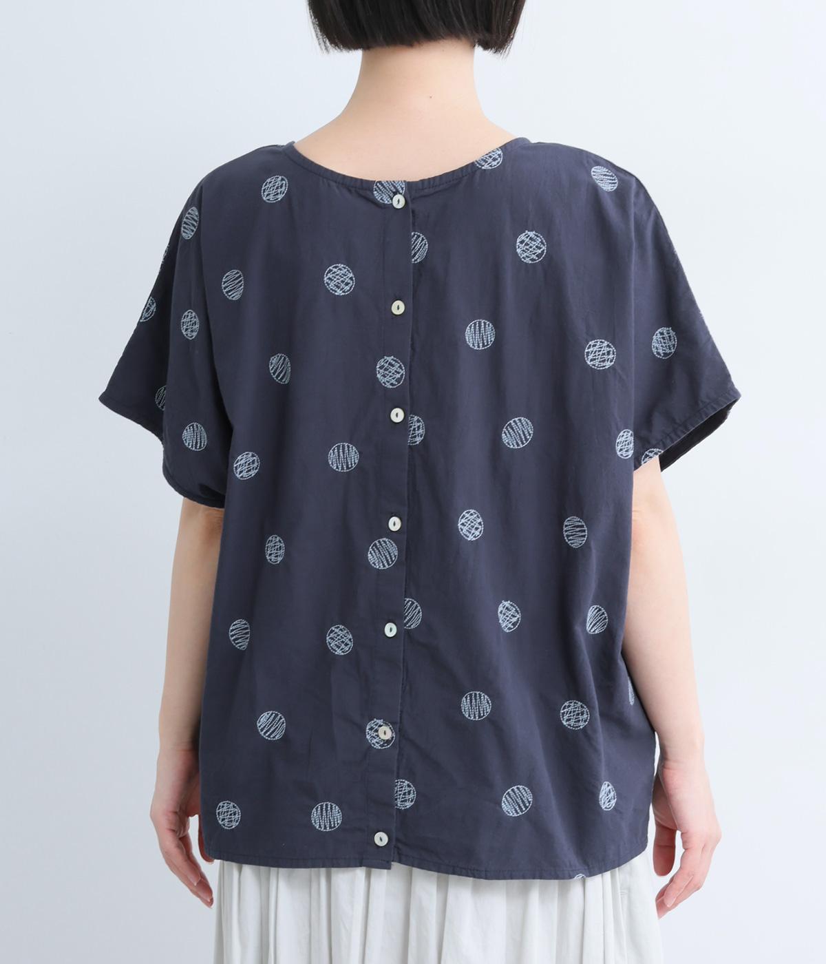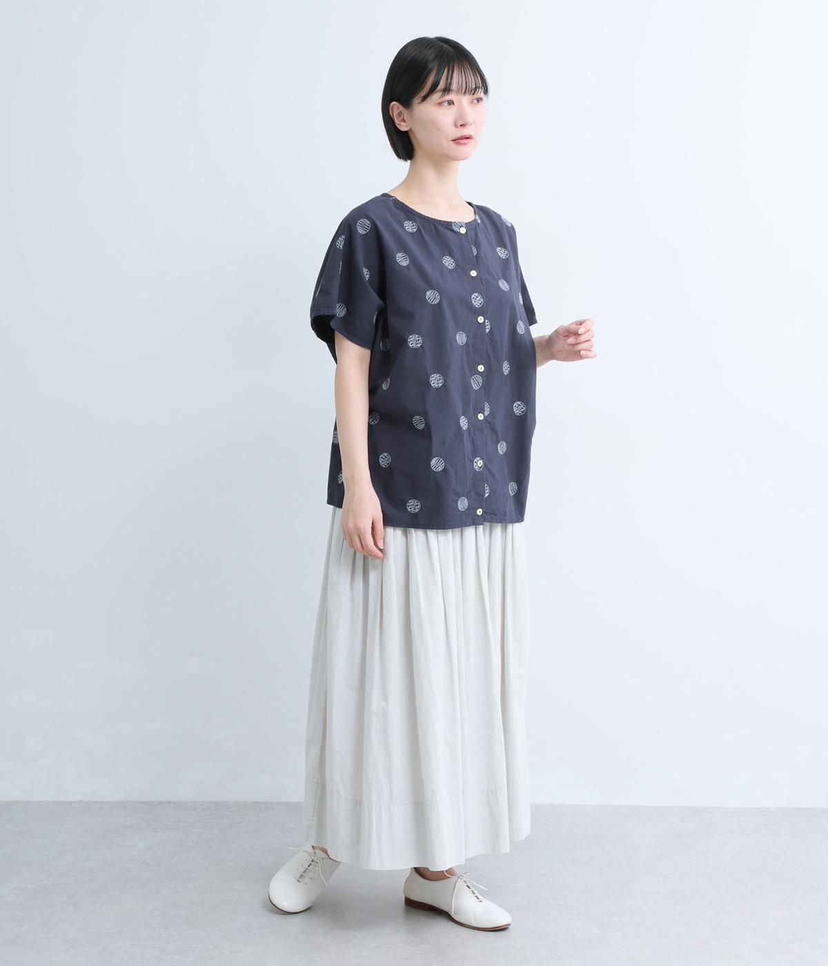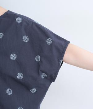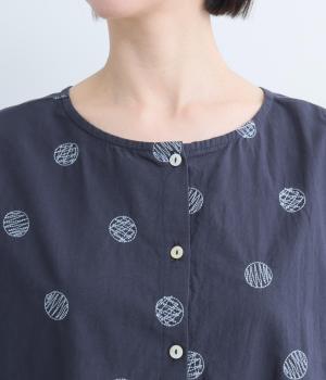 リネンネコドット刺繍マオカラーブラウス