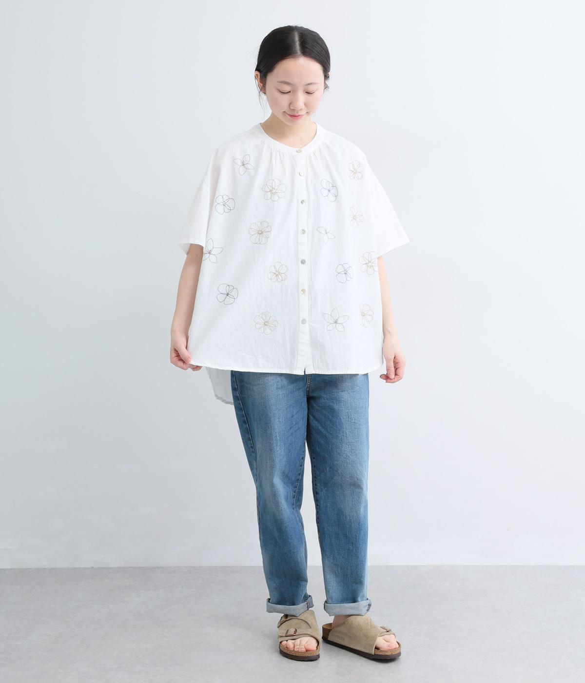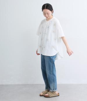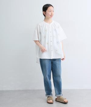 5.4ozデニム刺繍ブラウス