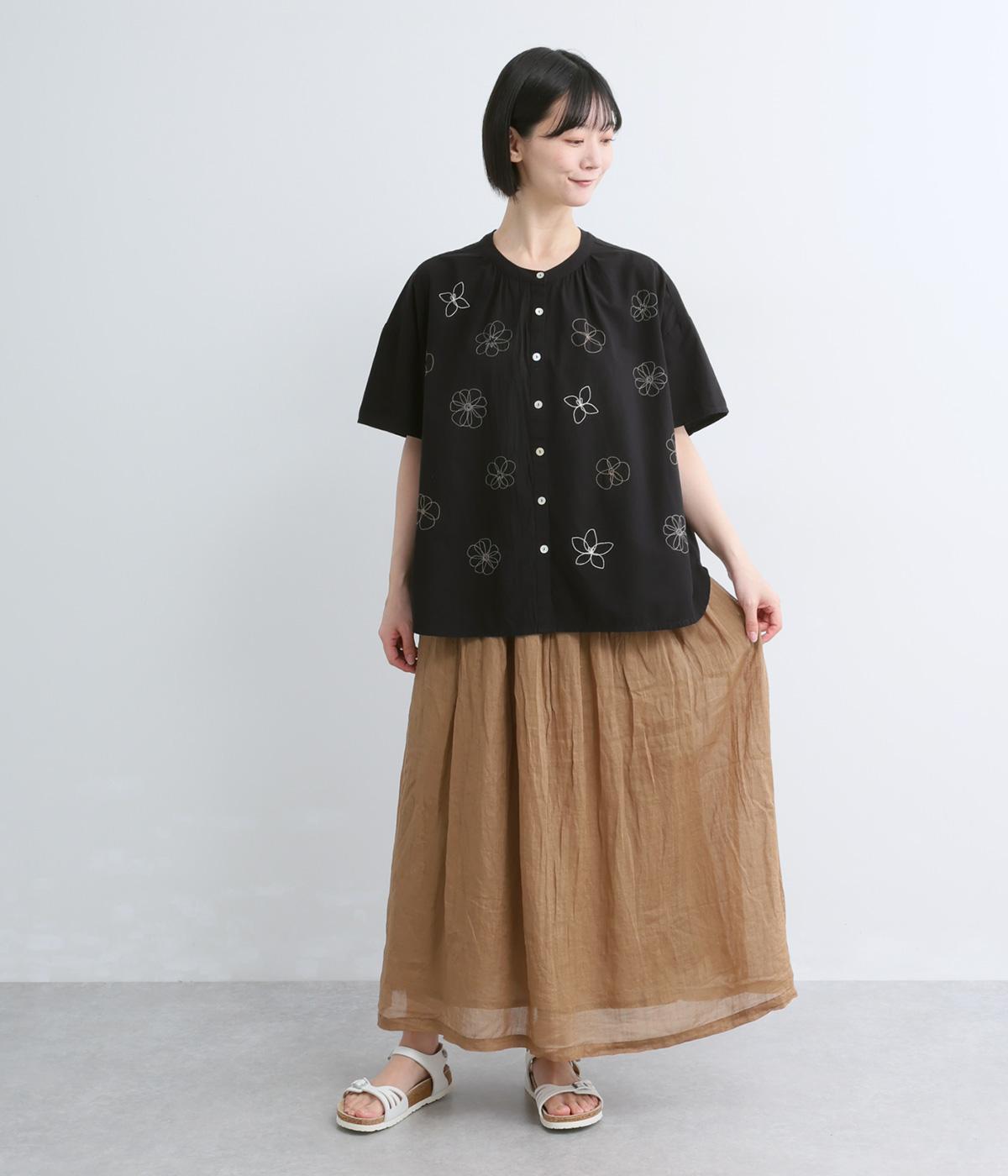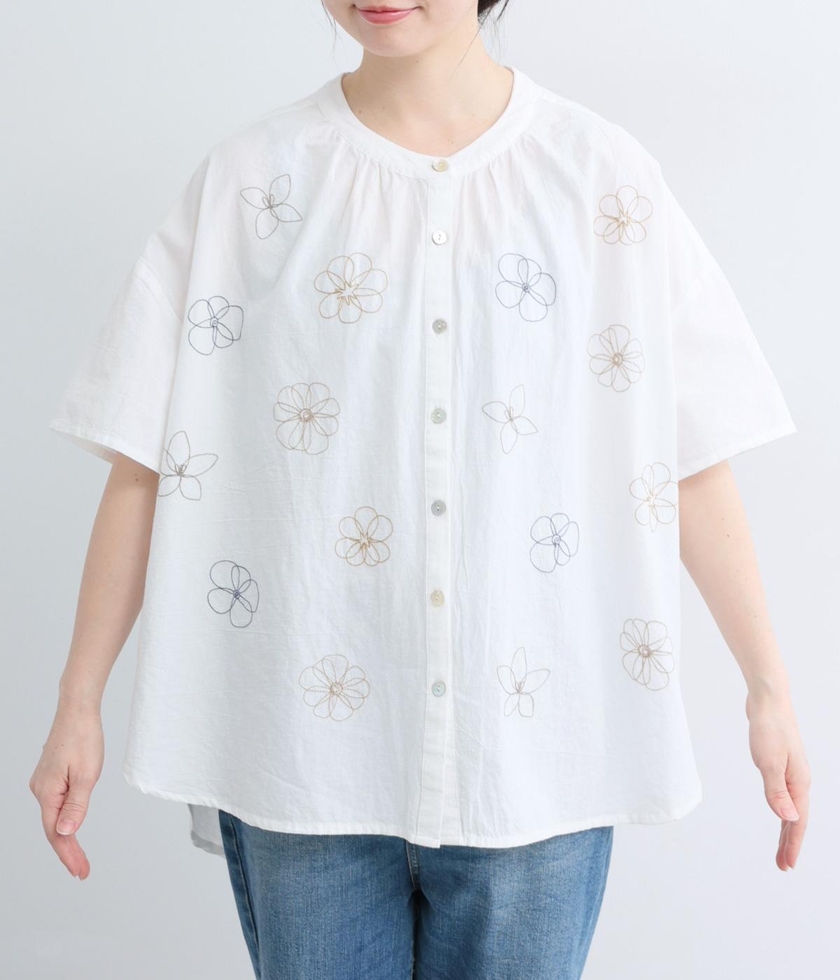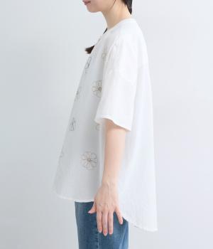 <アーティストコラボ マツモトヨーコ>コットンスラブ「大切にしていること」単色刺繍ブラウス