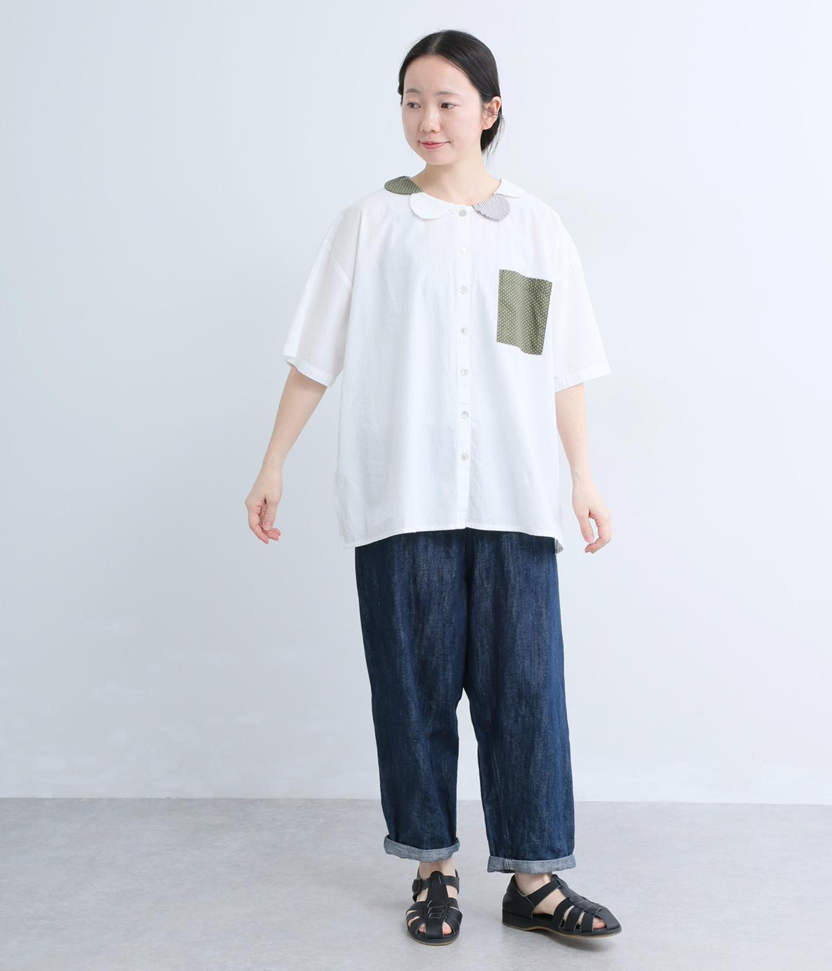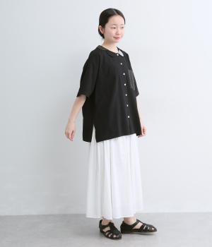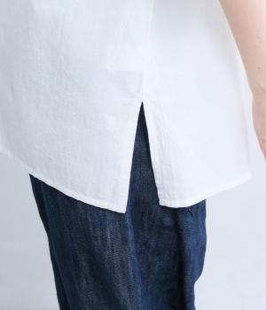 バンドカラーリネンブラウス