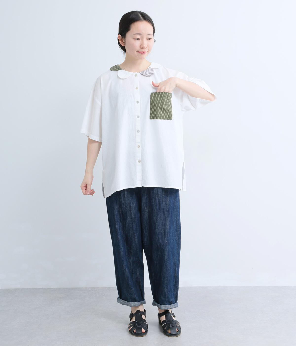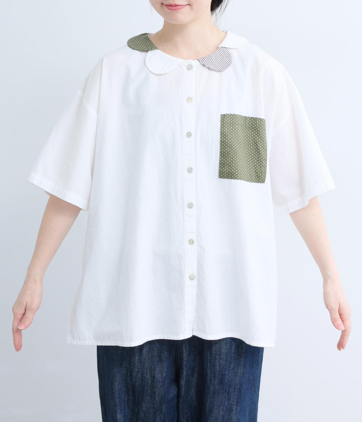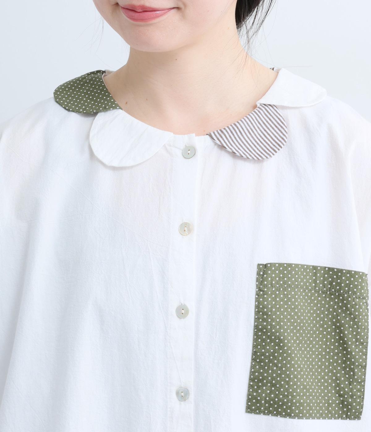 コットン襟レースブラウス