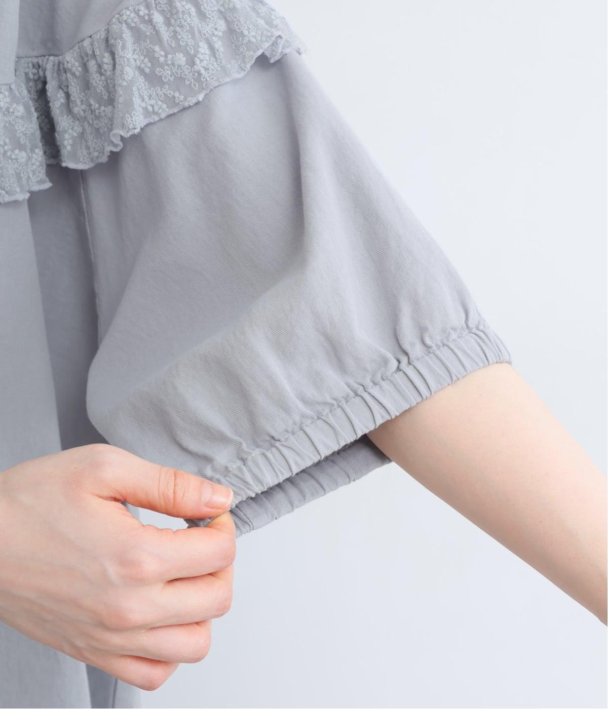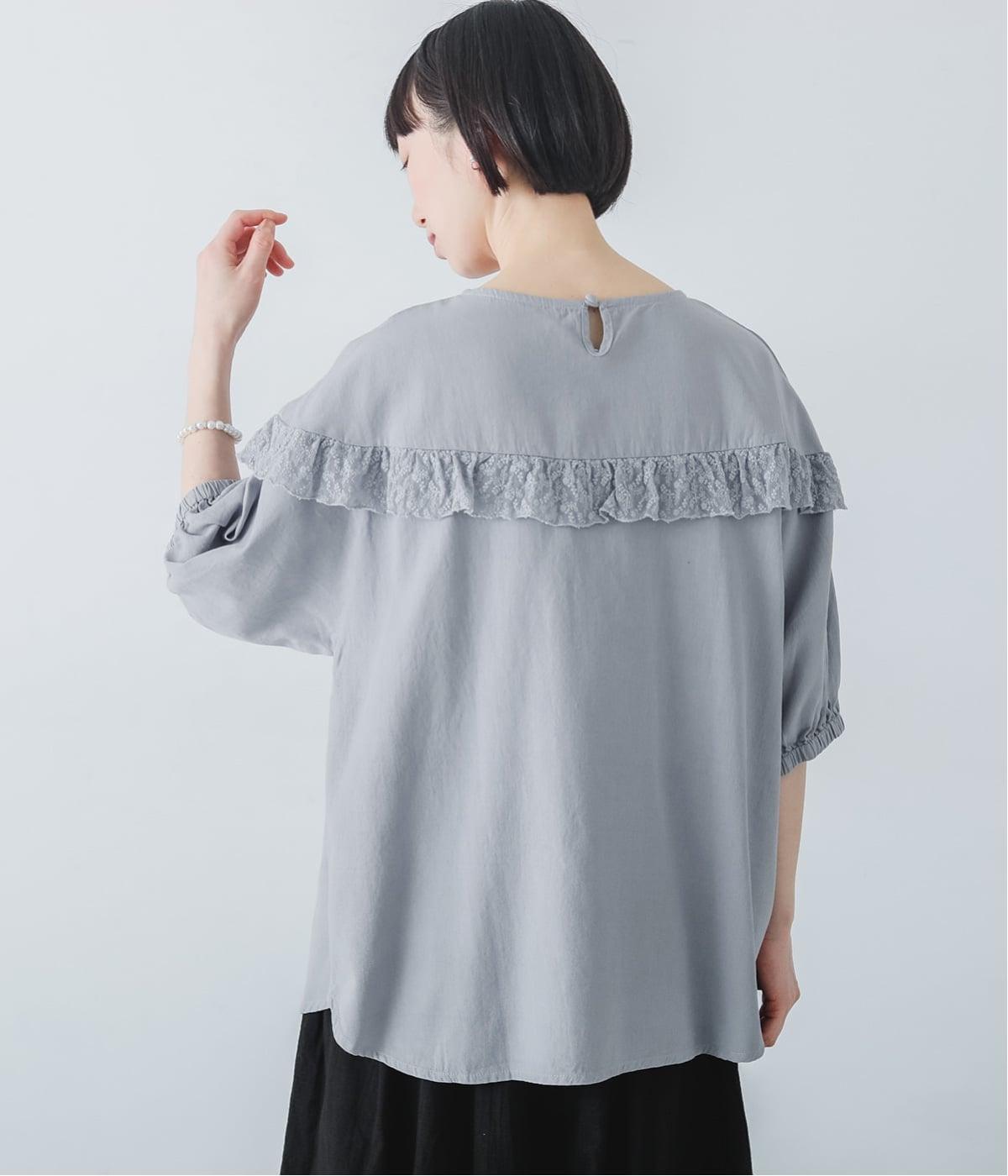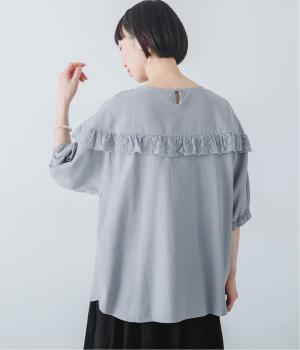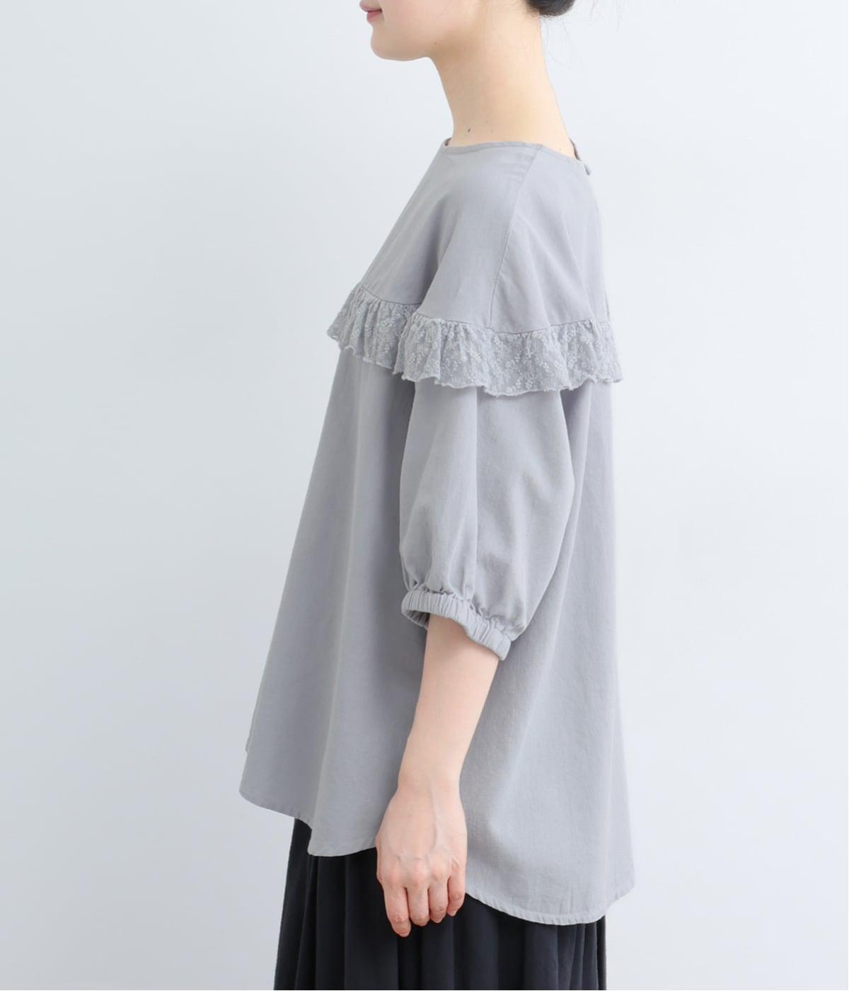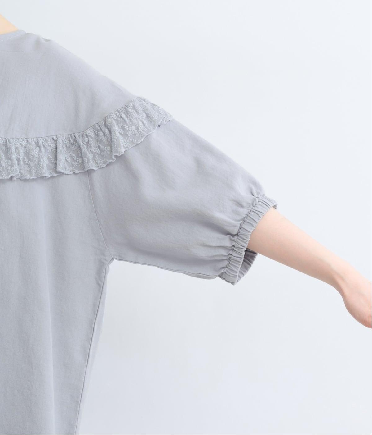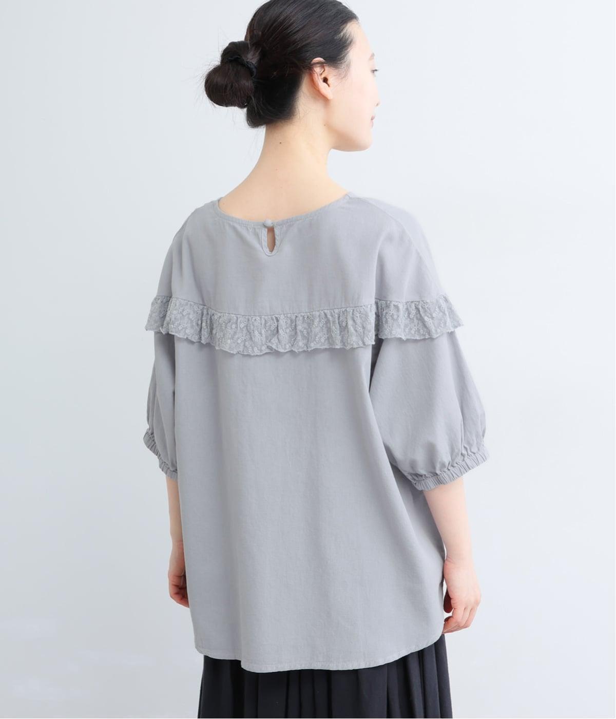袖口のギャザーと背面の涙あきが、女性らしさを引き立てるデザイン。繊細な花柄の刺繍レースで、上品なアクセントをプラスしています。