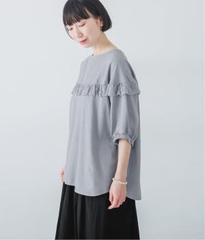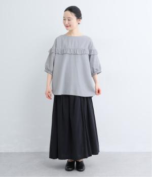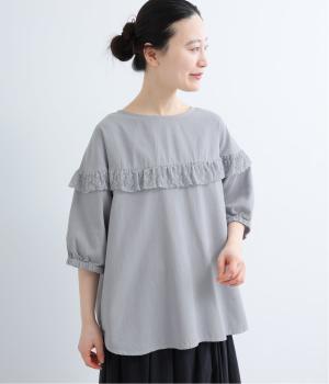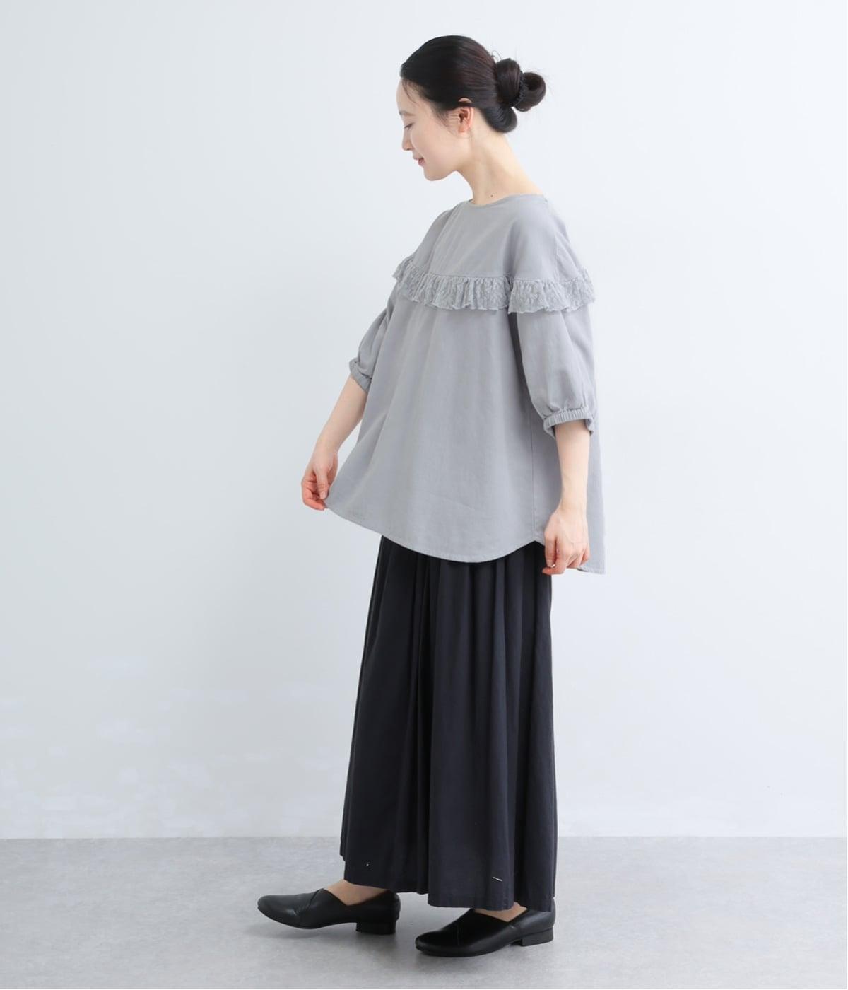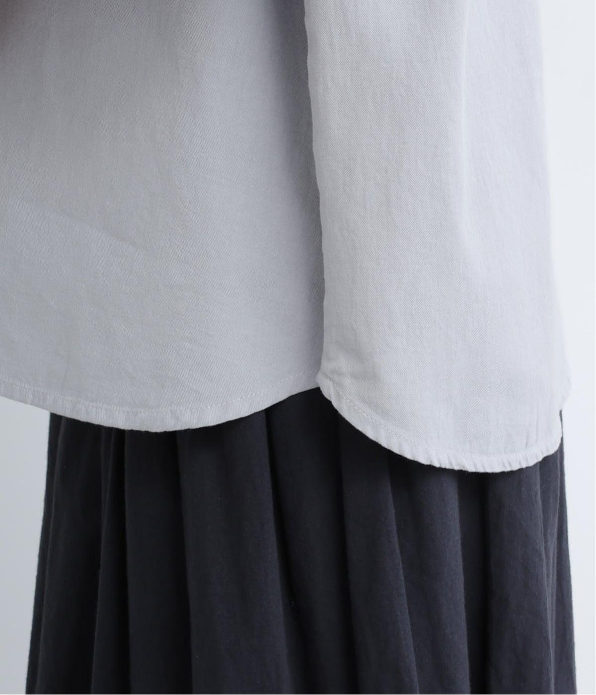 やわらかな肌ざわりが心地よいコットン布帛を使用したプルオーバー。グレーとブルーの間のような、ニュアンスのあるサックスカラーが印象的です。