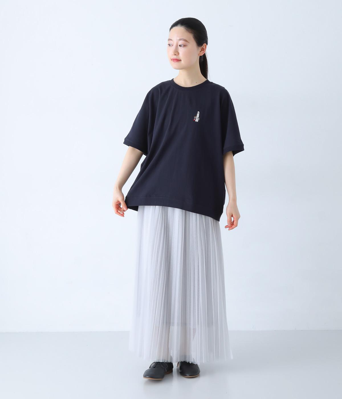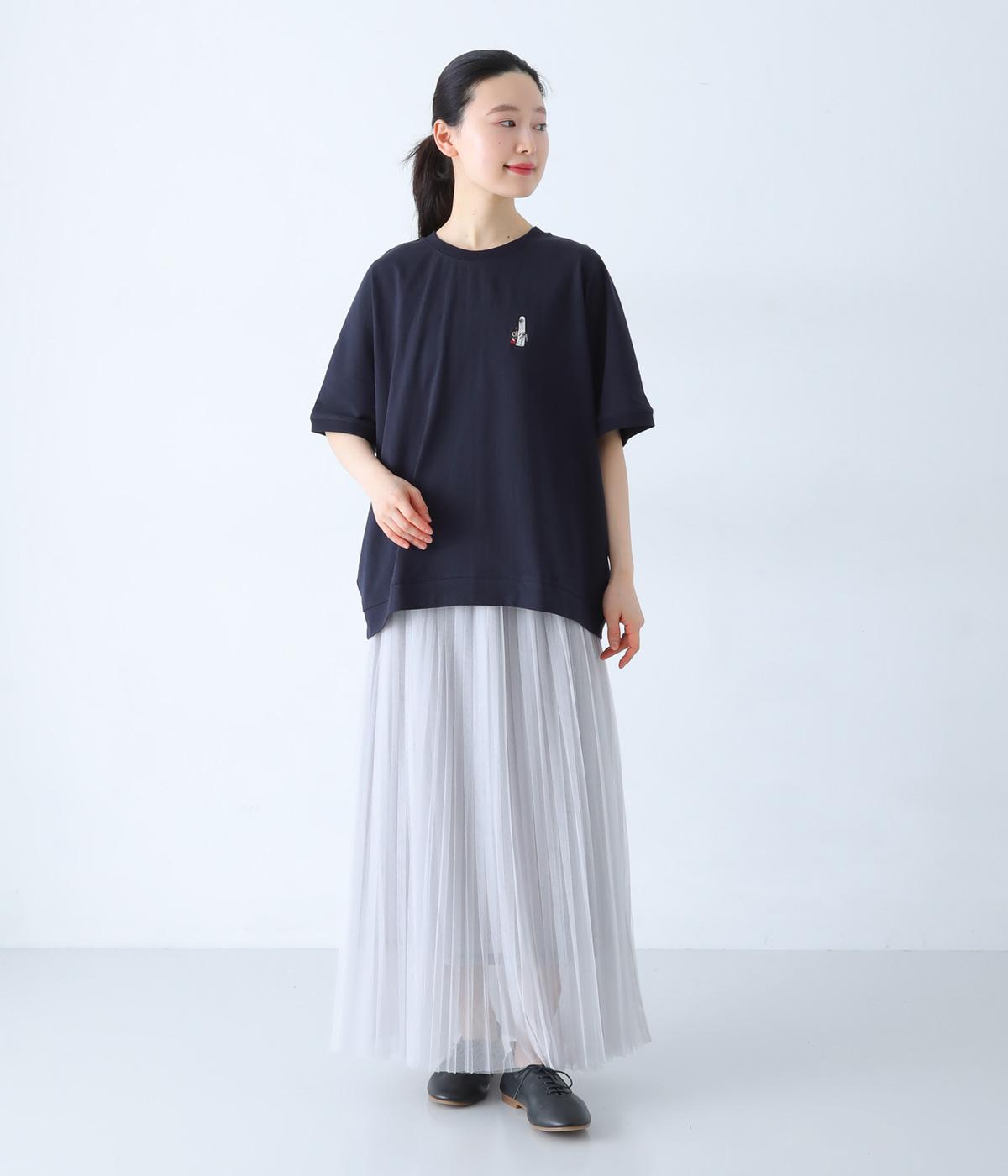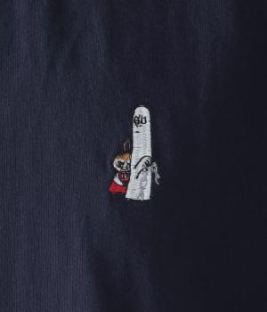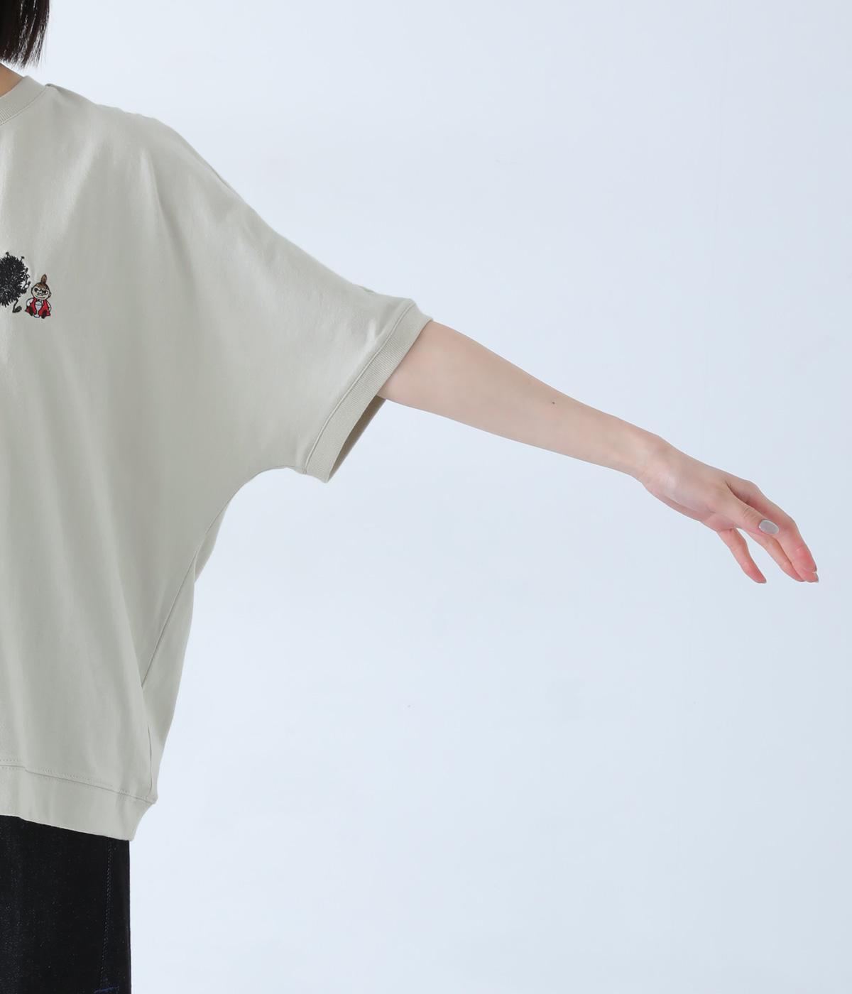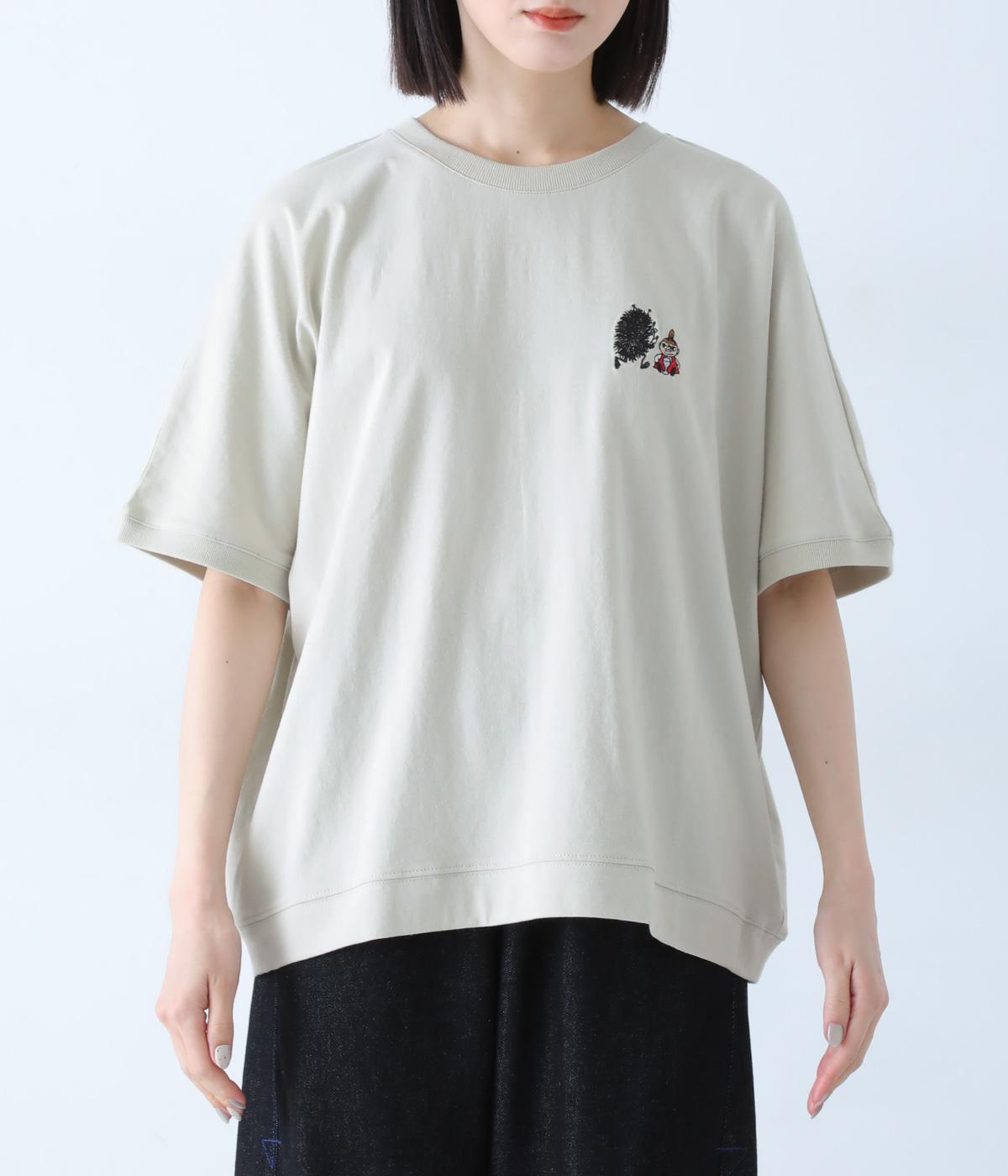 胸元にあしらわれたムーミンキャラクターの刺しゅうがやさしいアクセントに。主張しすぎないワンポイントデザインなので、大人の装いにも取り入れやすい一枚です。ゆったりとしたフォルムに、リブ仕様のディテールが加わり、メリハリのある着こなしがたのしめます。