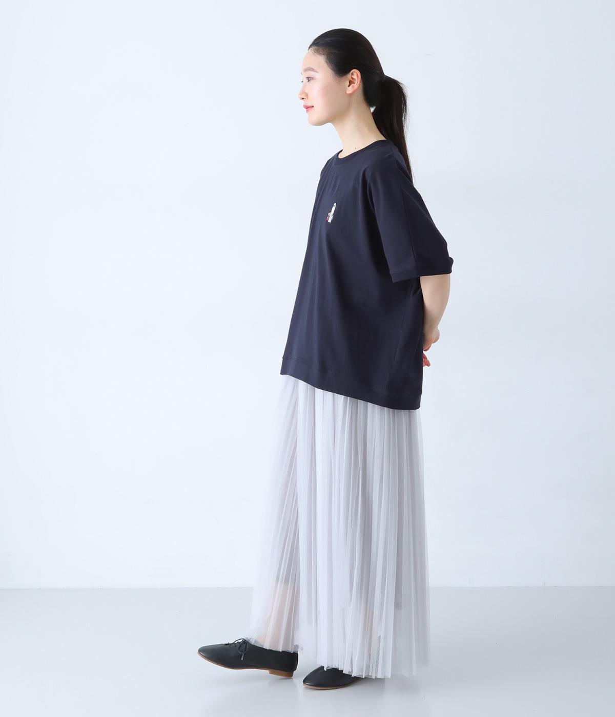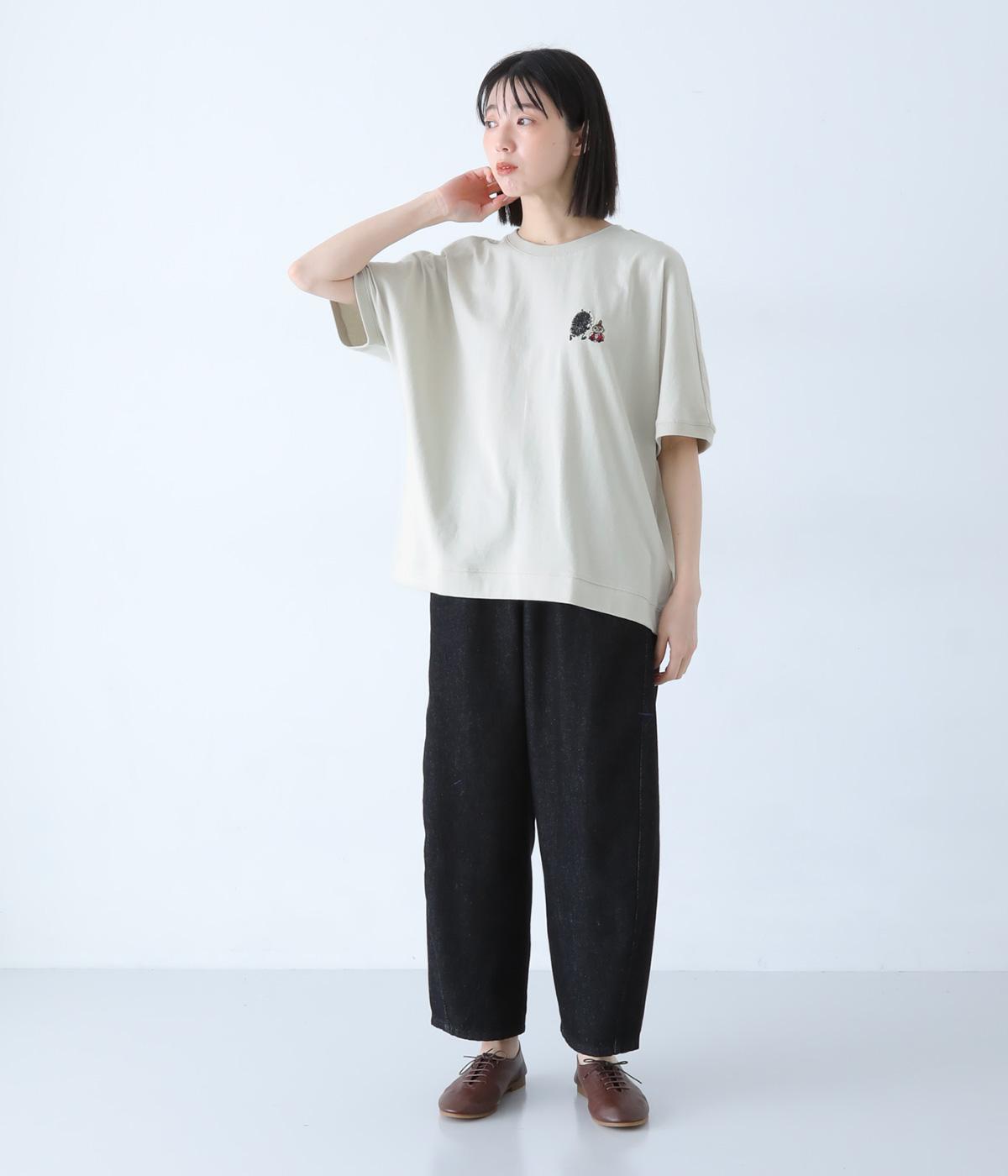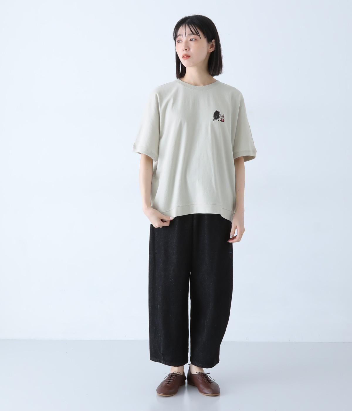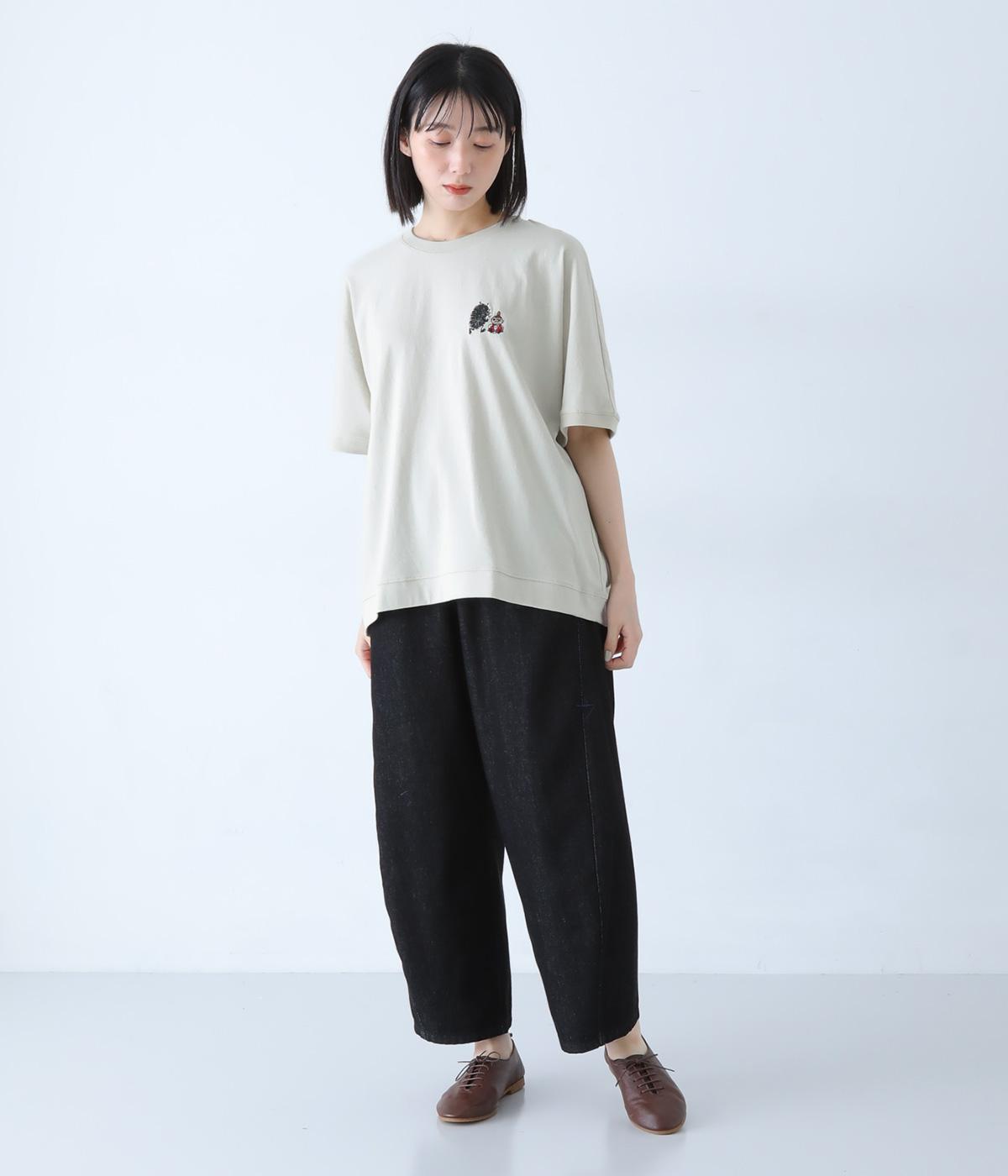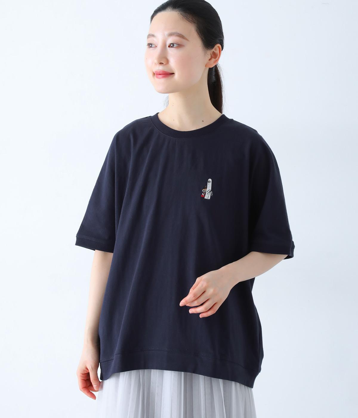 胸元にあしらわれたムーミンキャラクターの刺しゅうがやさしいアクセントに。主張しすぎないワンポイントデザインなので、大人の装いにも取り入れやすい一枚です。ゆったりとしたフォルムに、リブ仕様のディテールが加わり、メリハリのある着こなしがたのしめます。