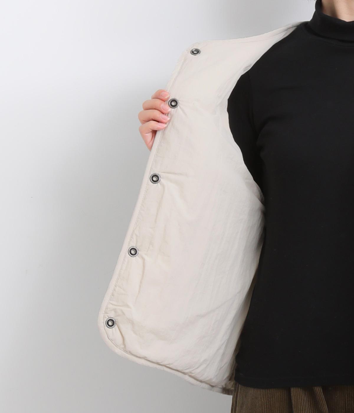 ドライなタッチが特徴のコットン生地をベースに、中綿入りでほどよい保温性をプラスしました。見た目以上に軽くさらっとした肌ざわりなので、ニットの上からも快適に重ね着できる質感です。