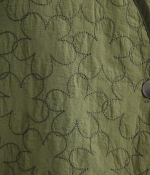 シャカシャカとしたナイロン生地を使用しました。中綿入りであたたかく、保温性と軽やかな着心地を叶えます。デイリーに取り入れやすい素材感です。