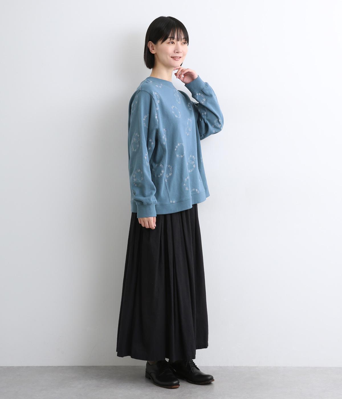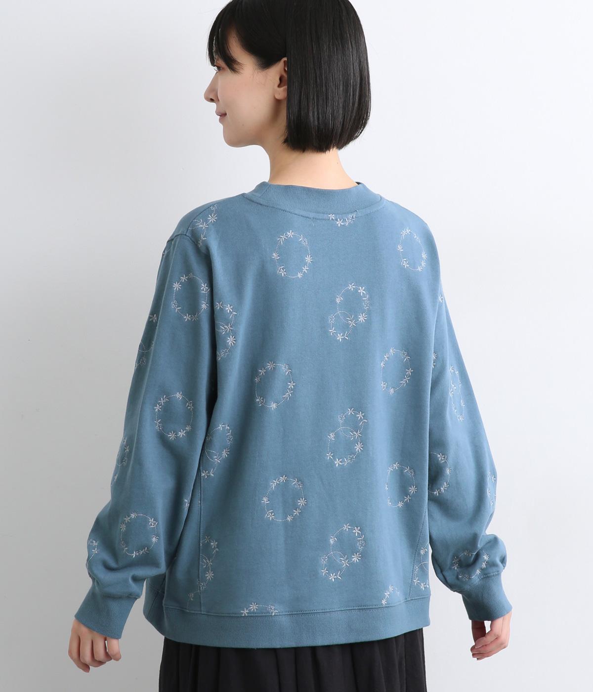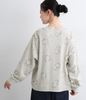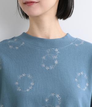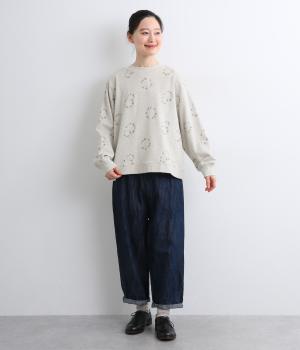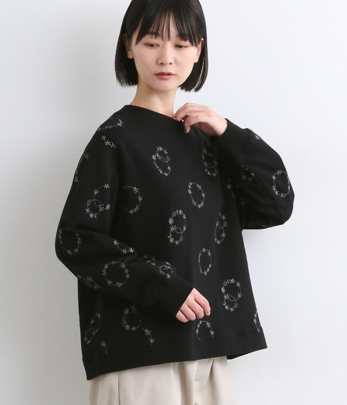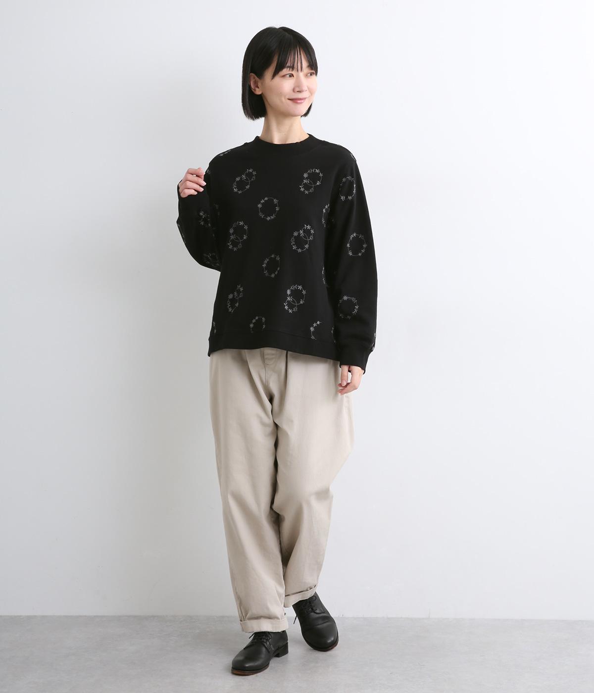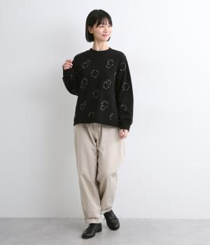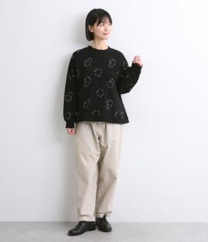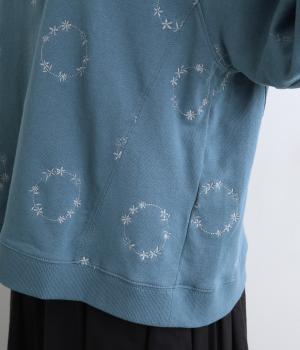 シンプルでカジュアルなスウェットプルーバーに円を描いた花柄を総刺しゅうしました。甘すぎずシックな雰囲気に仕上げて、大人らしい装いになじみます。ボトムスを選ばず、一枚でコーディネートが完成する頼りになるアイテムです。