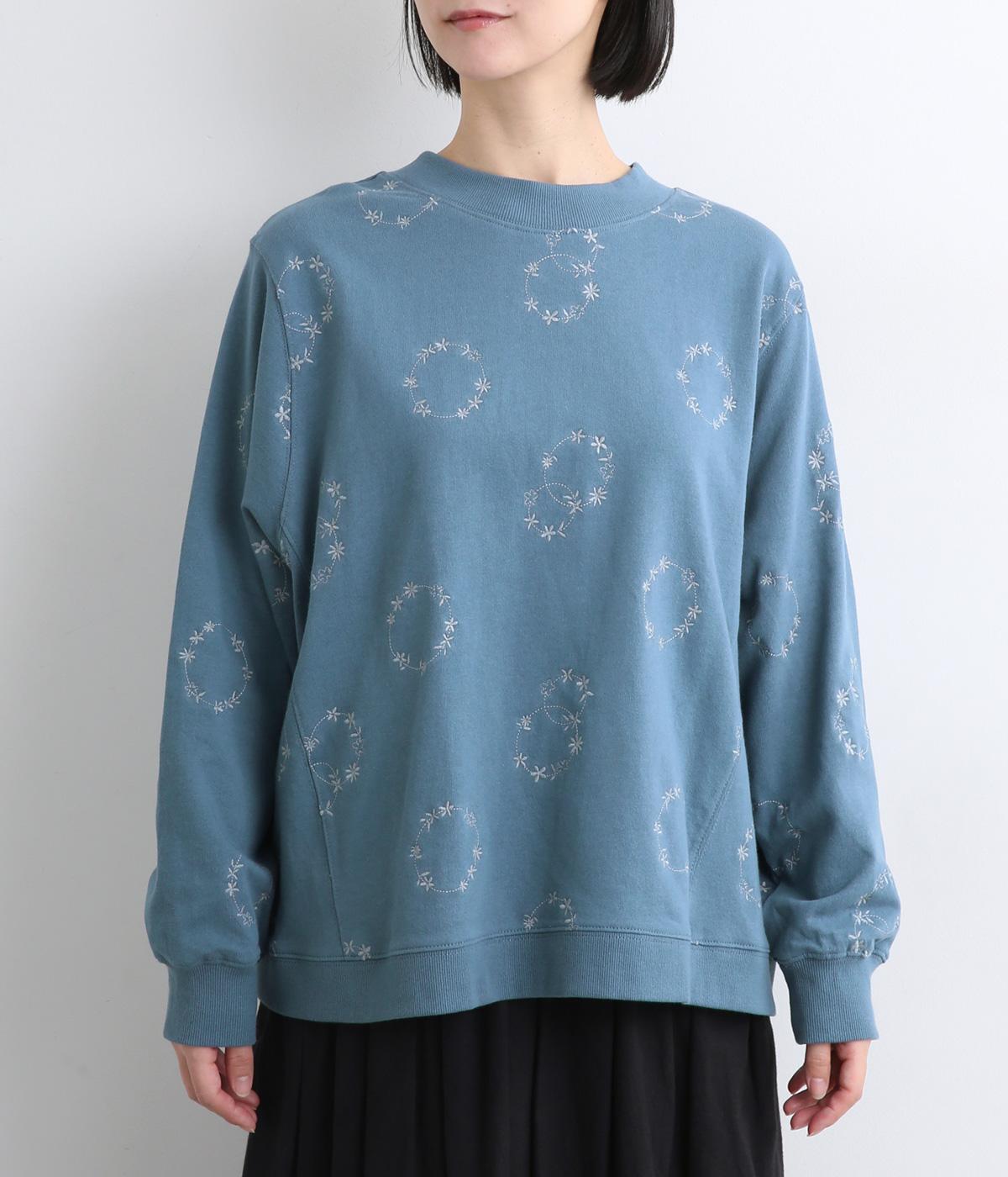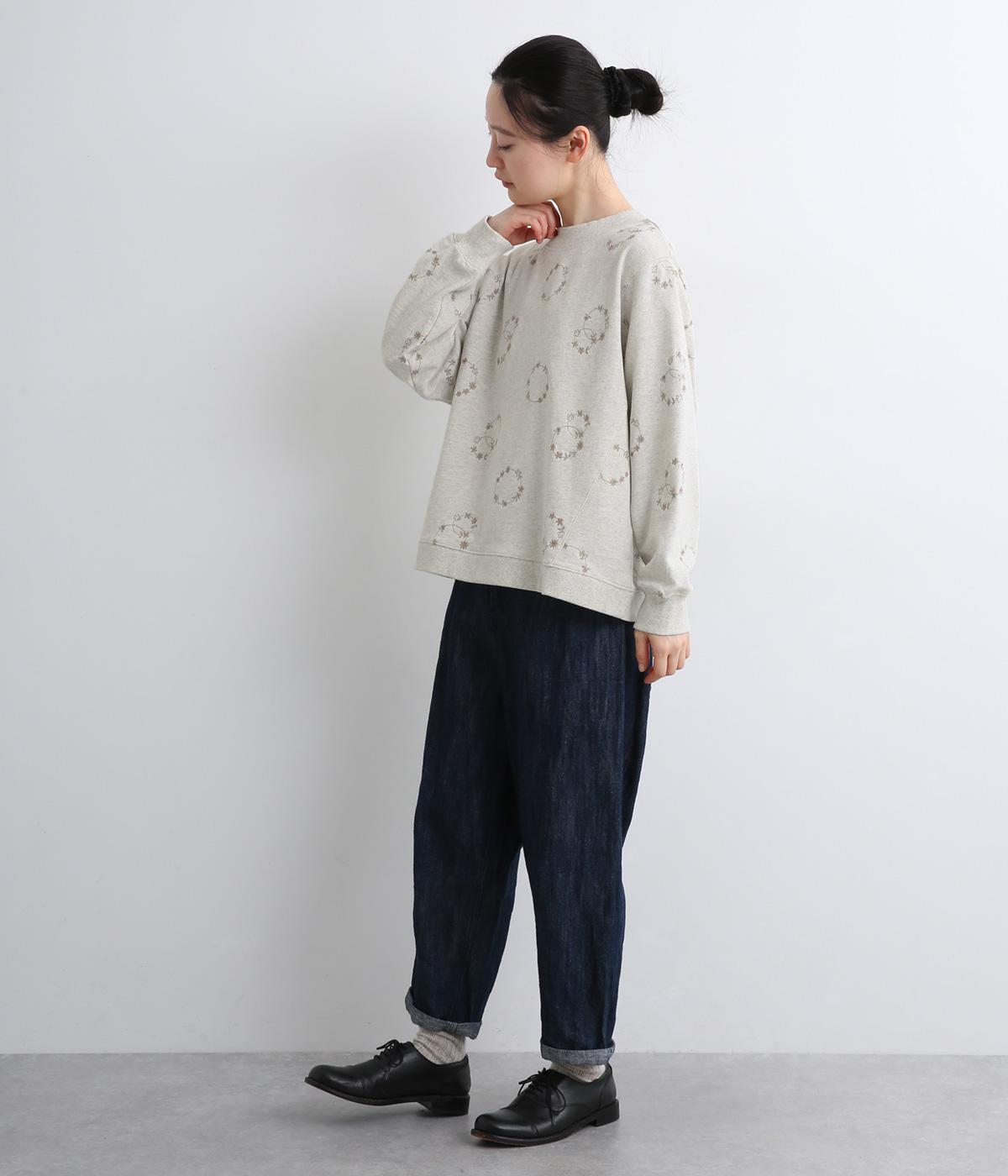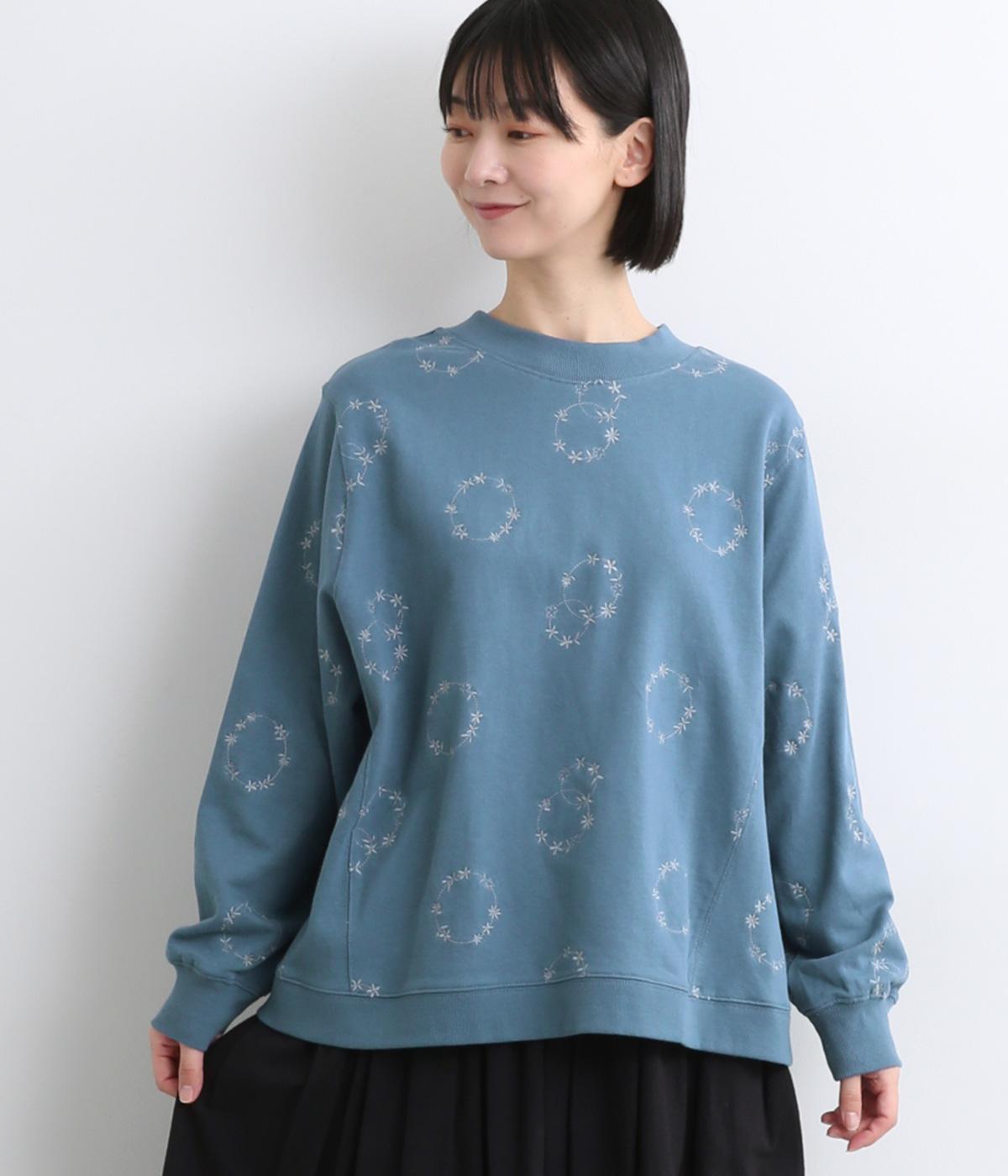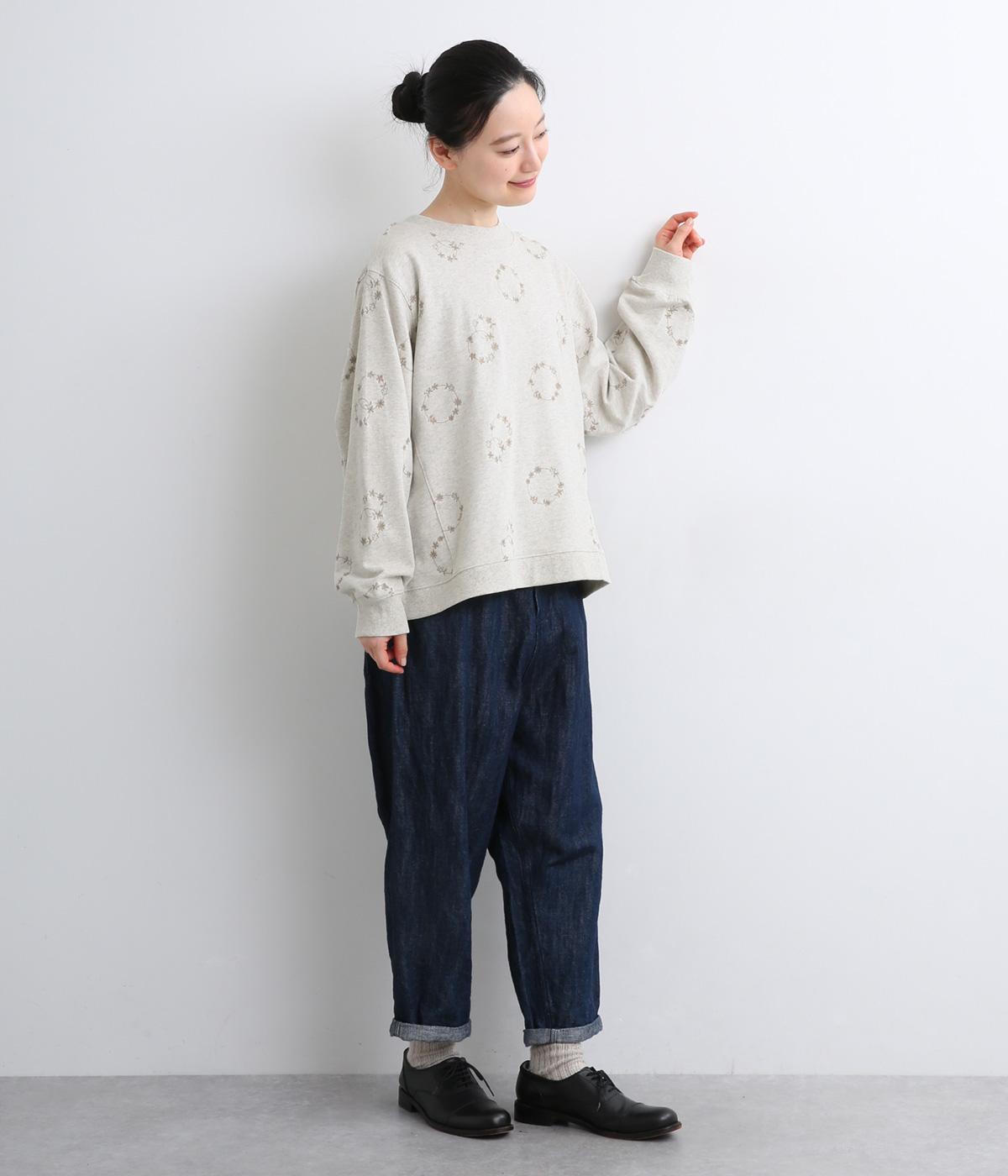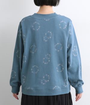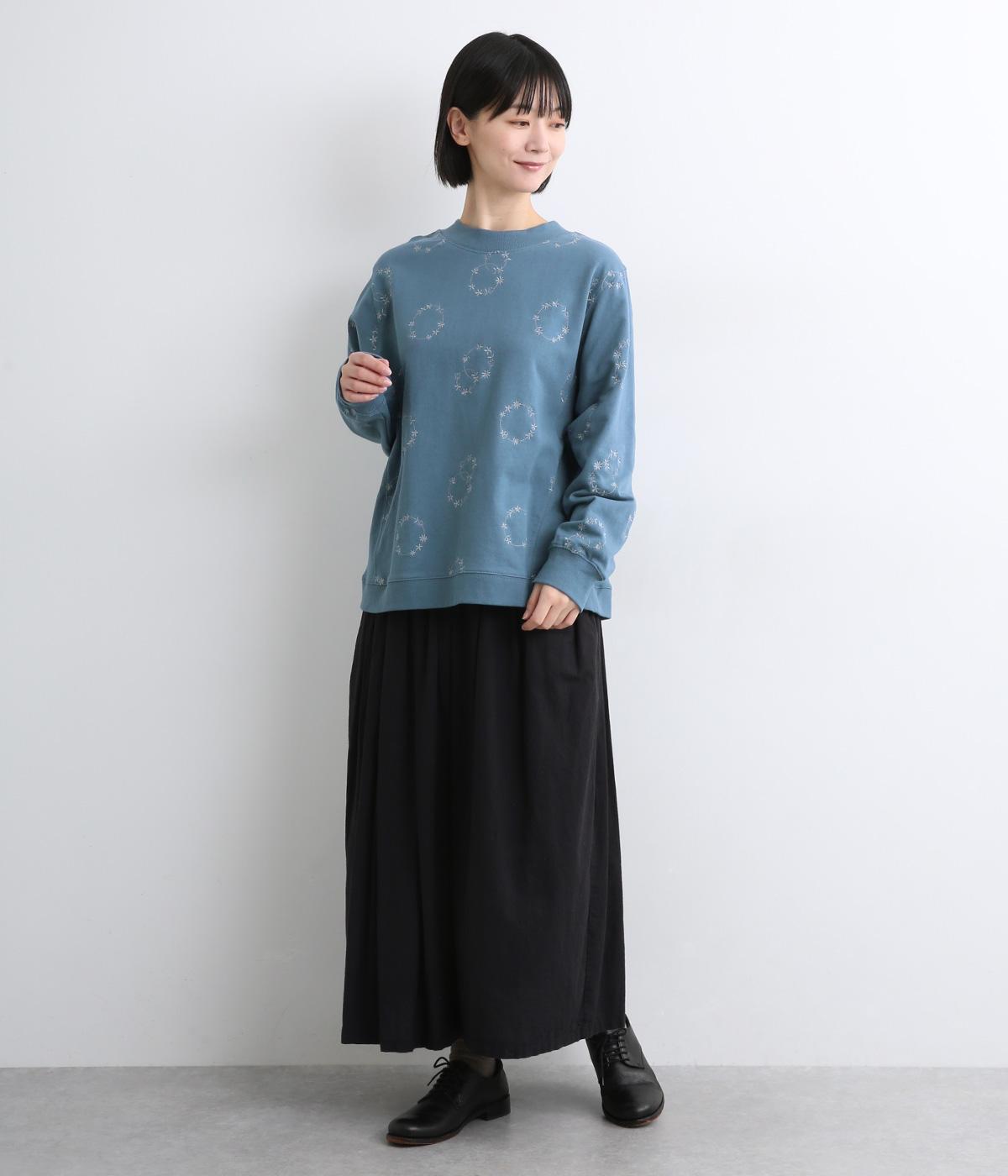 シンプルでカジュアルなスウェットプルーバーに円を描いた花柄を総刺しゅうしました。甘すぎずシックな雰囲気に仕上げて、大人らしい装いになじみます。ボトムスを選ばず、一枚でコーディネートが完成する頼りになるアイテムです。