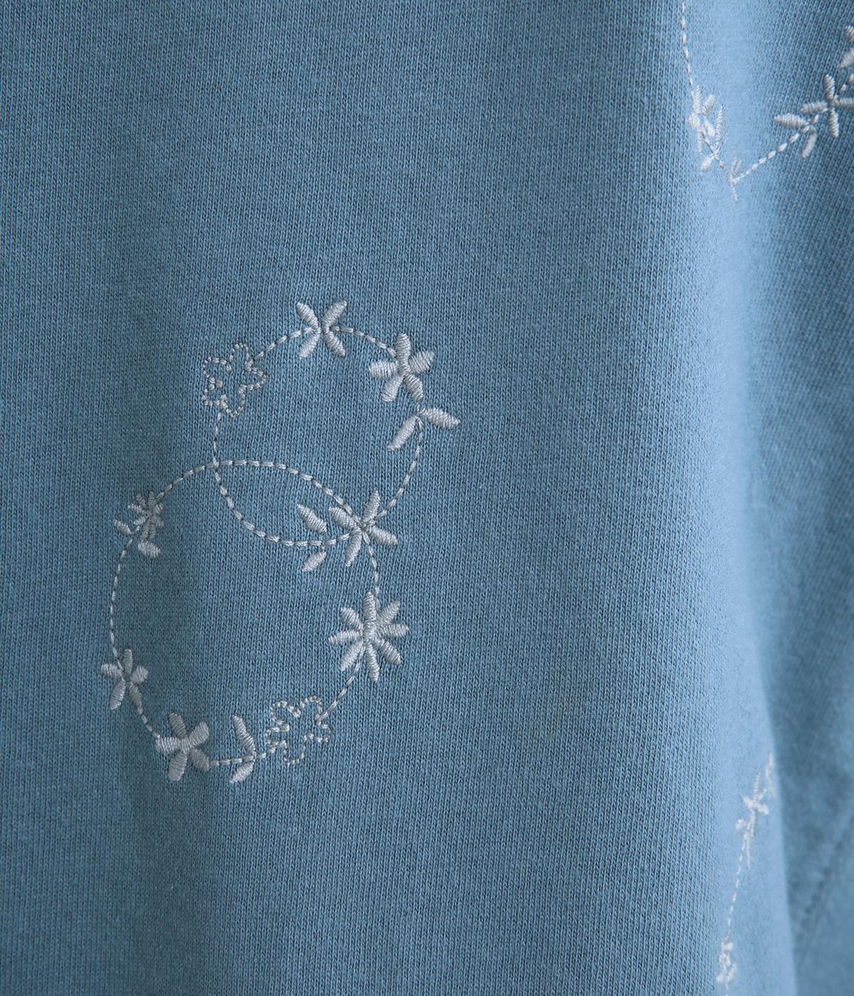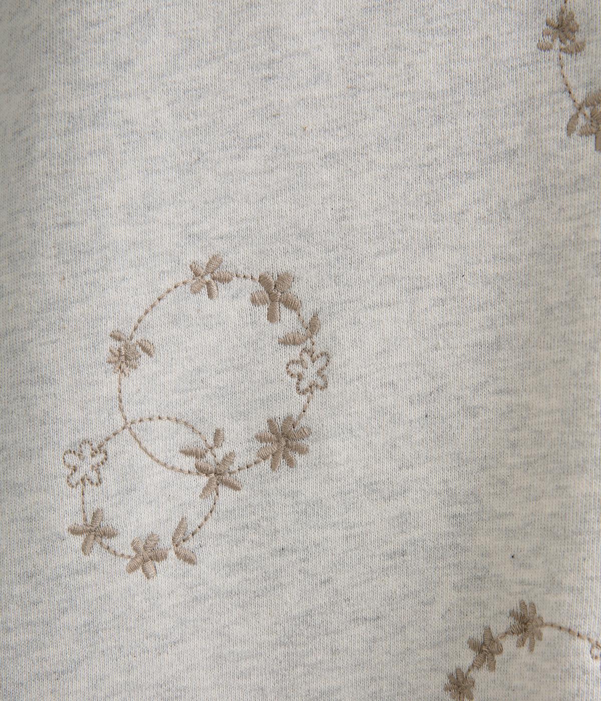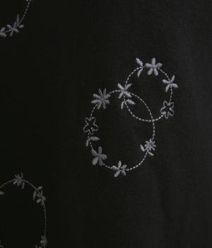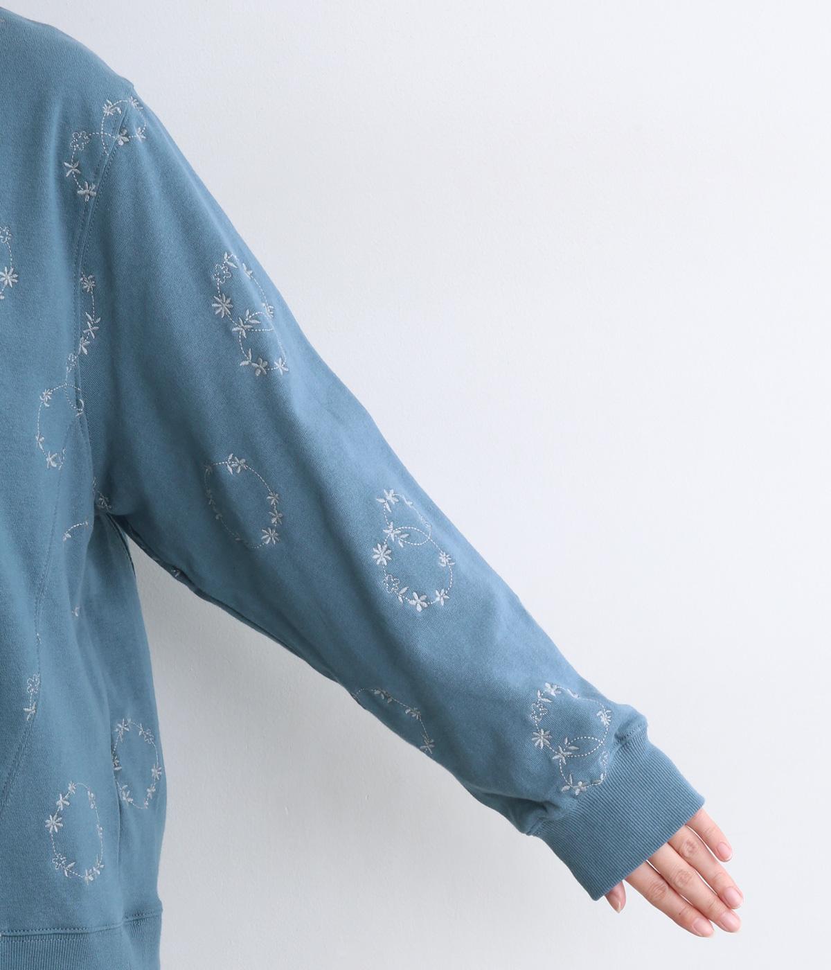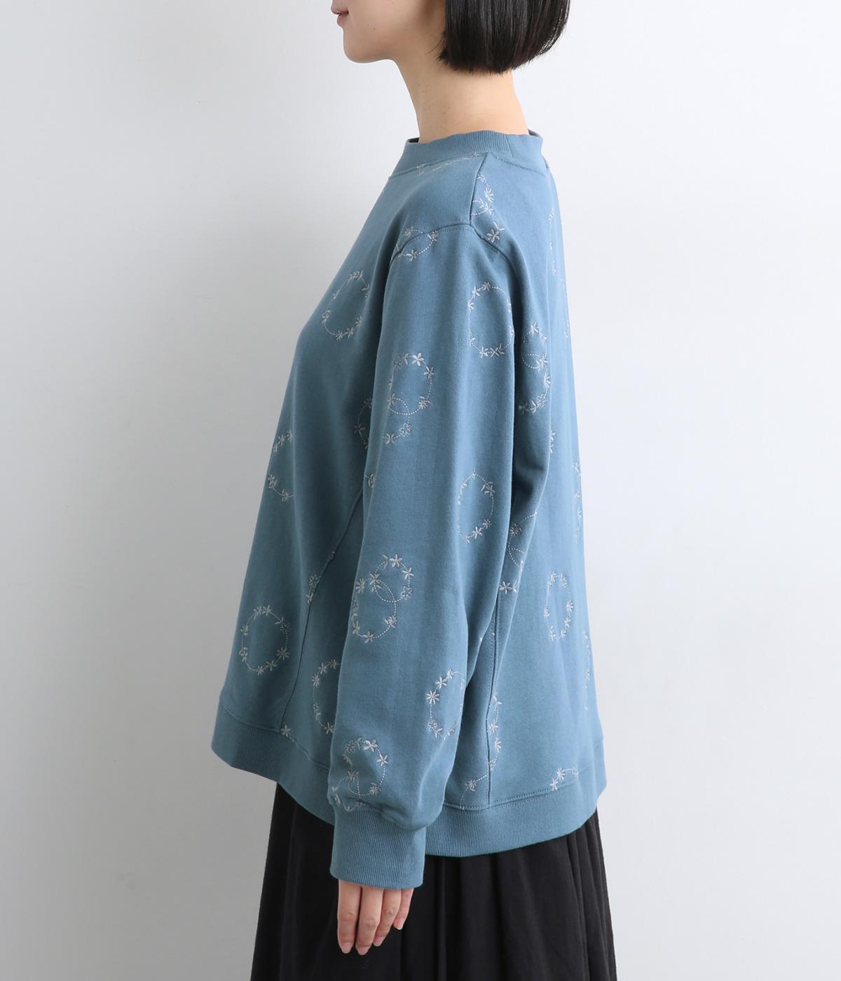シンプルでカジュアルなスウェットプルーバーに円を描いた花柄を総刺しゅうしました。甘すぎずシックな雰囲気に仕上げて、大人らしい装いになじみます。ボトムスを選ばず、一枚でコーディネートが完成する頼りになるアイテムです。