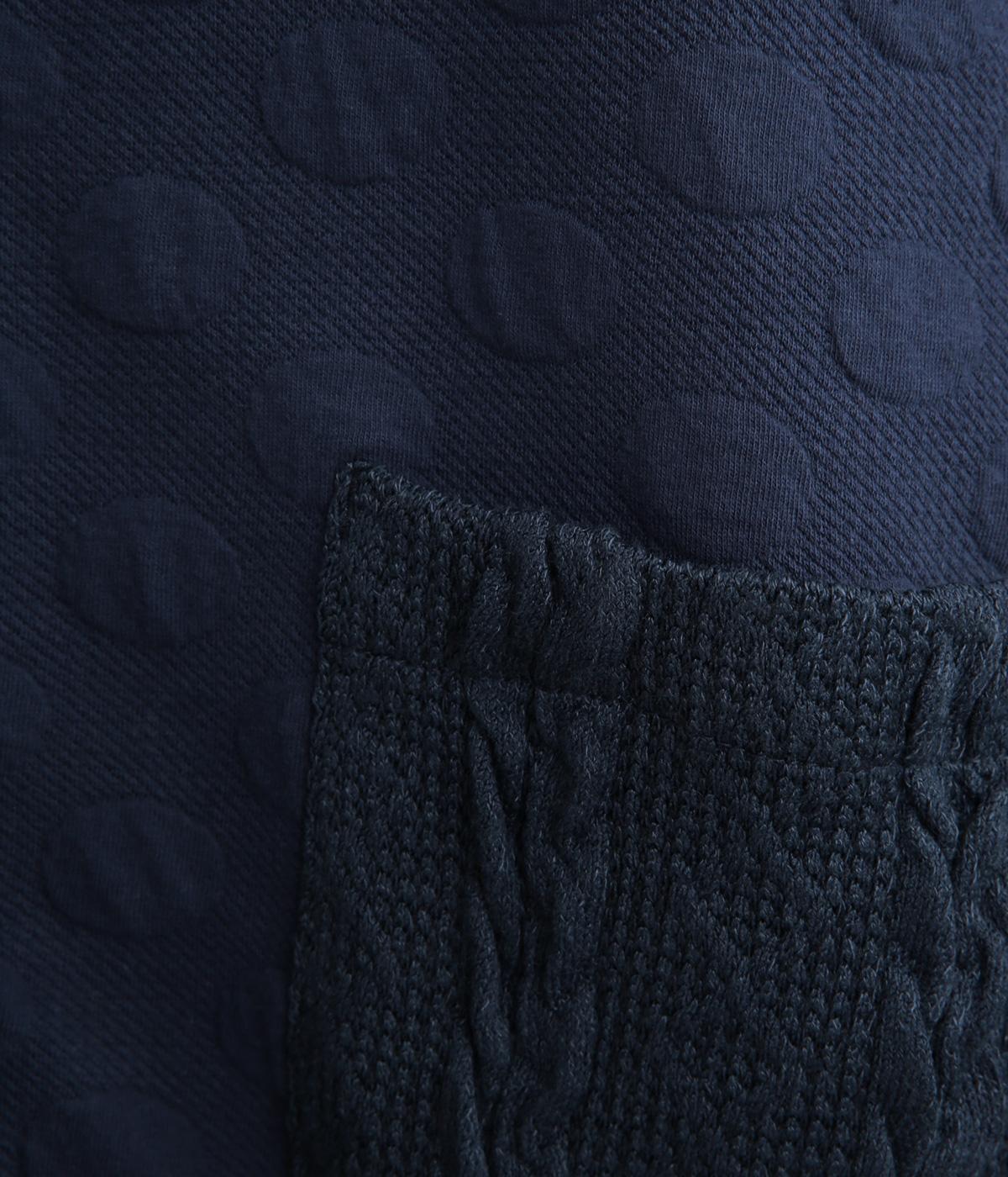 素肌にやさしく、吸水性に優れたコットンにポリエステルとポリウレタンをミックスしました。ほどよい厚みがハリをつくり、扱いやすい素材感です。ポケットはやわらかい肌ざわりのニット素材を合わせました。