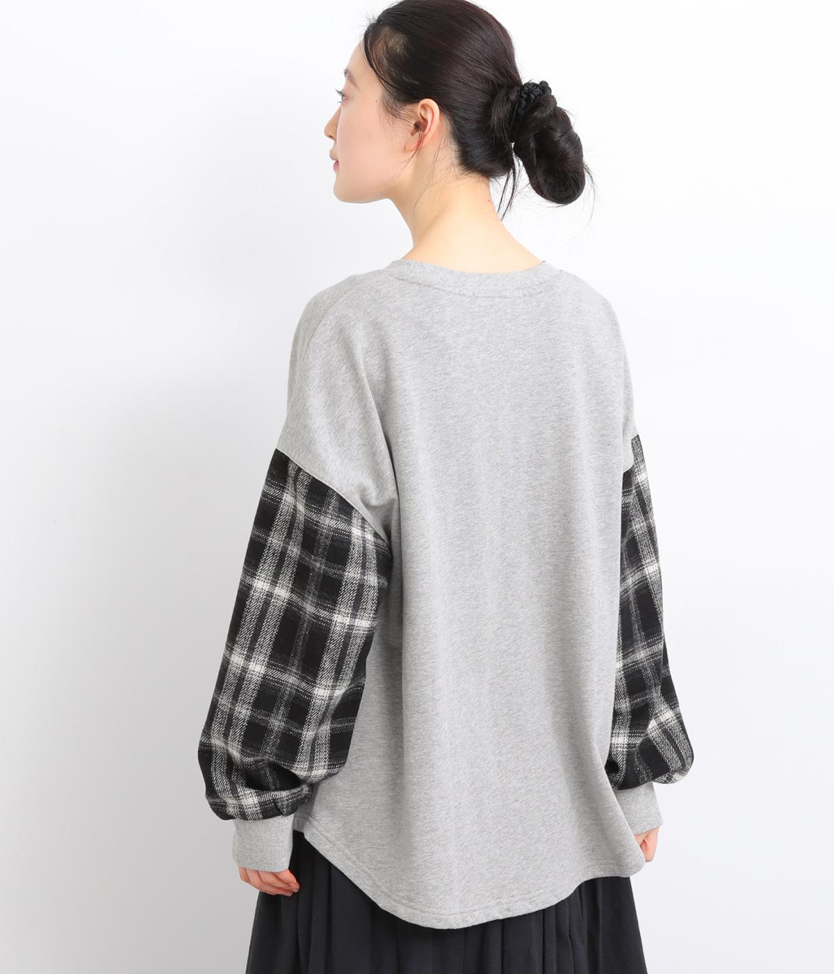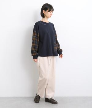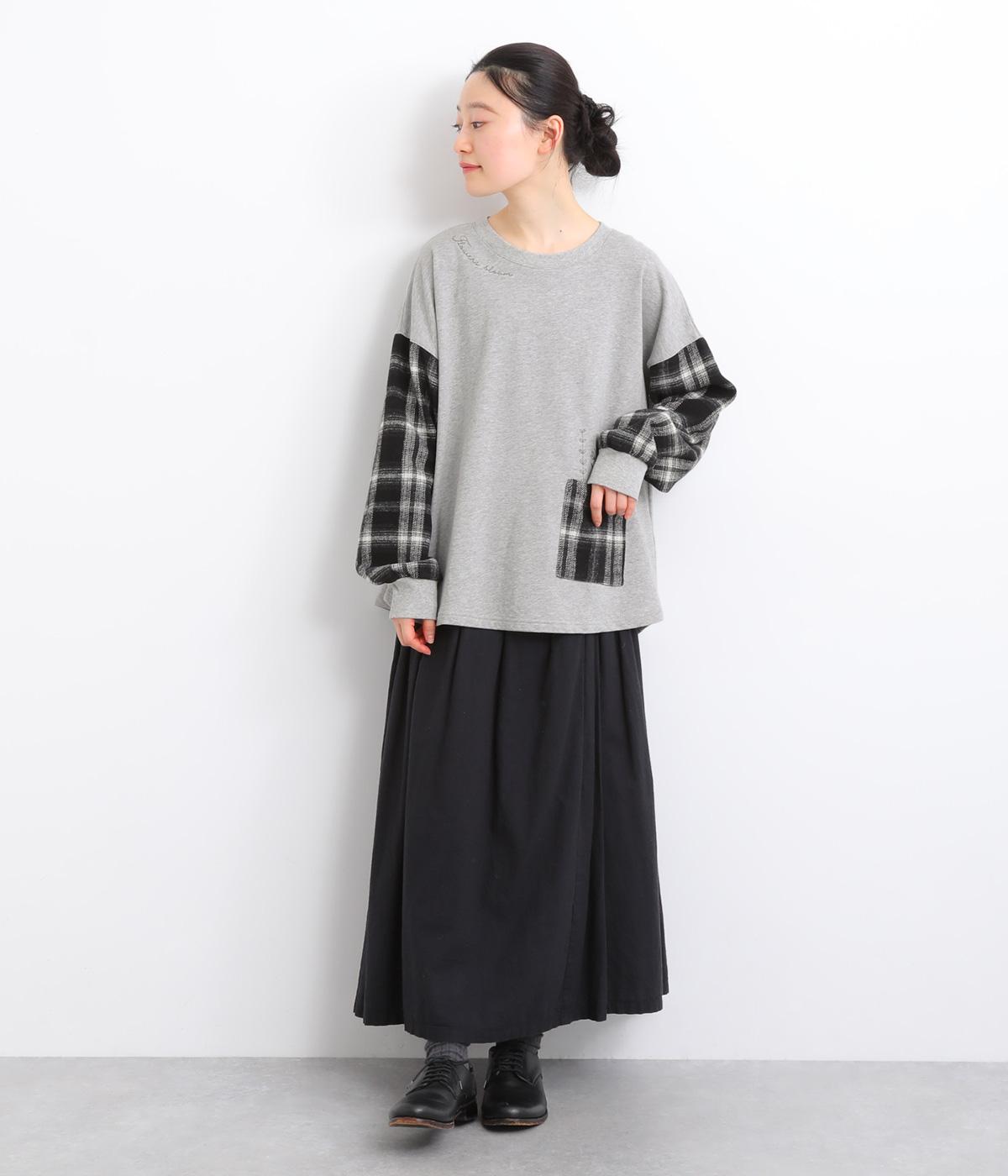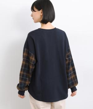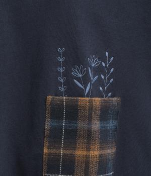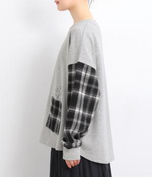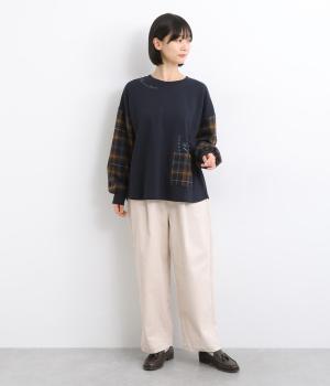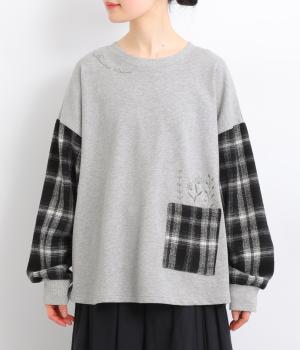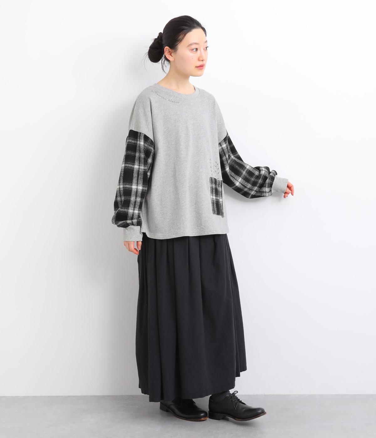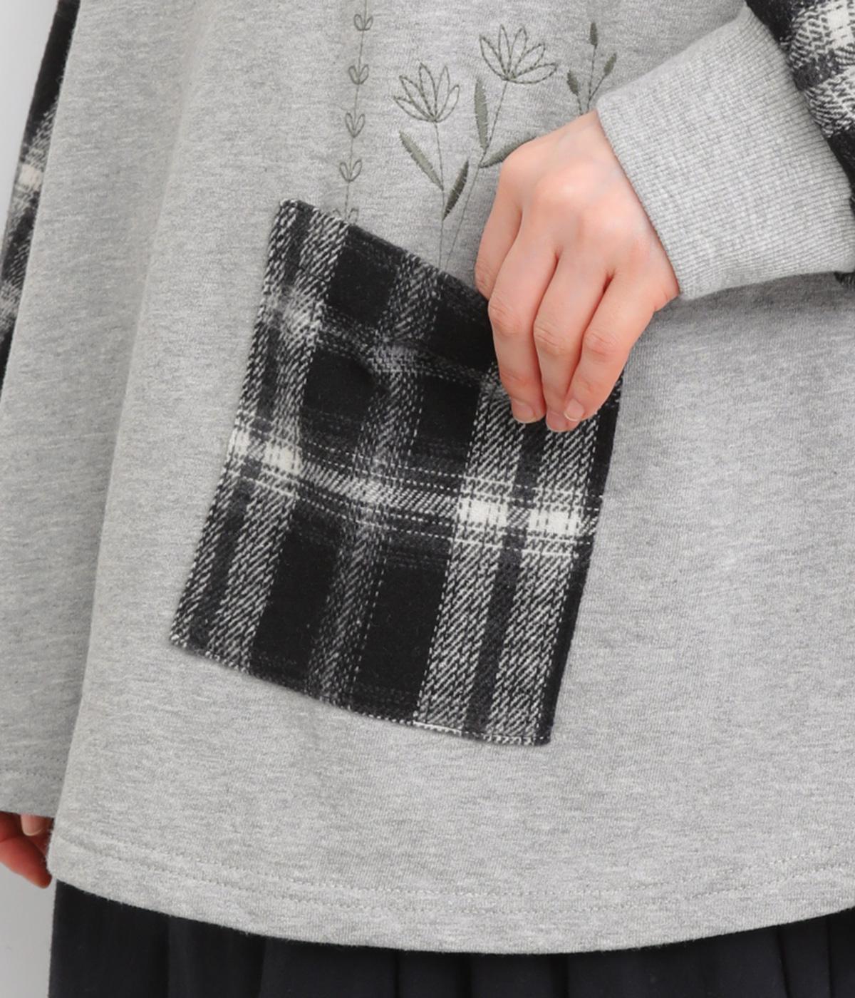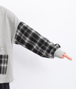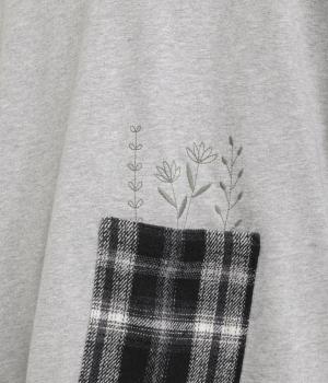 季節の装いに映えるチェック柄をアクセントにした、レイヤード風デザインです。袖にボリュームを持たせながら、リブでまとめることでほどよい立体感が生まれます。ポケットにあしらわれたボタニカル刺しゅうは、まるでそこから芽吹いたかのような愛らしさ。カジュアルながらも、品を感じられるプルオーバーです。