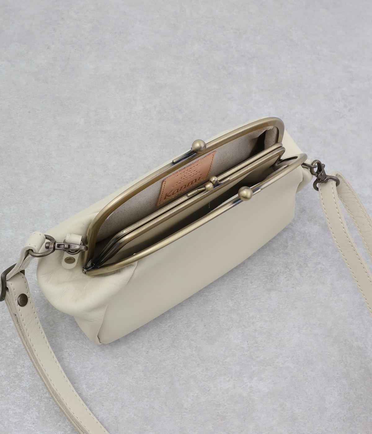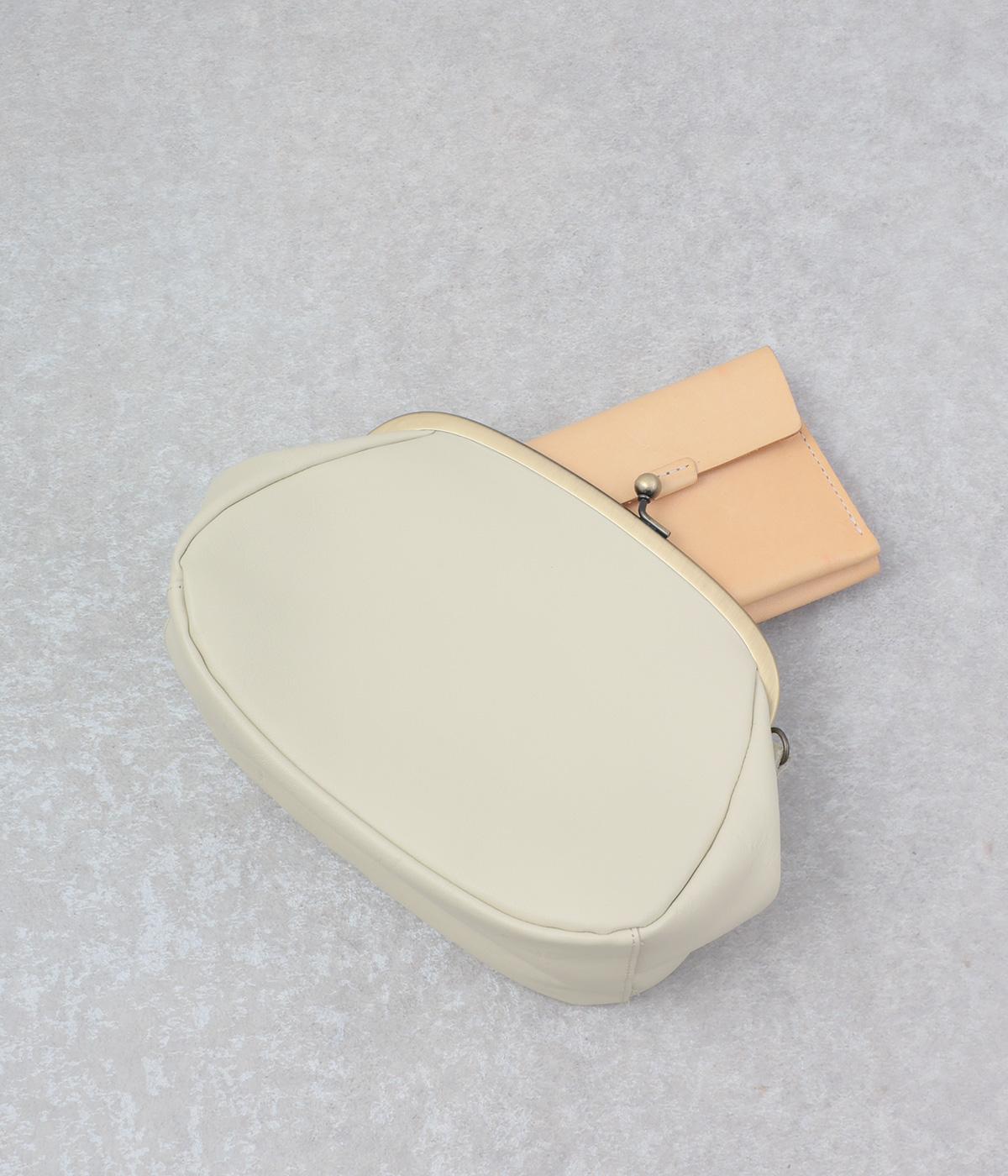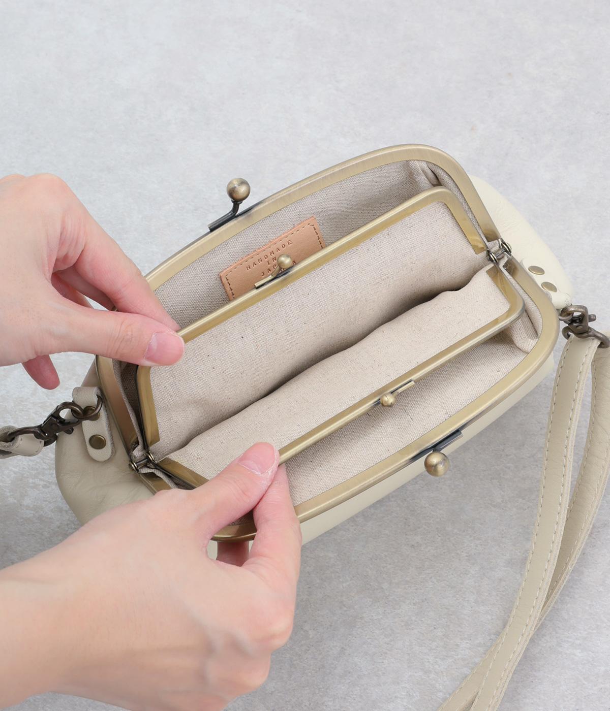 開くと内側にもうひとつがま口がある、親子がま口のポシェット。コロンと丸みのあるフォルムが愛らしい印象です。小物を整理しやすく、片手でも開閉しやすい仕様。きちんと感があり、デイリーからフォーマルまで幅広く活躍します。
