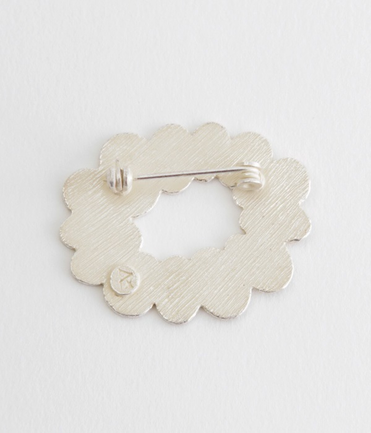もこもことしたアウトラインで抽象的なフラワーモチーフをイメージして、大きめの槌目加工でオープンデザインに仕上げたブローチです。温もりの溢れるクラフト感と抜け感、程よいボリュームが存在感抜群のアイテム。シャツやアウターの胸元にはもちろん、バッグやストールなどの小物類につけてアクセントにするのもおすすめです。