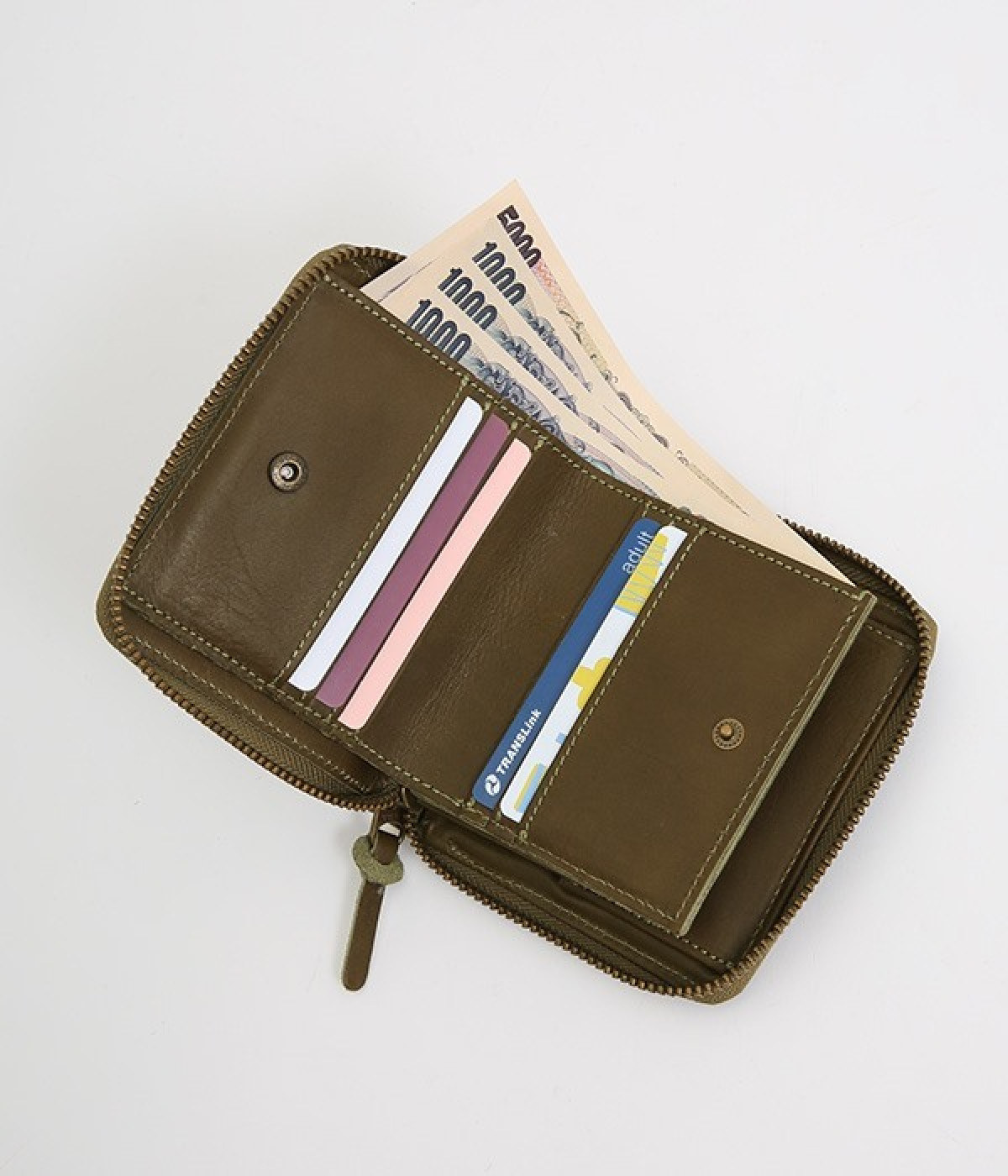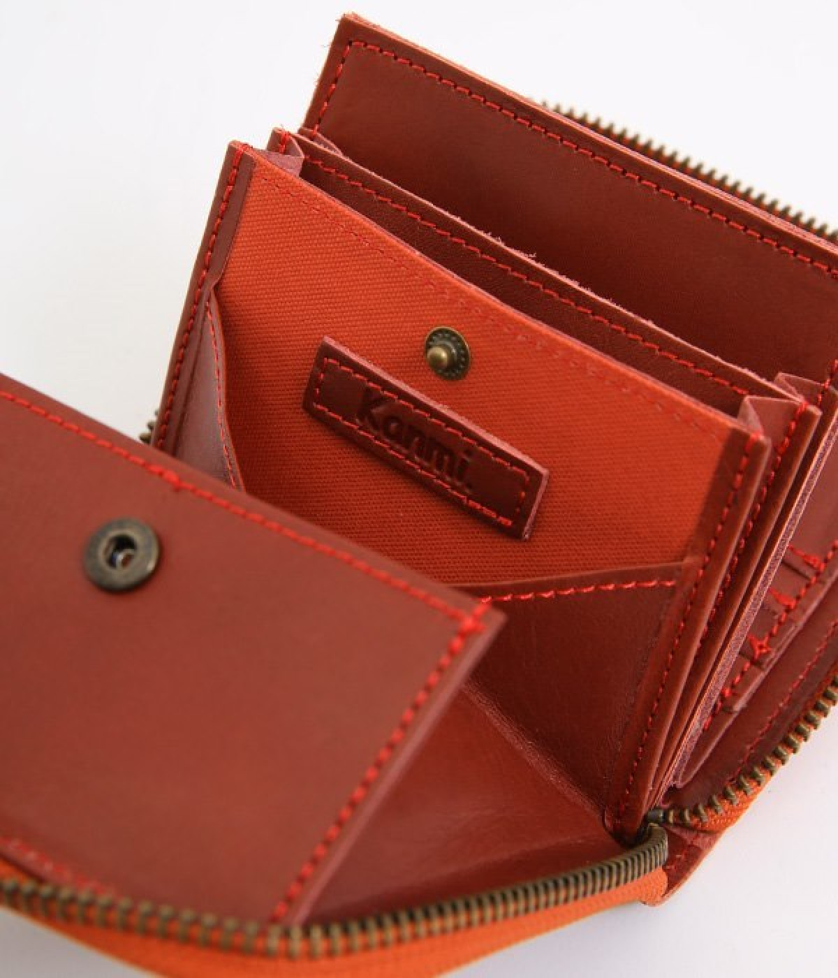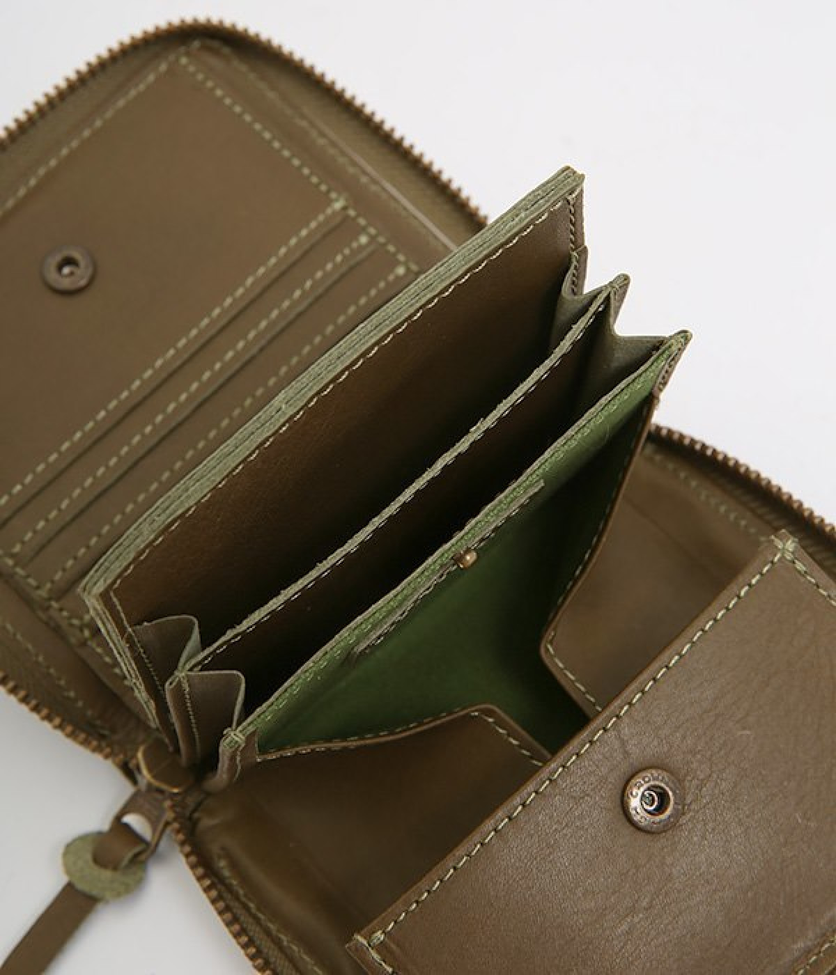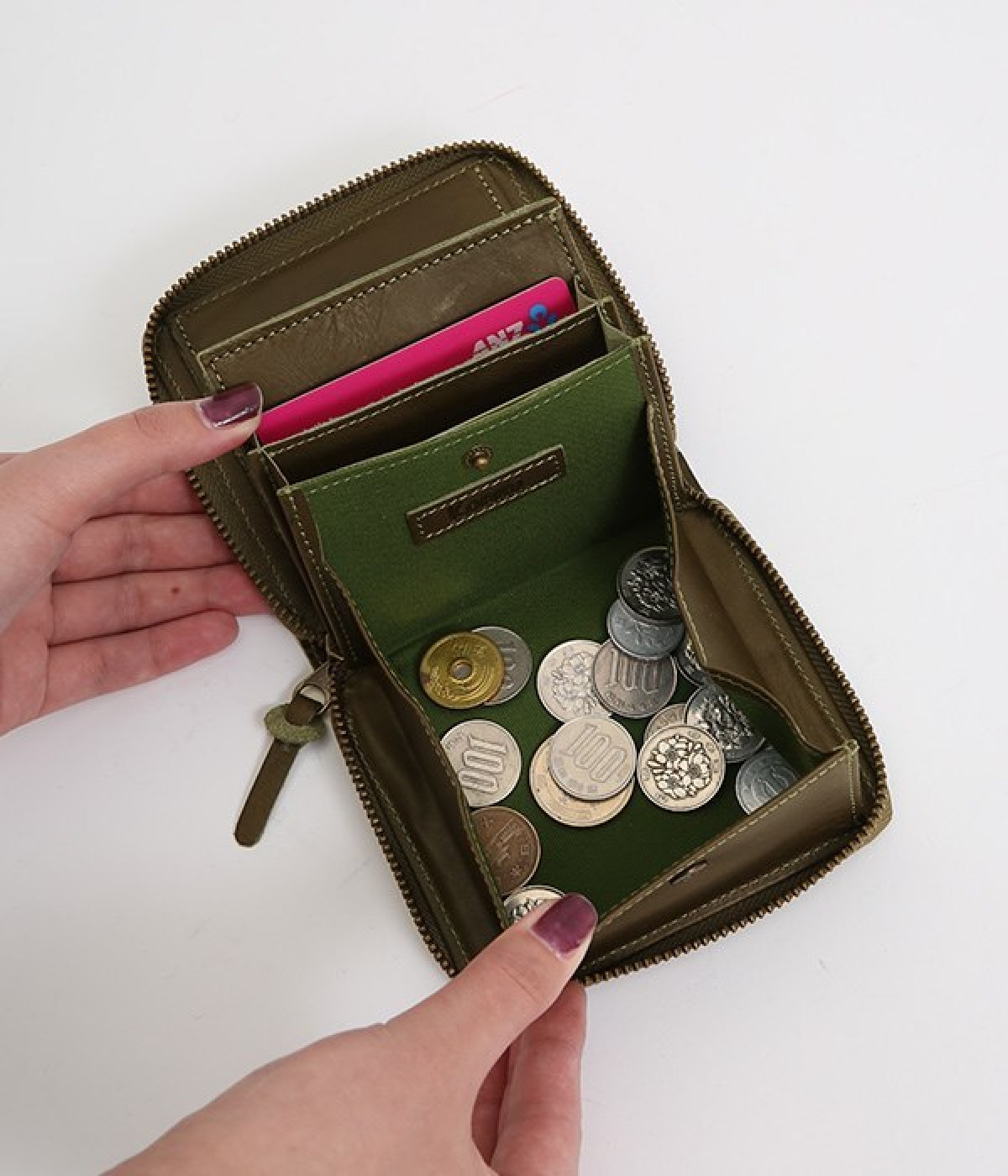 ぽこぽことした押しドットがかわいらしいポイントになったショートウォレットです。小銭入れがボックスタイプになっており、コインが落ちることなく取り出しやすくなっています。小さいながらもカード入れなど収納ポケットが秀逸で機能性も抜群です。使うほどに牛革の風合いが増していくのも使っていく楽しみに。