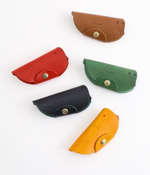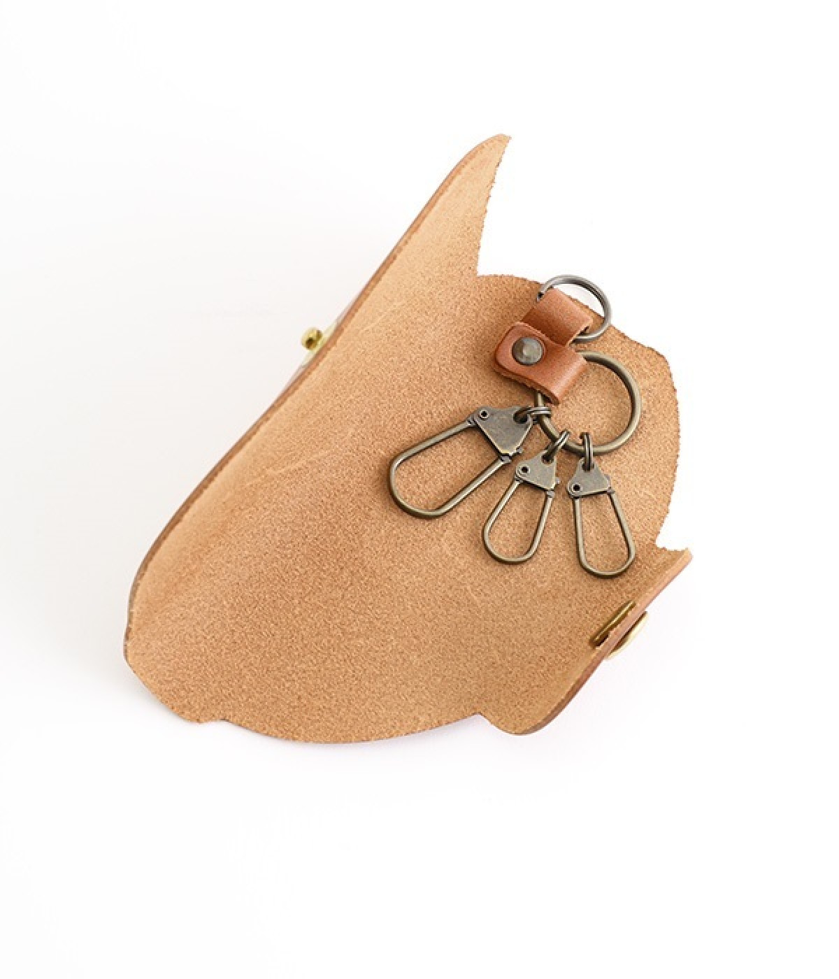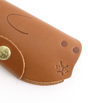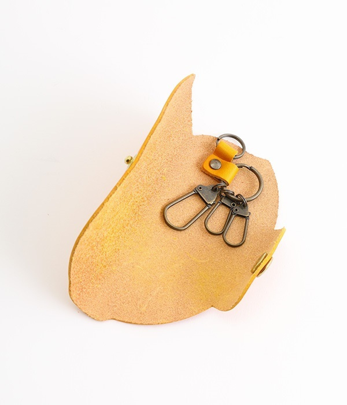 まんまるおめめが特徴のアニマルモチーフのキーケースです。一枚革でできたデザインは発色がきれいなイタリアのブッテーロの革を使用しました。タニンなめしの革は使い込むほどに馴染んでくれるので、経年変化を楽しめます。スナップボタンで開閉しやすく、コンパクトなサイズ感は持ち運びにも便利。澄ました表情がチャーミングな癒しの小物です。