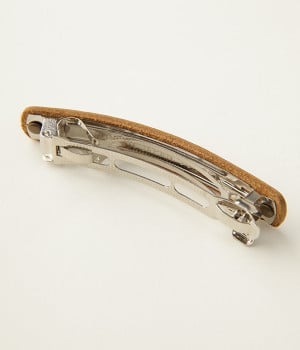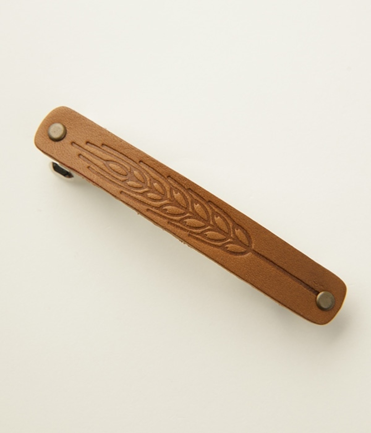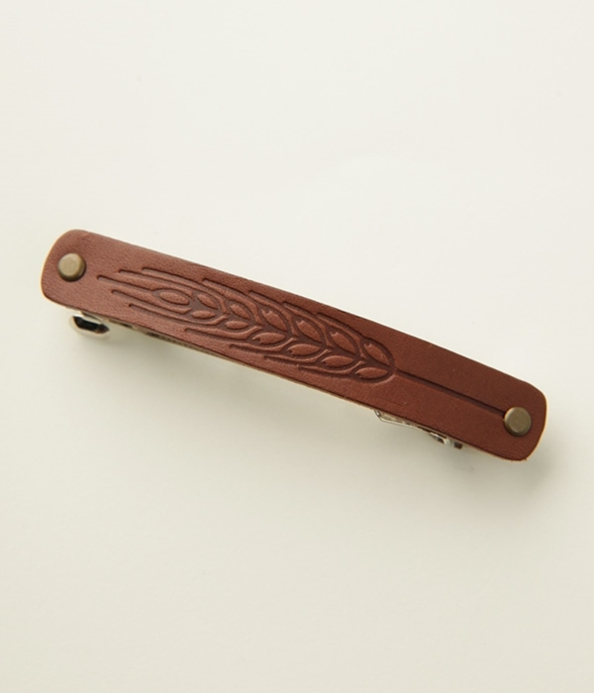 まっすぐに伸びる麦のバレッタで、スマートにヘアアレンジ。柔らかいレザーに麦のイラストを型押しした、シンプルなデザインのバレッタです。細幅のシルエットなので、すっきりとした印象でお使いいただけます。マットなレザーが落ち着いた雰囲気を演出するので、派手なモチーフがNGのお仕事シーンでも活躍するアイテムです。