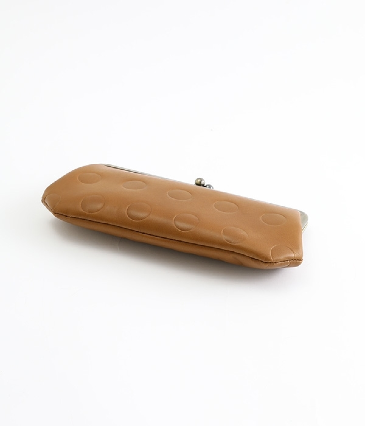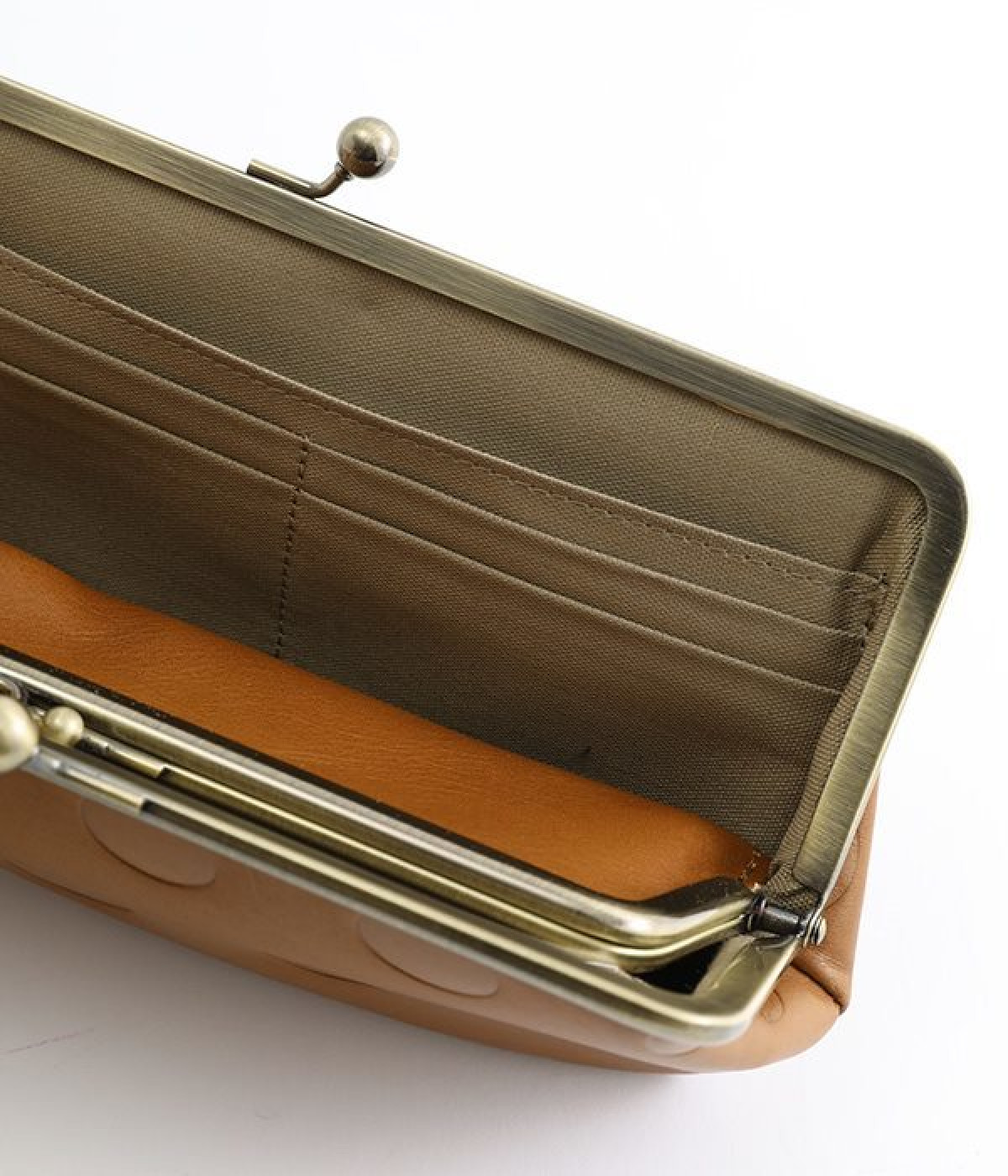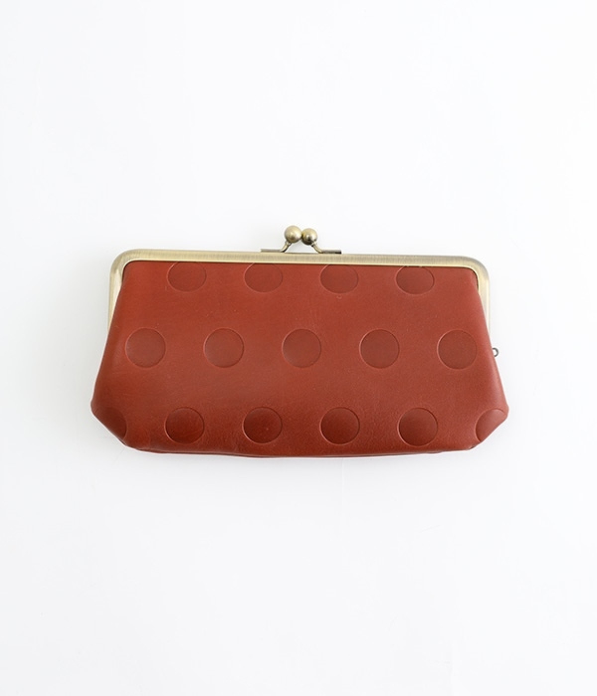 水玉をさりげなく効かせたロングウォレット。中にもがま口がついた親子がま口デザインで、見ためにもかわいらしく、使い勝手も◎です。ふっくらとしたやさしいフォルムながら、ぺたんこですっきりと使えてバッグの中でもかさばりません。カード入れが充実しているのもうれしいポイント。上質な本革仕様で、使い続けるほどに味が出て愛着の湧くアイテムです。