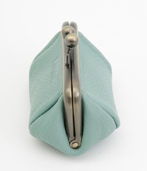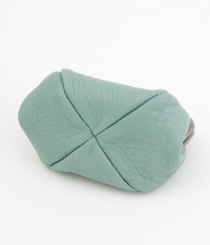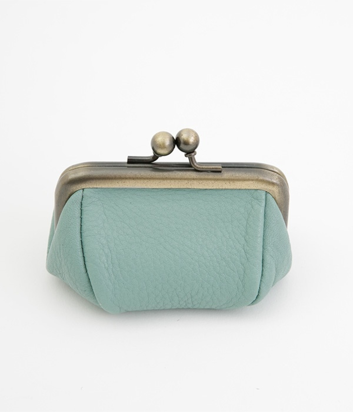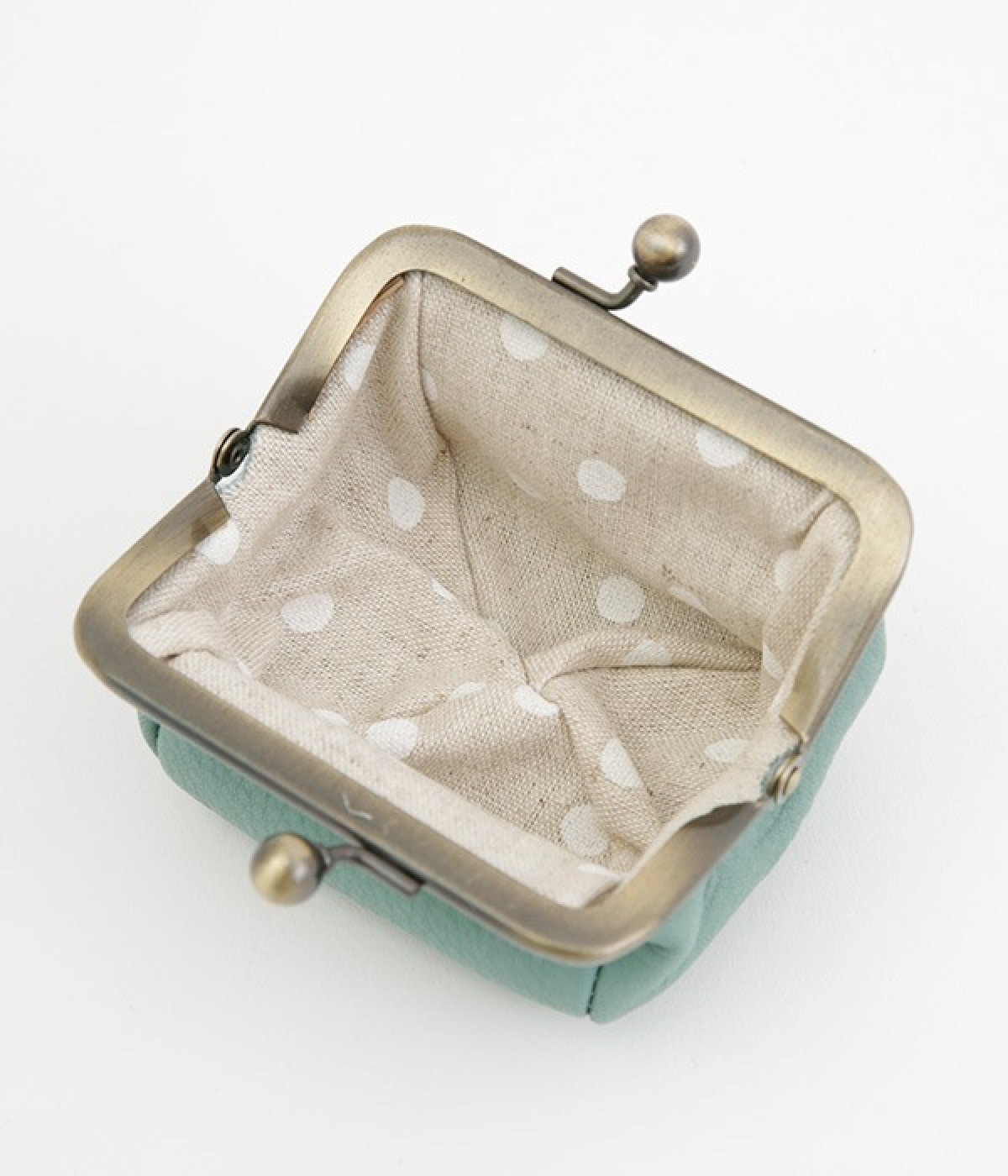 口が大きく開いて取り出しやすい、手のひらに収まるお手玉サイズの小さながま口です。手触りのよいレザーで仕立てました。コインケースとしてはもちろん、小さなアクセサリーケースやキャンディなどをいれたりさまざまな用途でお使いいただけます。見た目以上の収納力があり、小銭なら25枚程度入ります。