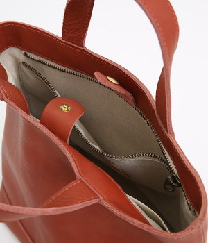 特別じゃない、日常のためのバッグです。「変わらない日々に、肩の力を抜いて持ってほしい」という願いを込めて、どんな自分も受け入れてくれそうな、シンプルデザインにこだわりました。マチがしっかりあるからお弁当やマイボトル、かさばる化粧ポーチなどもざっくりと気軽に入れることができます。お財布や鍵などの大切な小物は、ファスナー付きポケットへ入れれば安心。メリハリのある使い方が楽しめます。コーディネートやシーンを選ばず、毎日のお出かけに活躍。使うほどに風合いを増す、レザーの経年変化も味わえます。