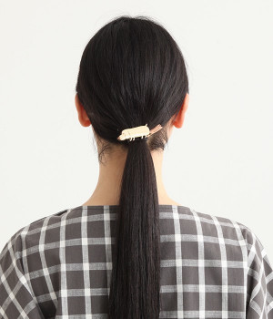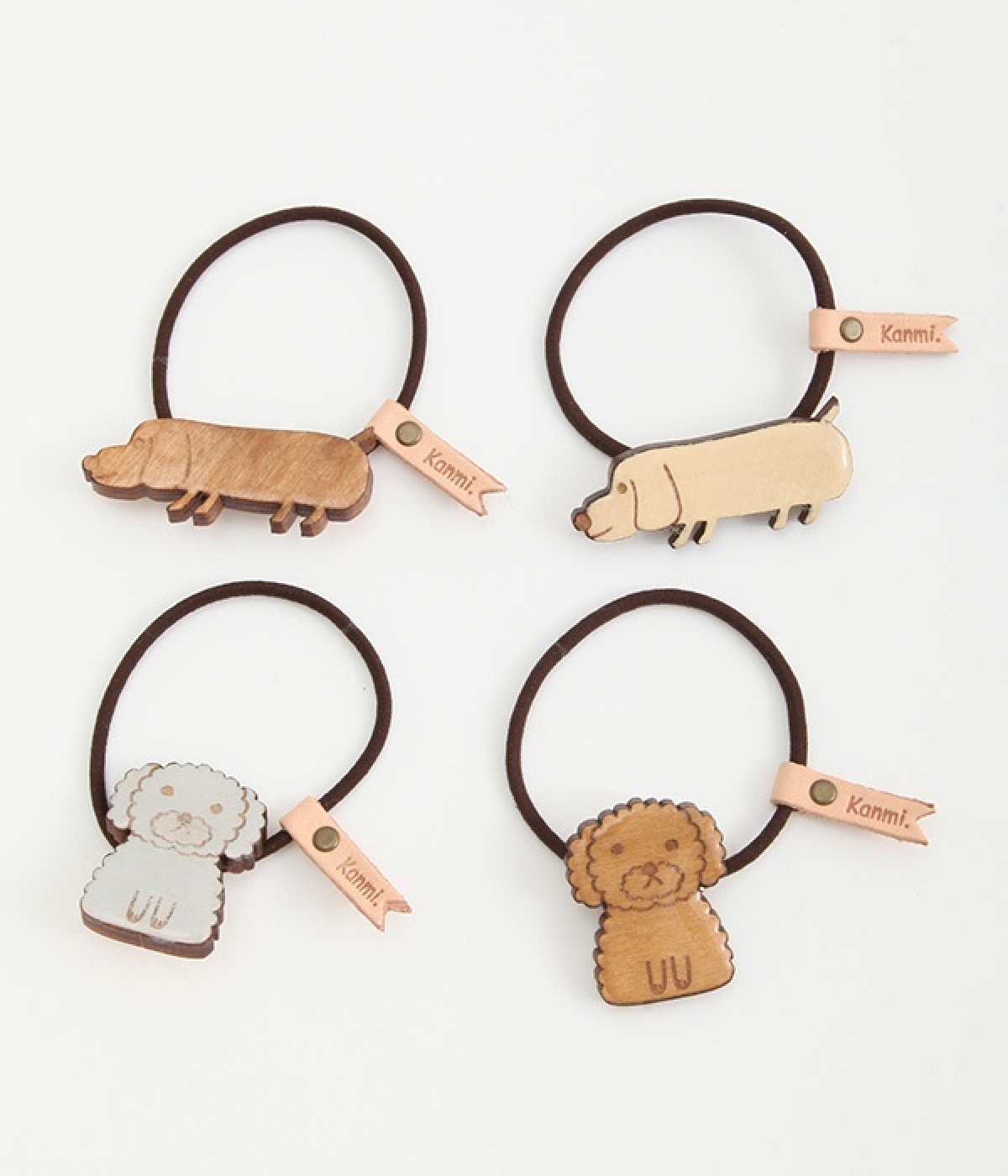 とぼけた表情が可愛らしい犬モチーフのヘアアクセサリー。ベースはウッド素材、表面に樹脂を塗ることで艶やかなクリアウッドになっています。クリアにすることで重すぎず軽やかな印象になり、季節を問わず使えます。ラフに束ねたヘアスタイルも可愛らしく仕上げてくれて、大人コーデの遊び心として取り入れてみたくなるアイテムです。