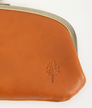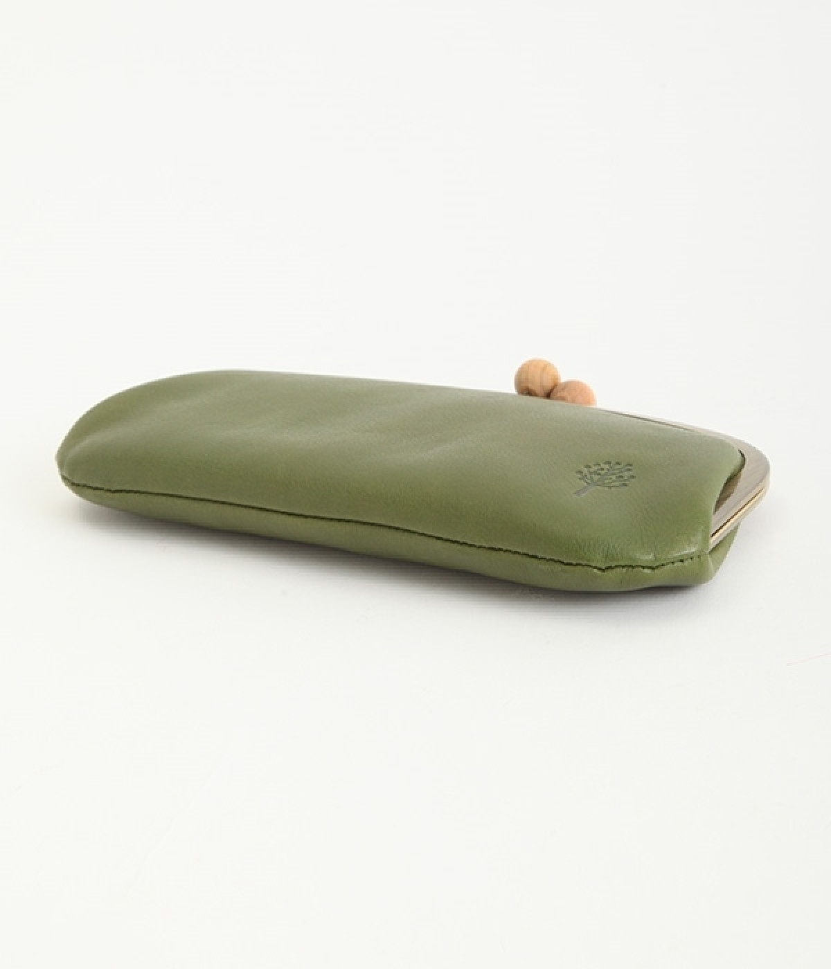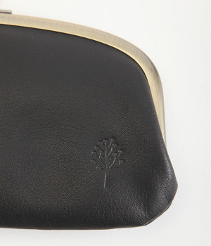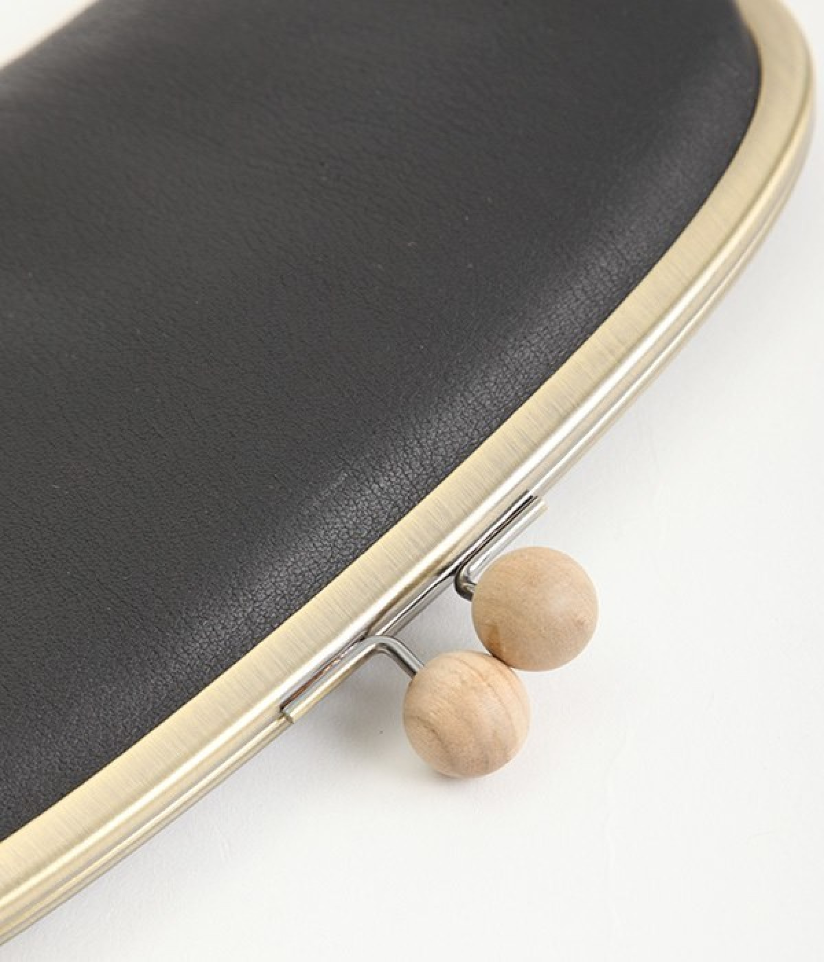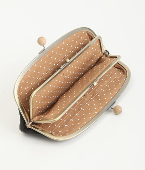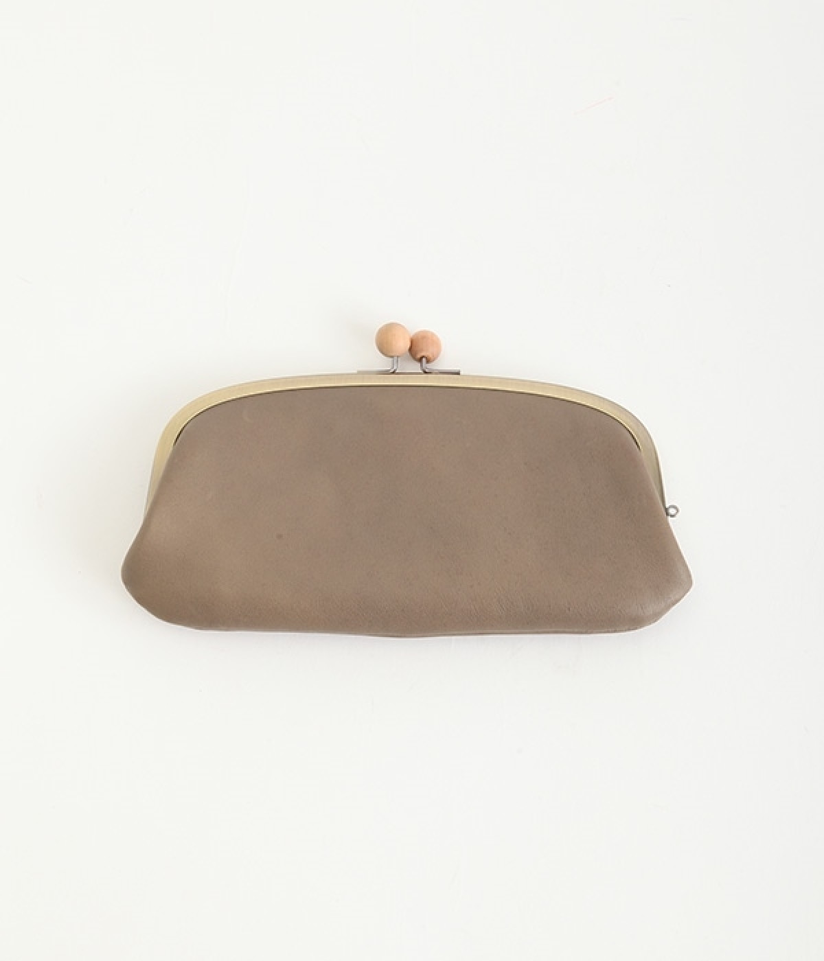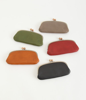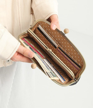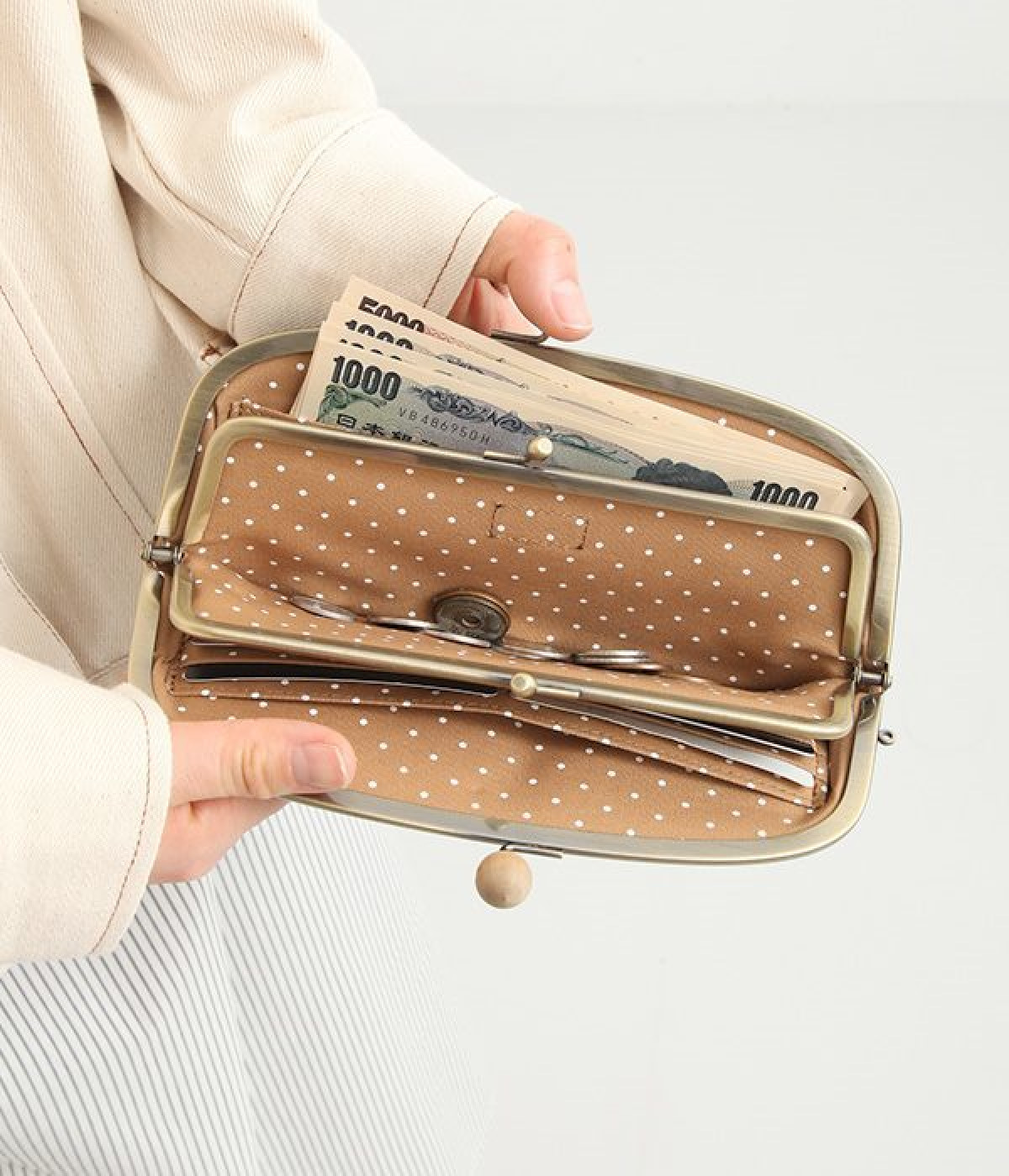 内部にコンパクトなサイズのがま口を設けた、二重構造のがま口財布です。お札もすっぽり収まる横長のフォルムで、カード入れも豊富に設けた整理整頓が楽ちんなデザイン。片面の右端には木のモチーフの型押しをあしらいました。マットな質感の牛革製で、つまみの部分には桜の木玉を採用。使い込むほどに経年変化によって風合いが増し、味わい深い表情が楽しめます。