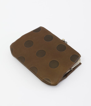 ソフトな肌触りの牛革にドットの型押しでアクセントをプラス。裏地にはほどよくしっかりした綿麻生地を配して強度と使い勝手の良さを高めます。