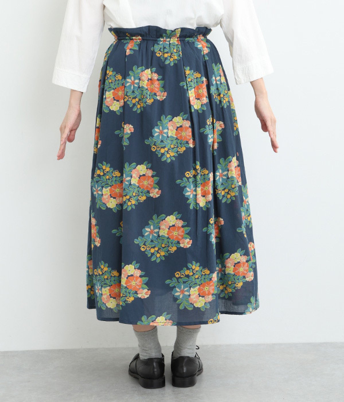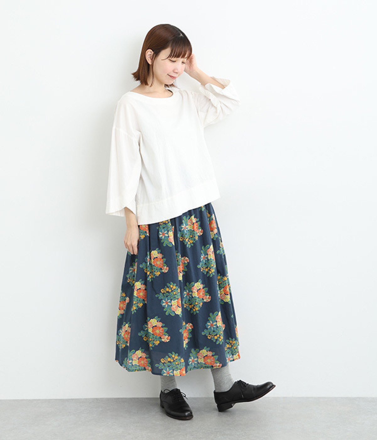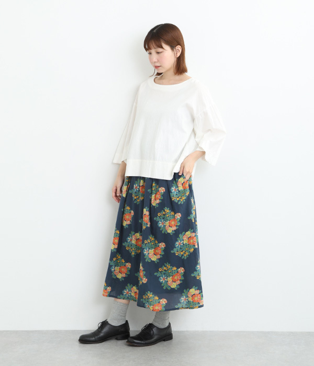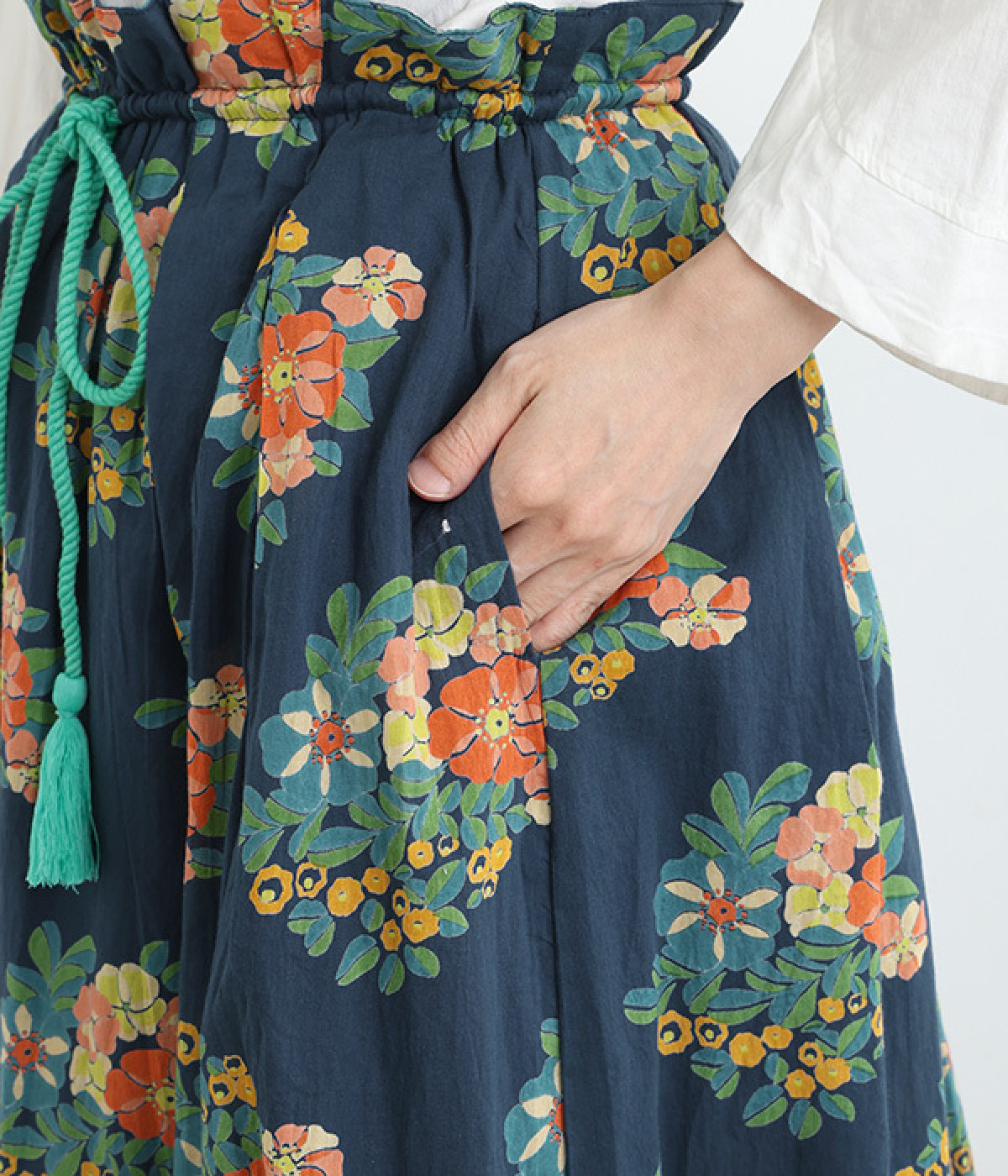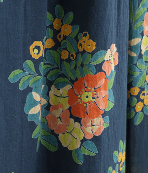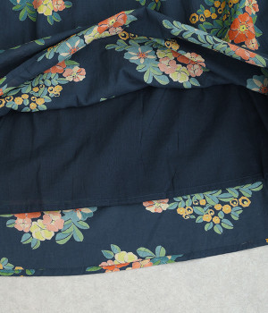 鮮やかな色合いで描かれたブーケ柄が目を惹くコットンボイル。空気を含んだような軽やかさが魅力で、インド製ならではのぬくもりのある風合いです。本体生地はほんのりシアーで、綿の裏地つきで透け感を防止。