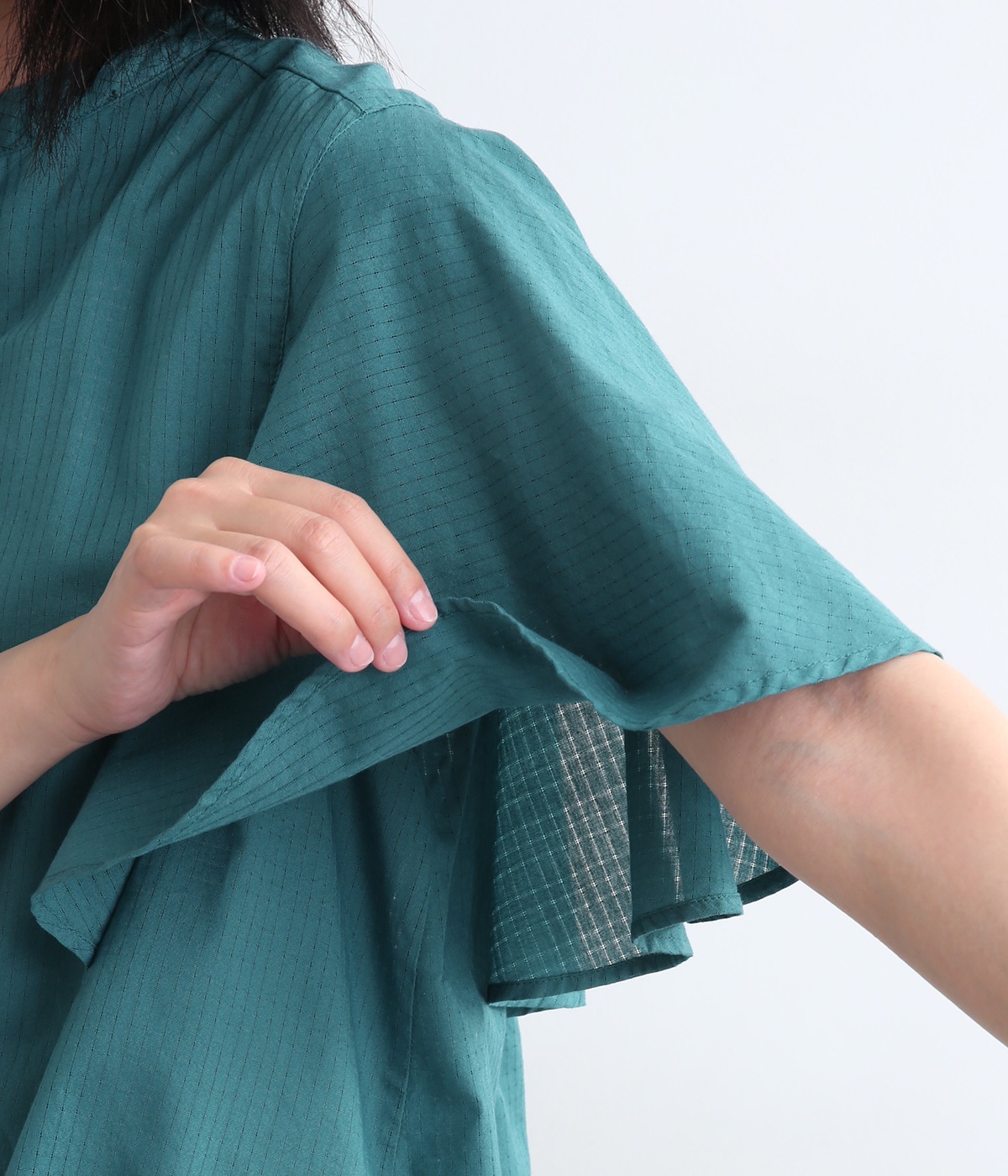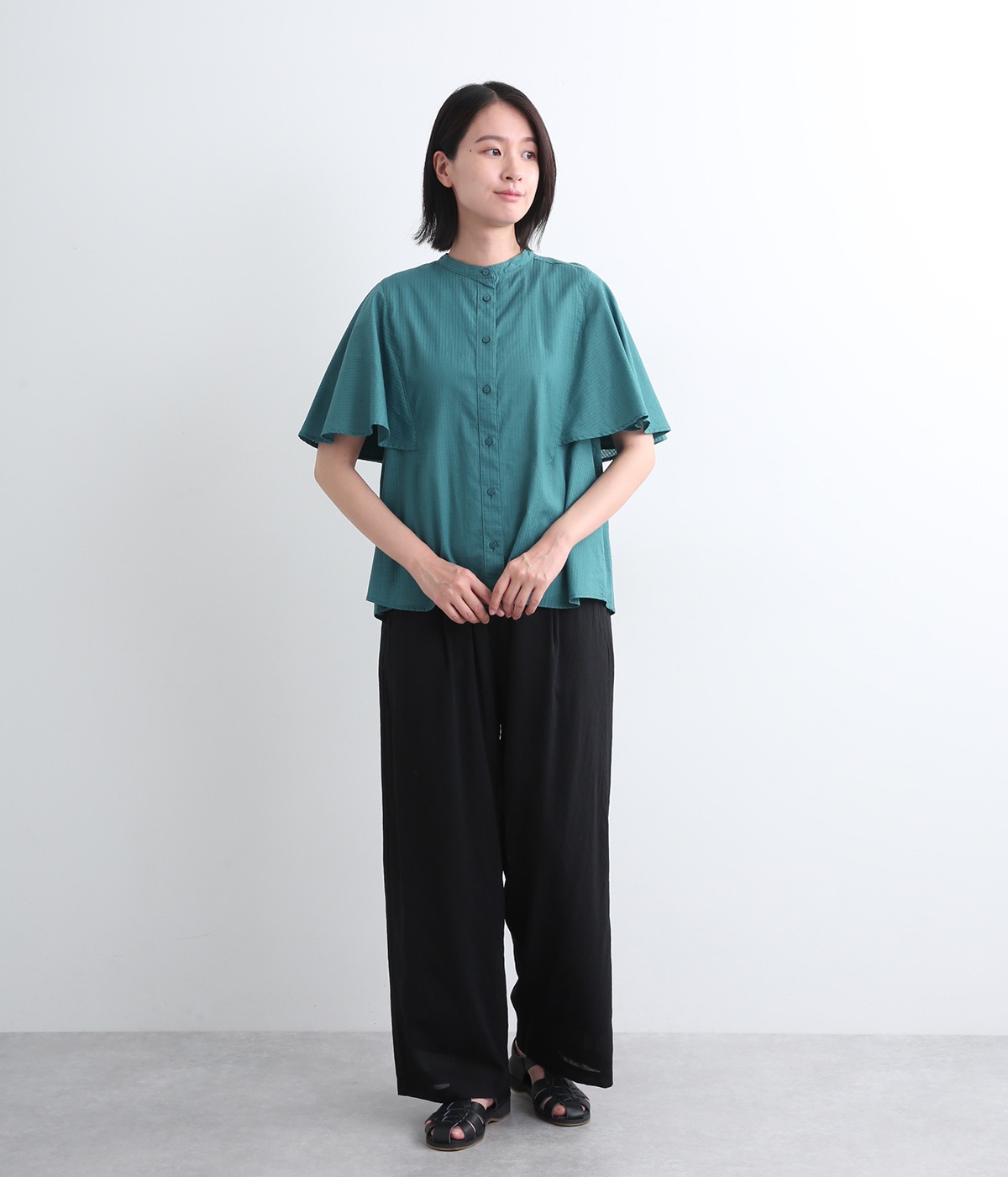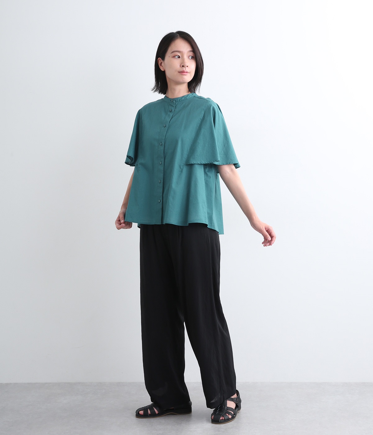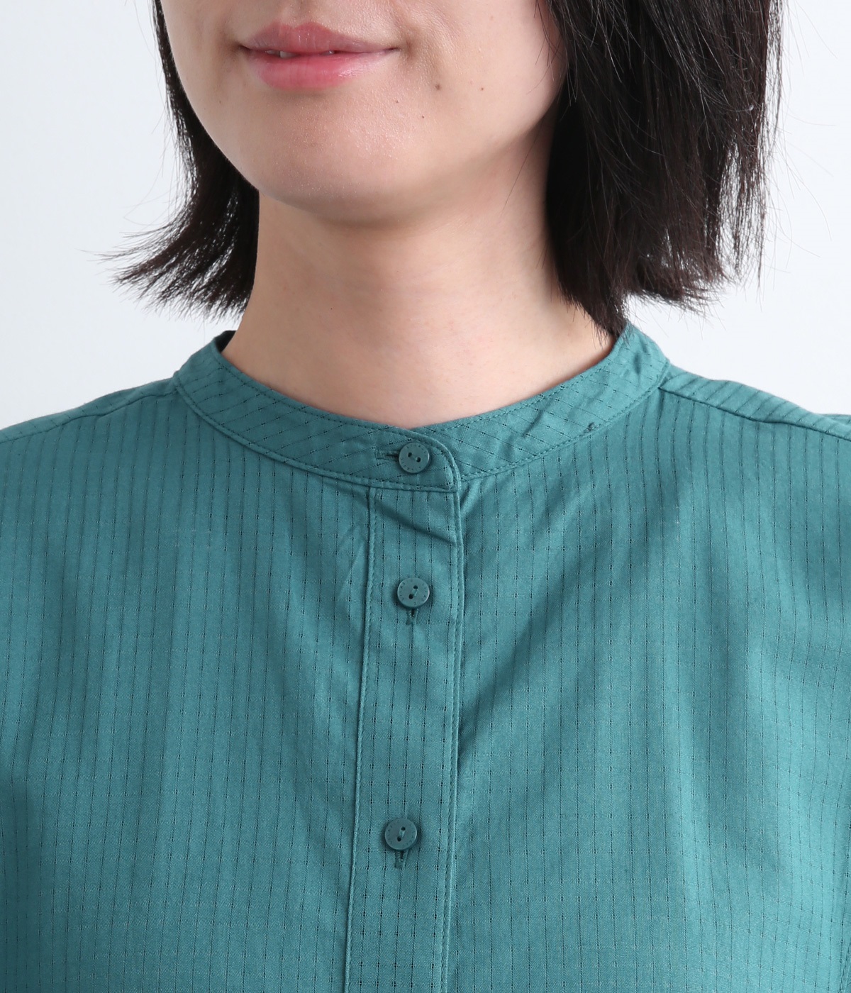 縦糸を部分的に抜いた特徴を持つ、アキハ(空羽)素材で仕立てました。通気性や速乾性も良く、シワも気になりにくいのでデイリーに活躍します。