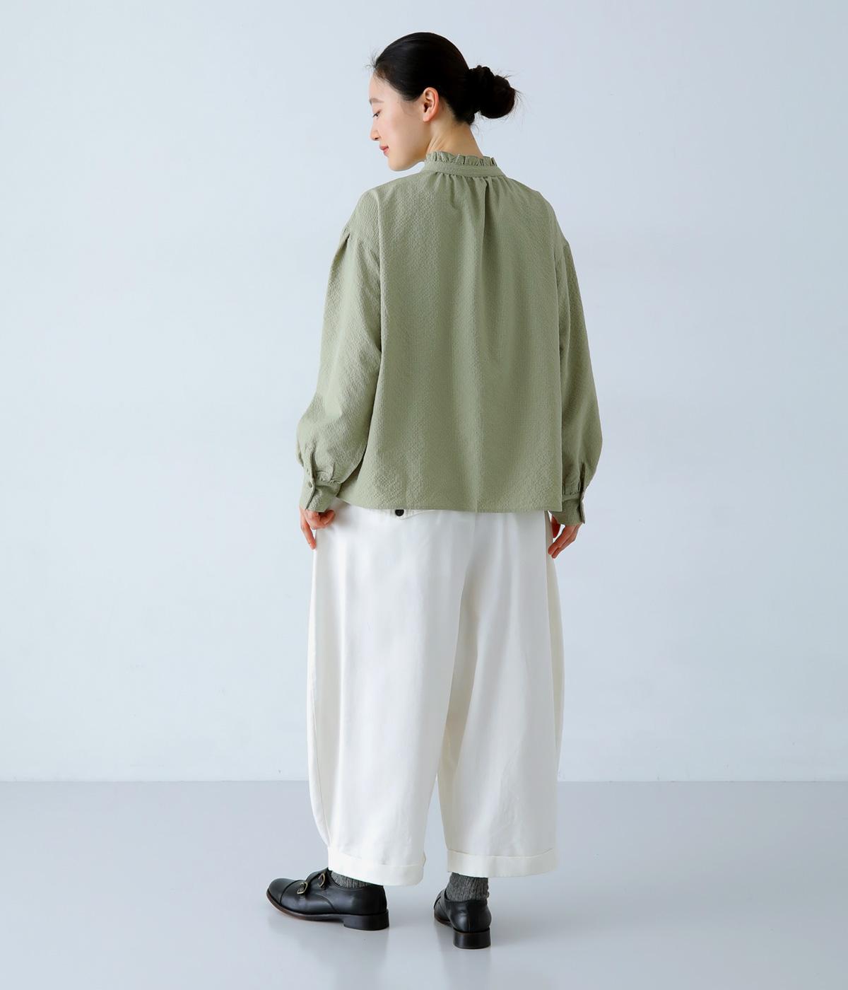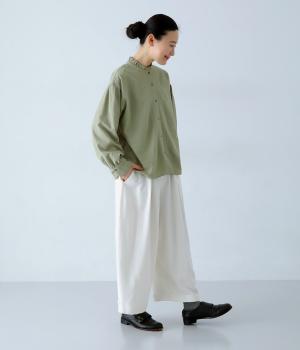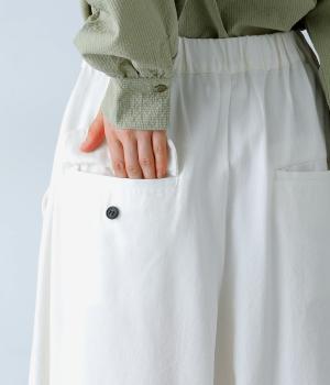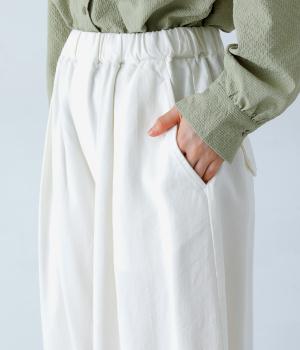 軽くやわらかなリネンコットン素材を使用。通気性がよく、ほどよいハリと柔らかさのある着用感です。デイリーに穿いてもストレスなく過ごせる、快適な穿き心地です。