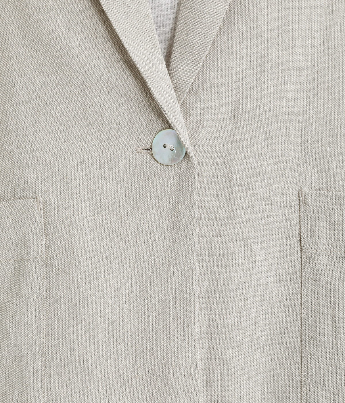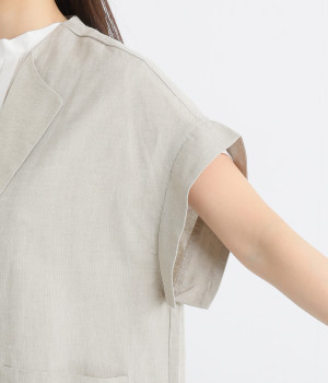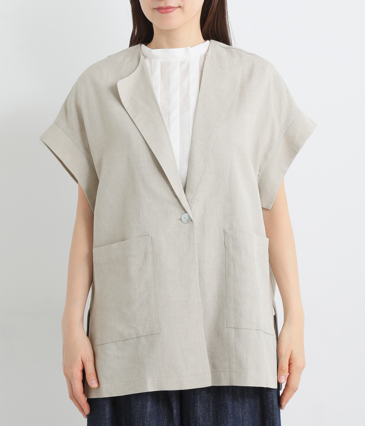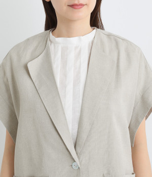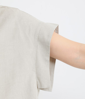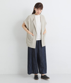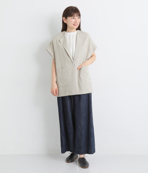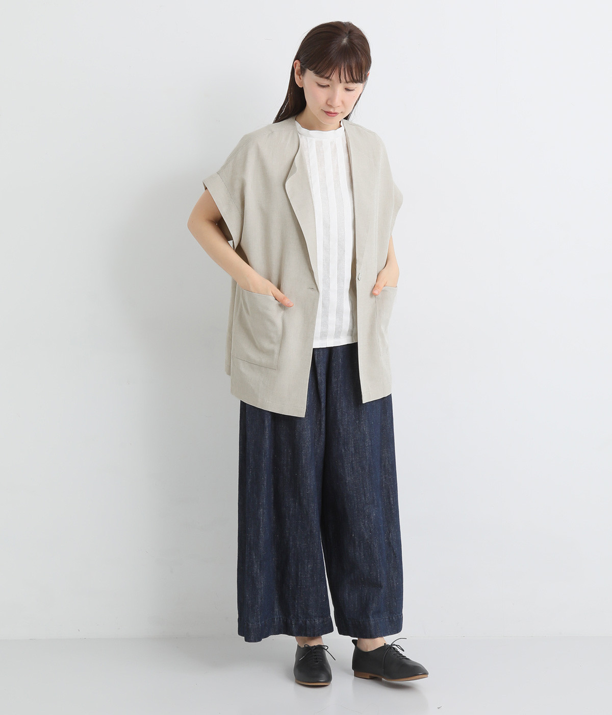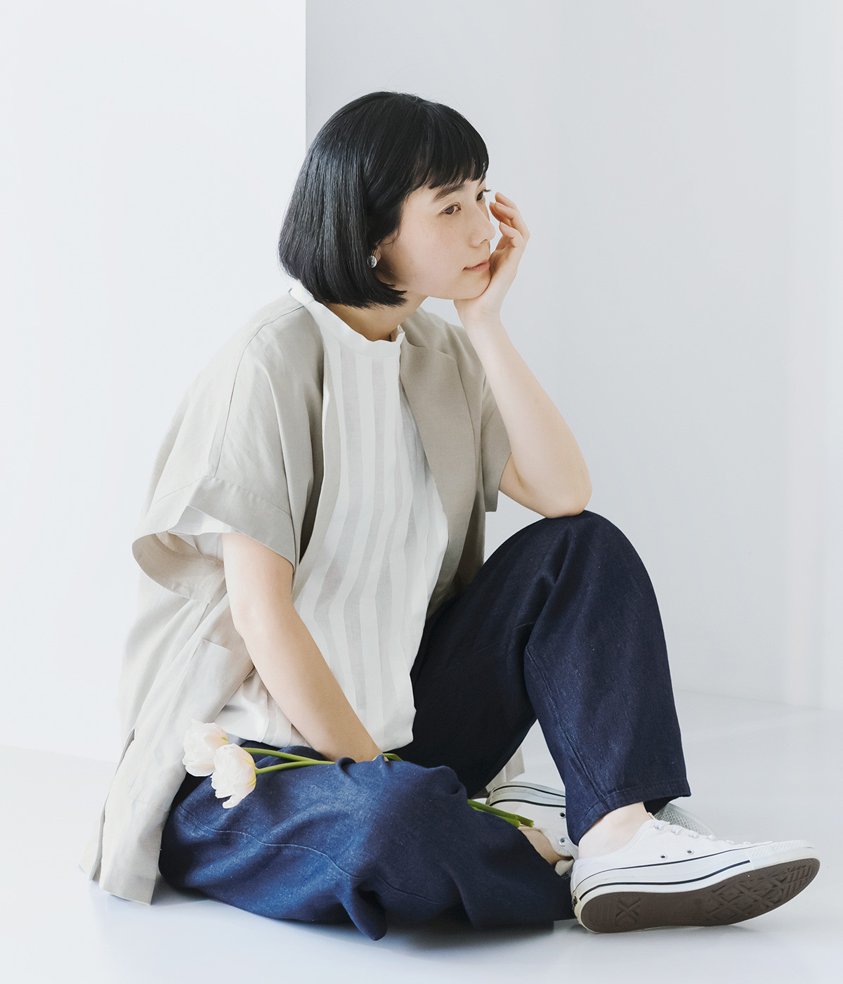レーヨンと麻をブレンドしてナチュラルな風合いをいかしつつ、なめらかさをもたせた生地。麻の涼しさを保ちながらも、レーヨンのしなやかさを組み合わせた通気性のいい素材です。