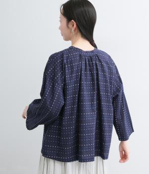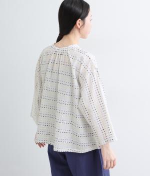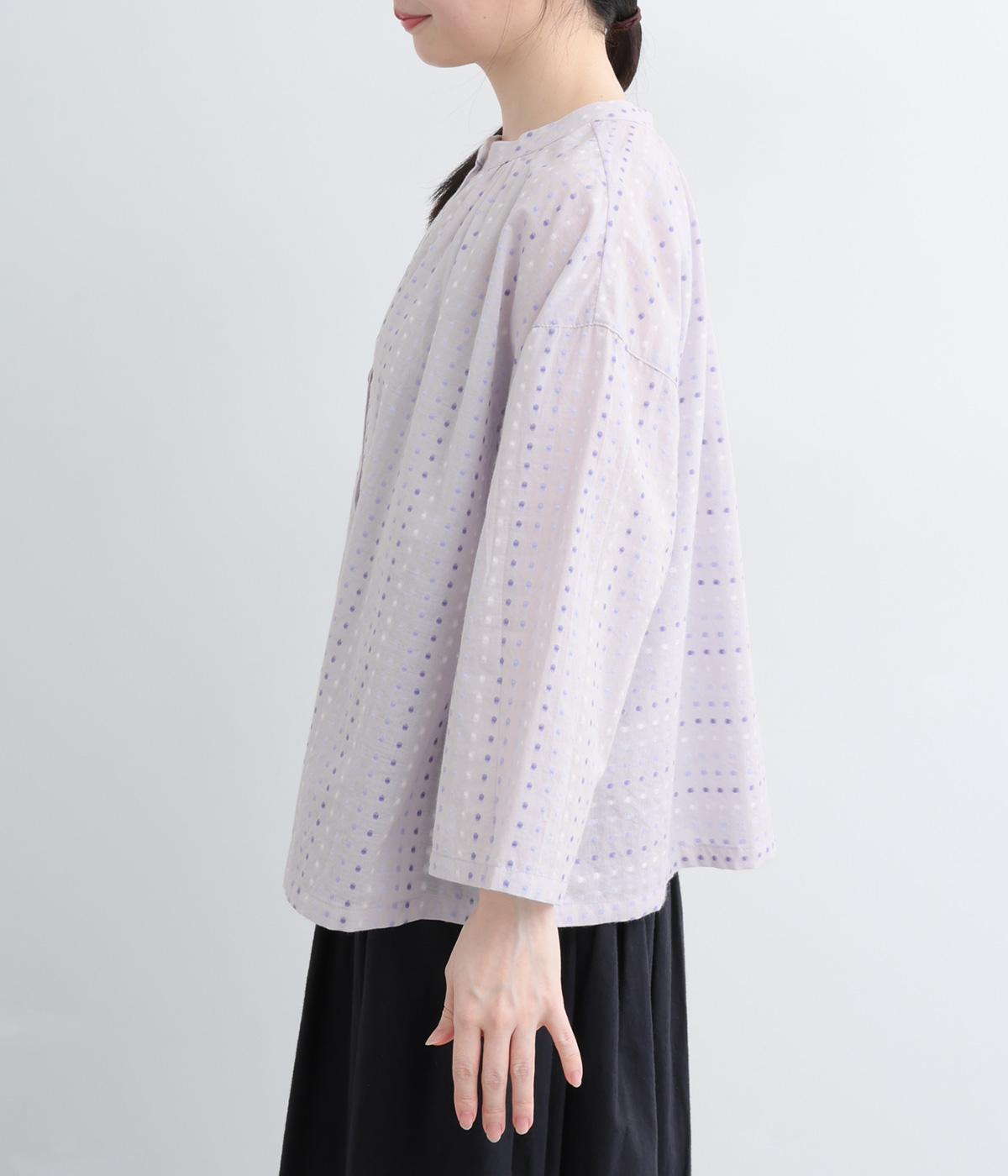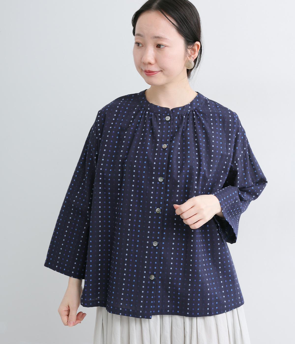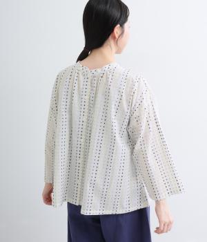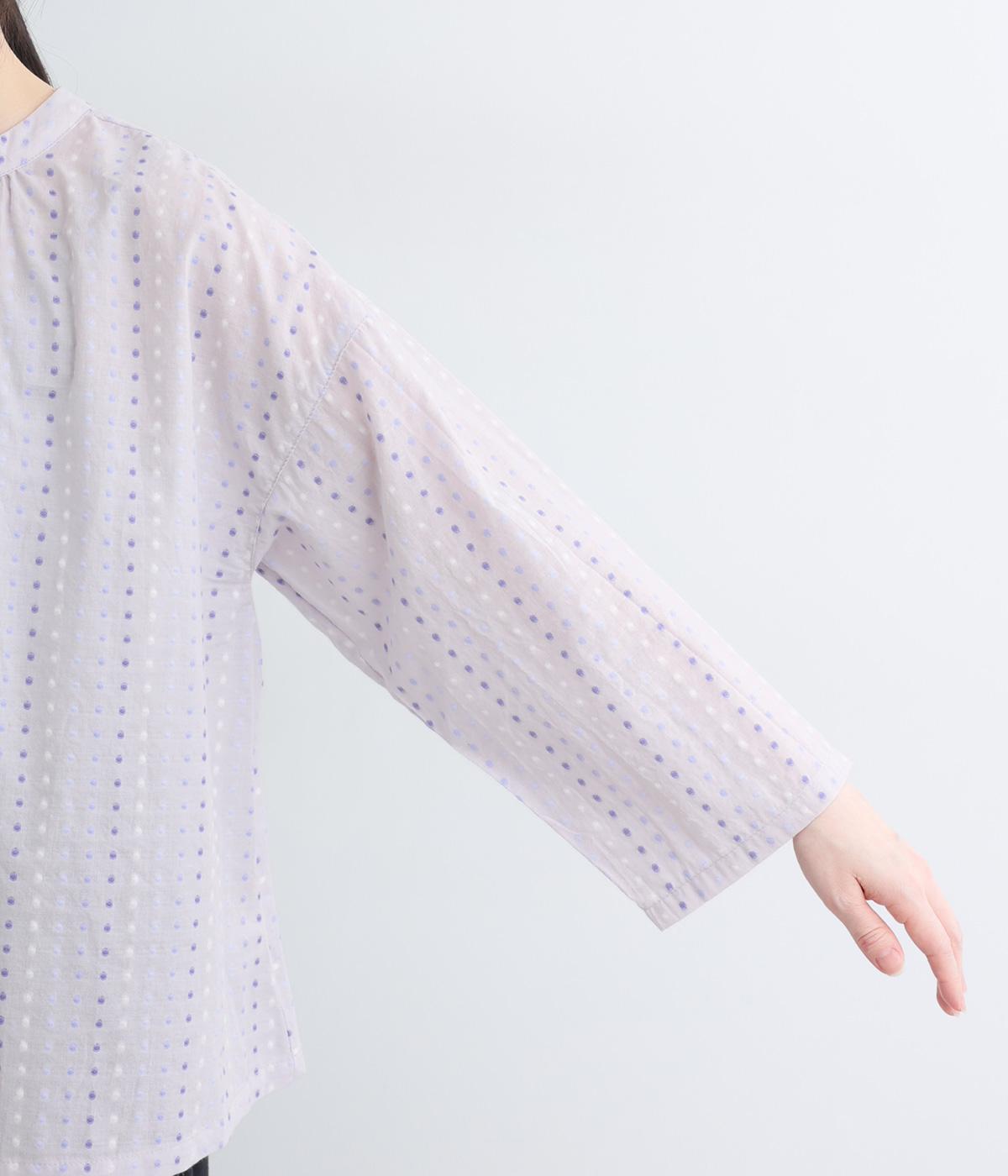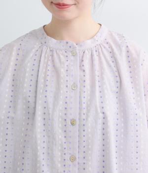 ドビードットが可愛らしく、降り注ぐ雨粒のようなさわやかさも感じられる一枚。前あきもプルオーバーも着まわせる、バリュー感のある前後2way仕様。ゆとりのあるボックスシルエットで通気性が良く、あたたかな季節も着心地抜群です。
