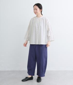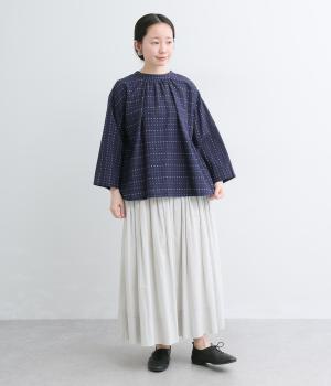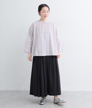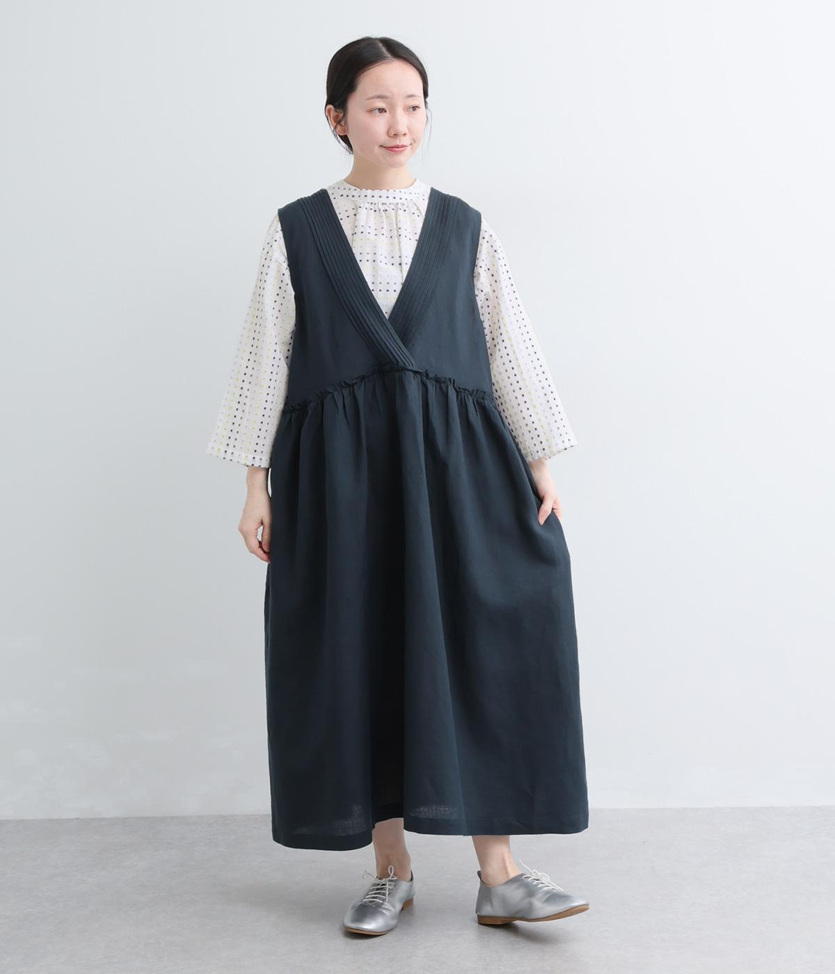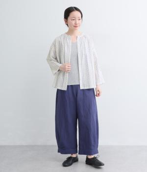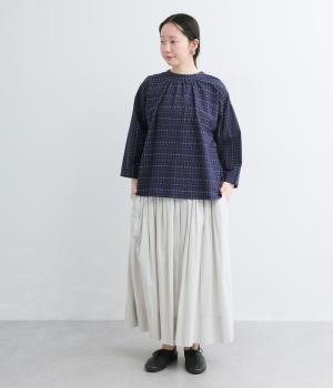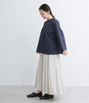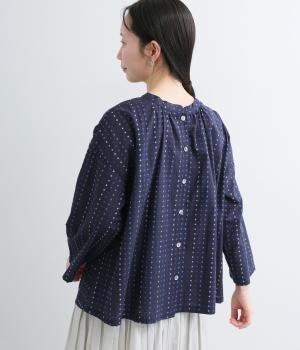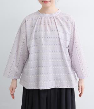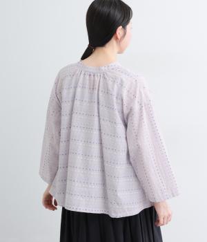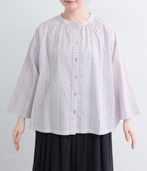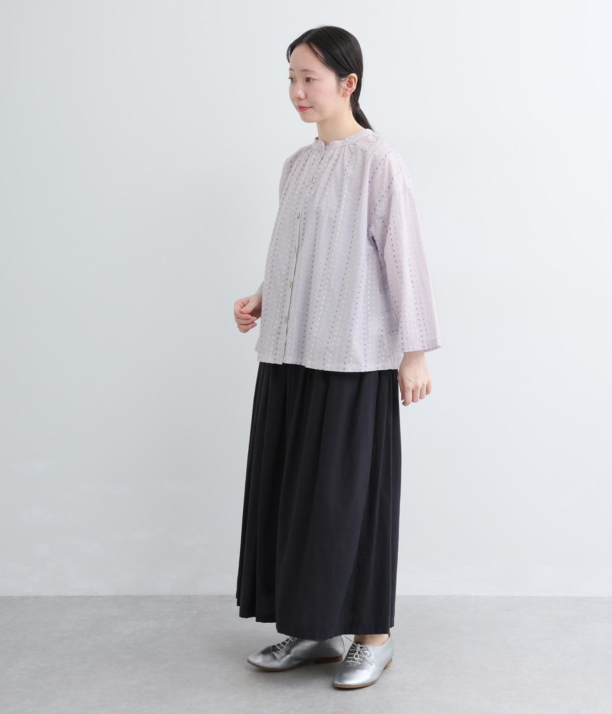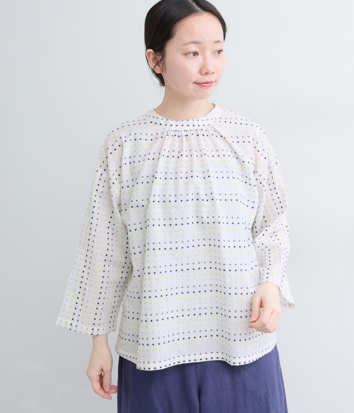 ドビードットが可愛らしく、降り注ぐ雨粒のようなさわやかさも感じられる一枚。前あきもプルオーバーも着まわせる、バリュー感のある前後2way仕様。ゆとりのあるボックスシルエットで通気性が良く、あたたかな季節も着心地抜群です。