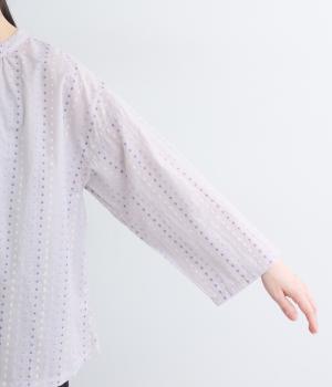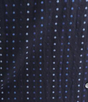 ベースの生地に糸を織りこむことで独特の凹凸が表現されたドット柄のドビー生地を使用。肌のまとわりがすくなく、吸水性にも優れていて着心地も快適です。