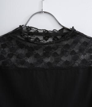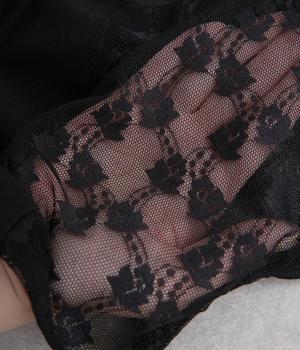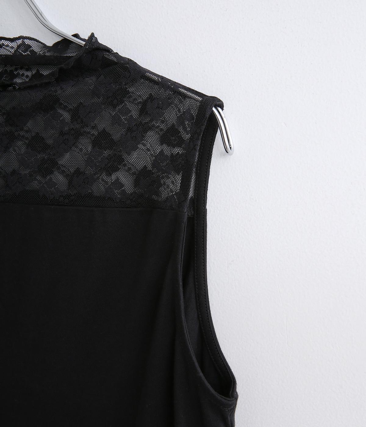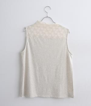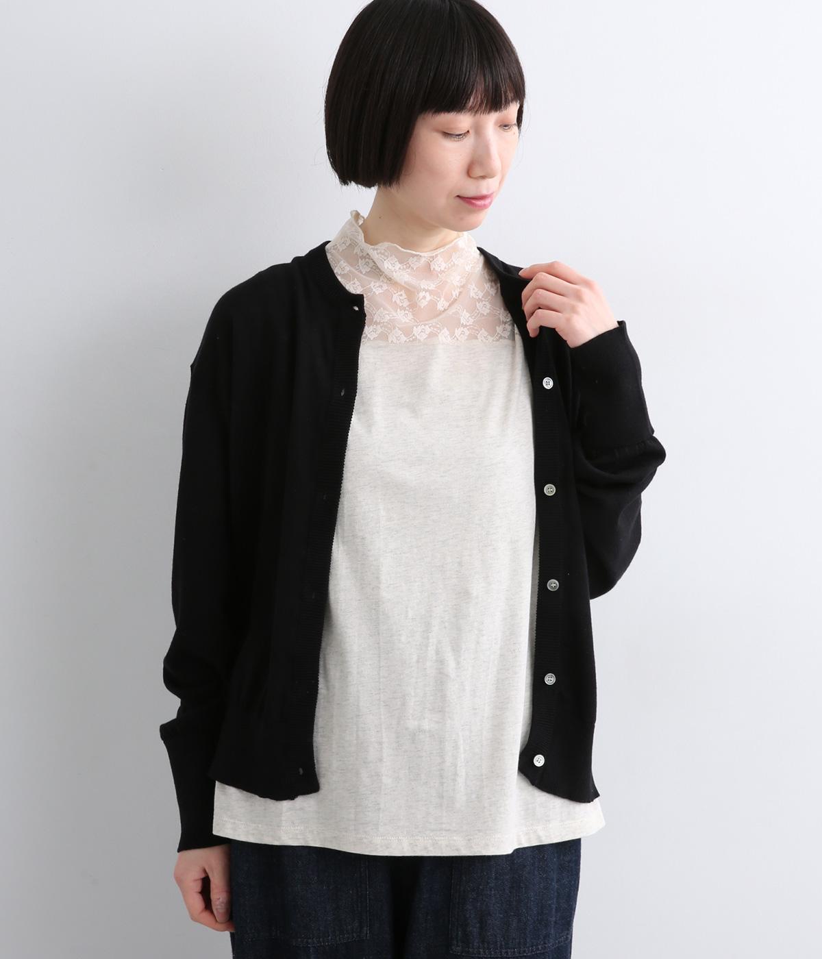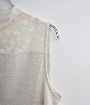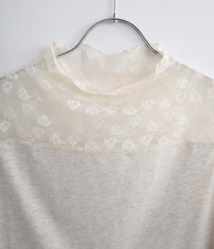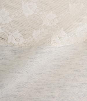 涼しげな透け感の出るナイロンのレースと、伸びのよいやわらかな質感のコットン天竺素材を切り替えたドッキング仕様です。