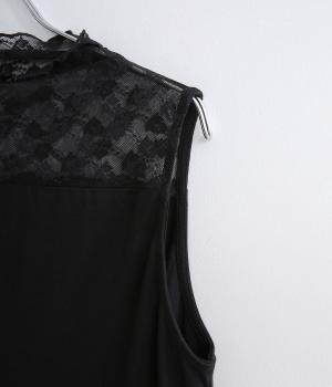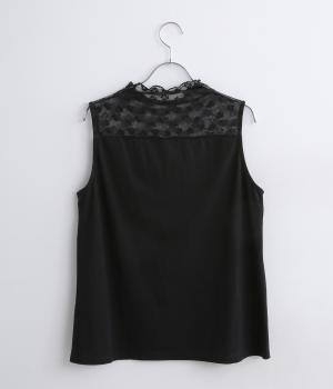 透けるレースが大人っぽいアクセントになるタンクトップです。普段使いのみならず、ジャケットなどのアウターのインナーとしても重宝します。入学卒業や冠婚葬祭などのフォーマルシーンにもおすすめです。