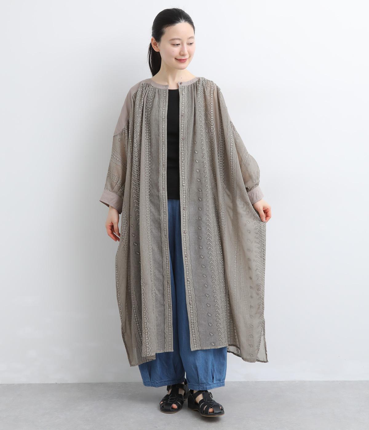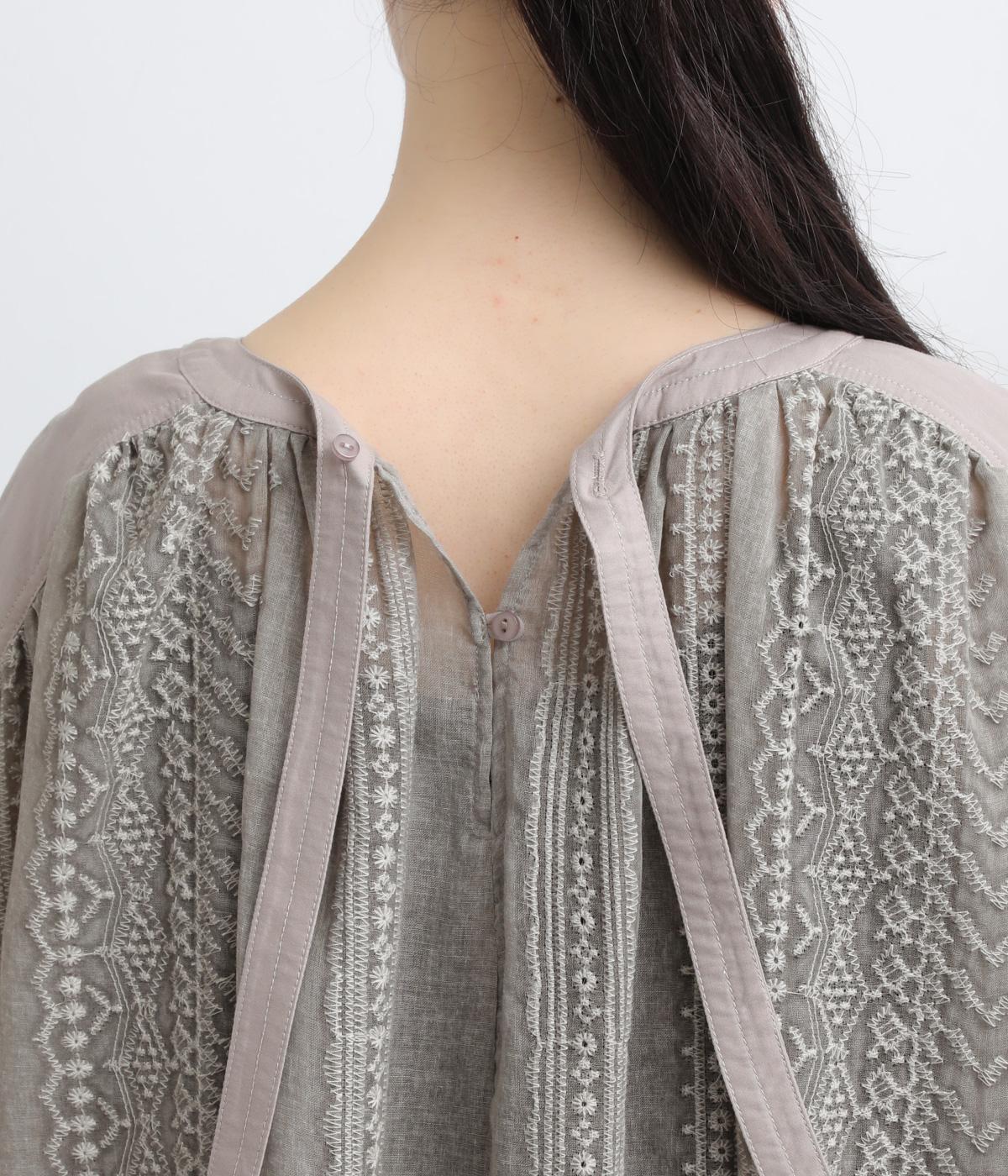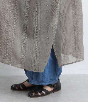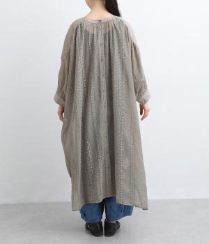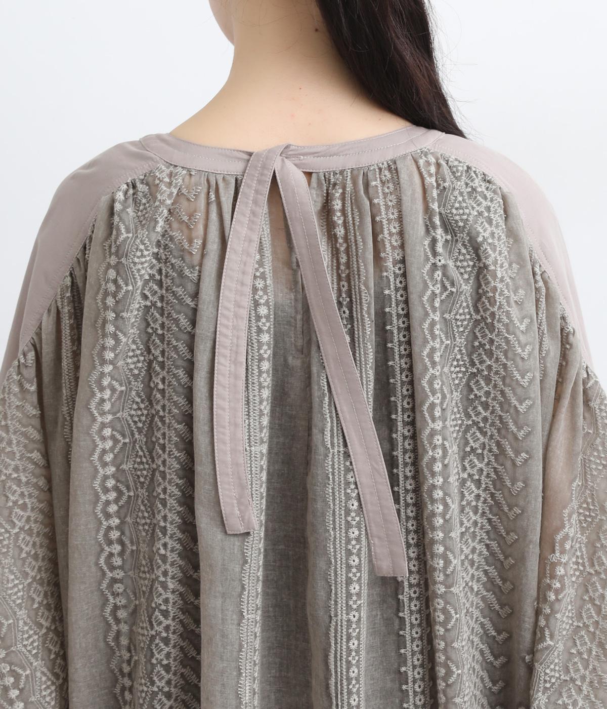 繊細さのあるシアー素材にエンブロイダリー刺しゅうを贅沢にたっぷりとほどこしました。肩ヨークや袖口はコットンでメリハリをプラス。