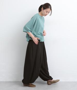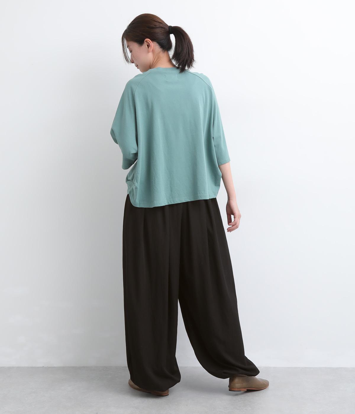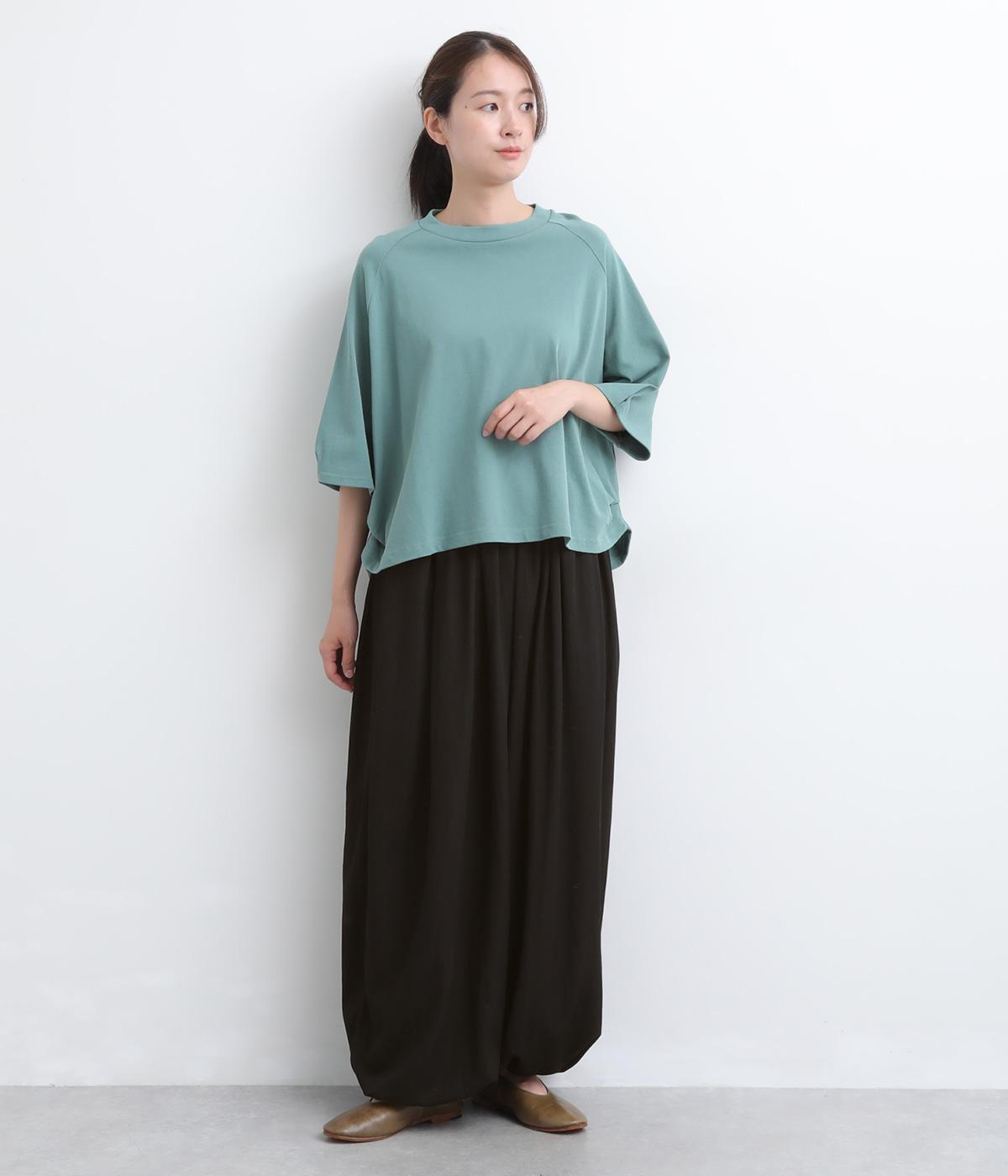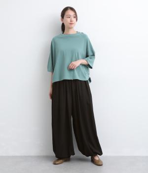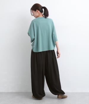 さらりとした清涼感のあるレーヨンナイロンの混紡生地を採用。とろみのあるしなやかな質感が心地よく、ほどよい肉感で安心感もあります。シワになりにくく透け感もないのでデイリーに活躍。