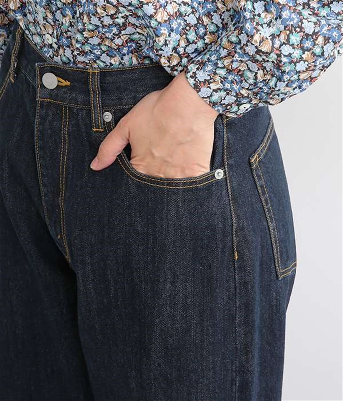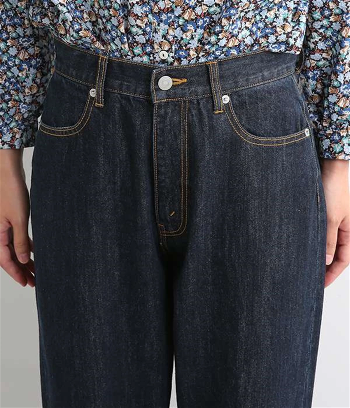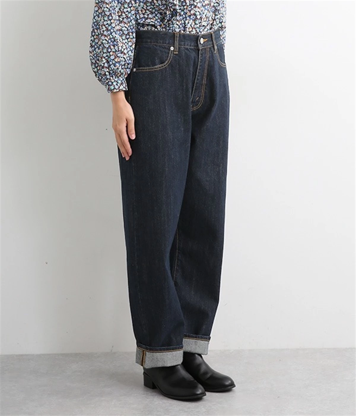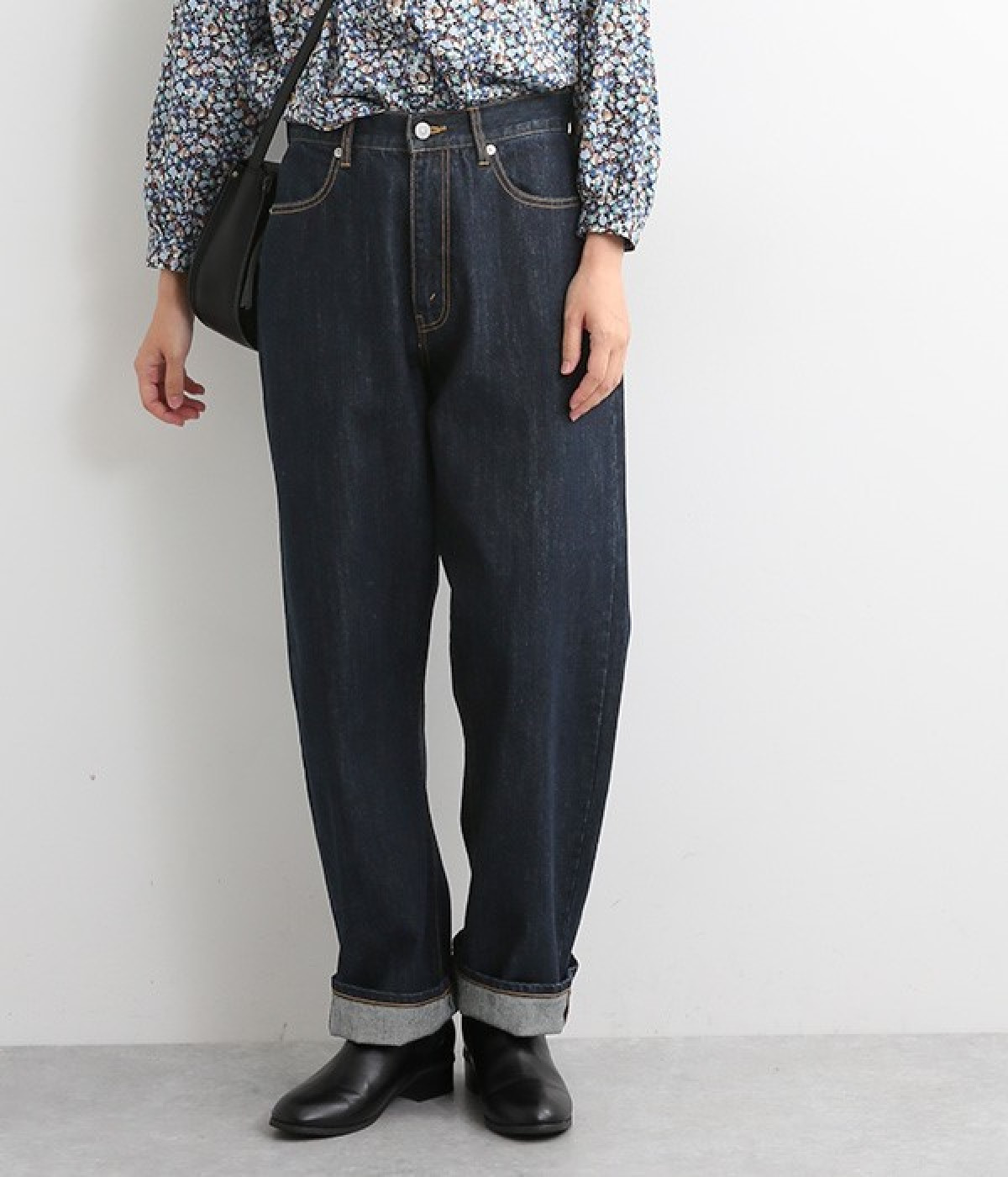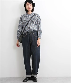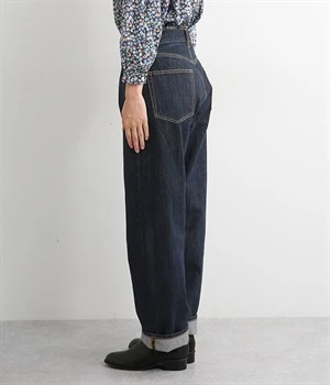脚線が目立ちにくくゆったりと穿けるワイド型のストレートデニムパンツ。リラクシーなサイズ設計ながら、くせのないストレートシルエットですっきりと見えるように意識しました。適度な重さの12.3ozデニムを採用しており、オールシーズン着用できるのもポイント。レングスも長めに設定しているので、太めのロールアップでユニセックス風の着こなしも楽しめます。