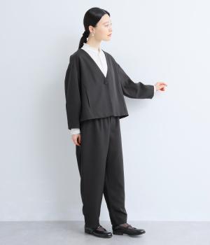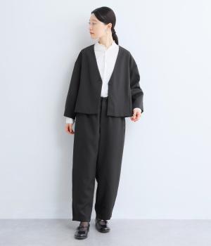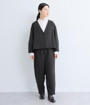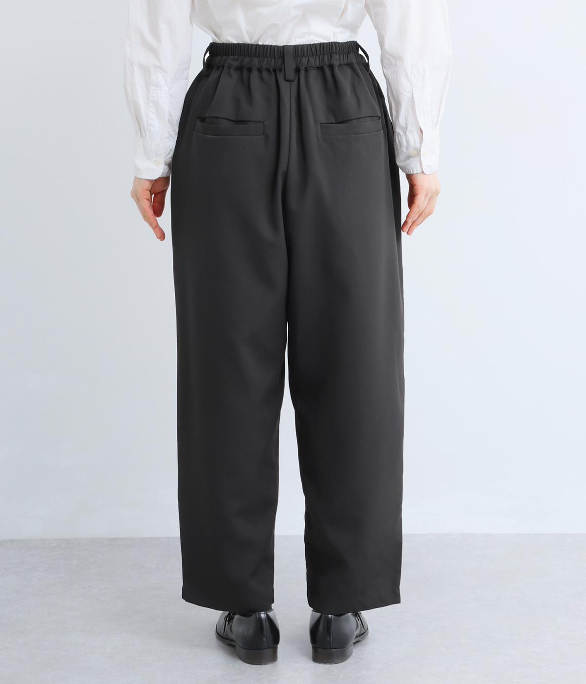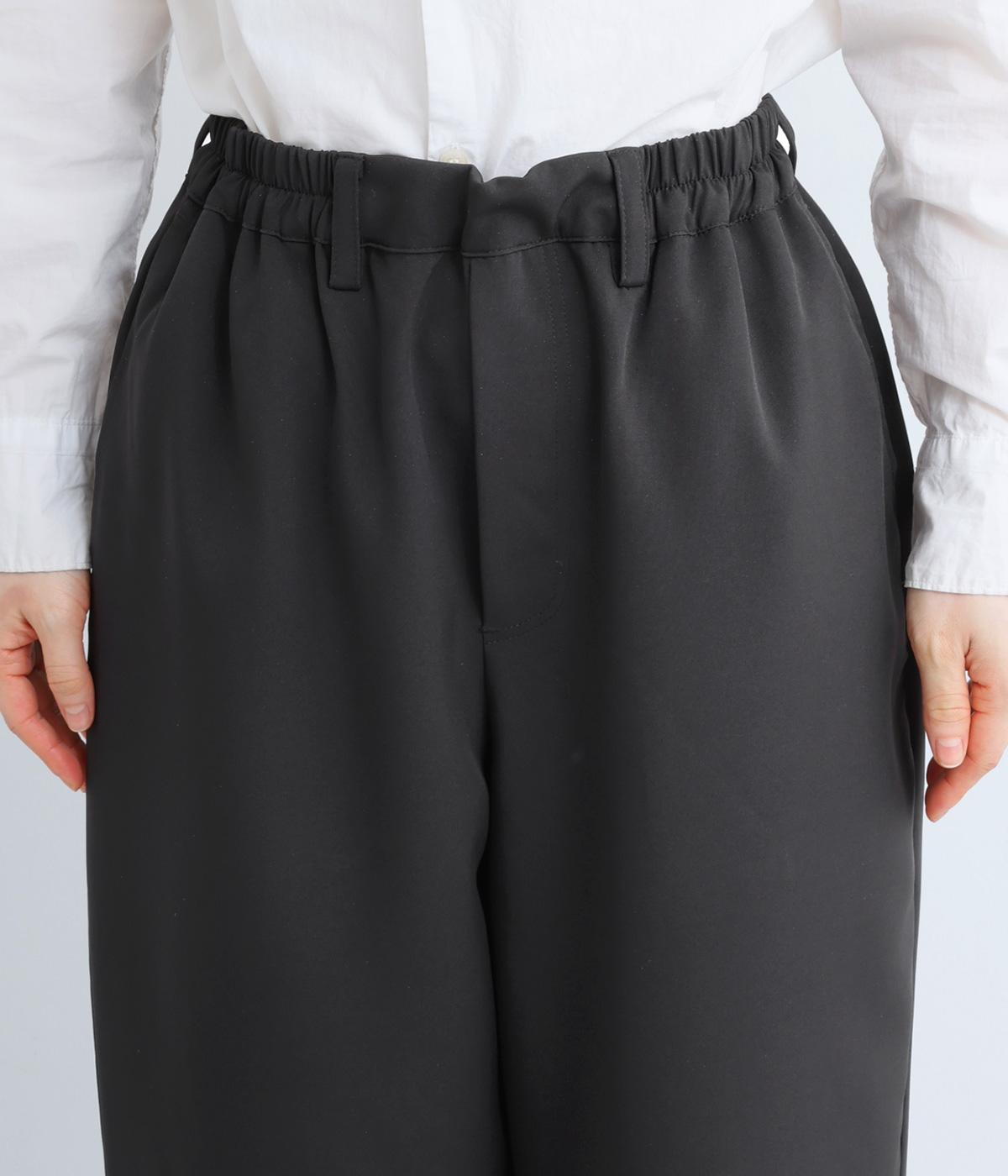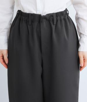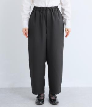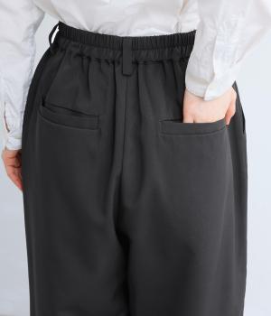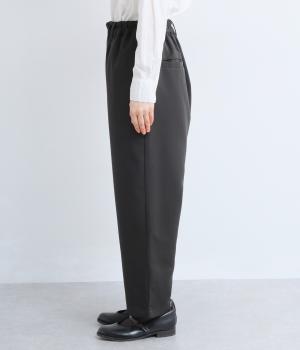 ヒップや太もものラインを拾いにくく、全体のバランスをすっきりと見せるテーパードパンツ。上品な生地を使用した、きれいめにもカジュアルにも合わせられる一本です。ヒップと両サイドに実用性の高いポケットつき。ウエストはサイドから後ろにかけてゴムを通しました。