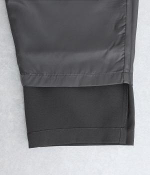 なめらかな表面感で、着こなしを上品に見せてくれる生地です。シルエットを美しくキープするハリ感も魅力。脚にまとわりつくのを防ぐさらりとした裏地をつけました。