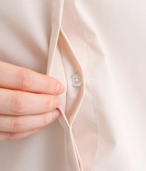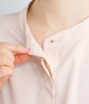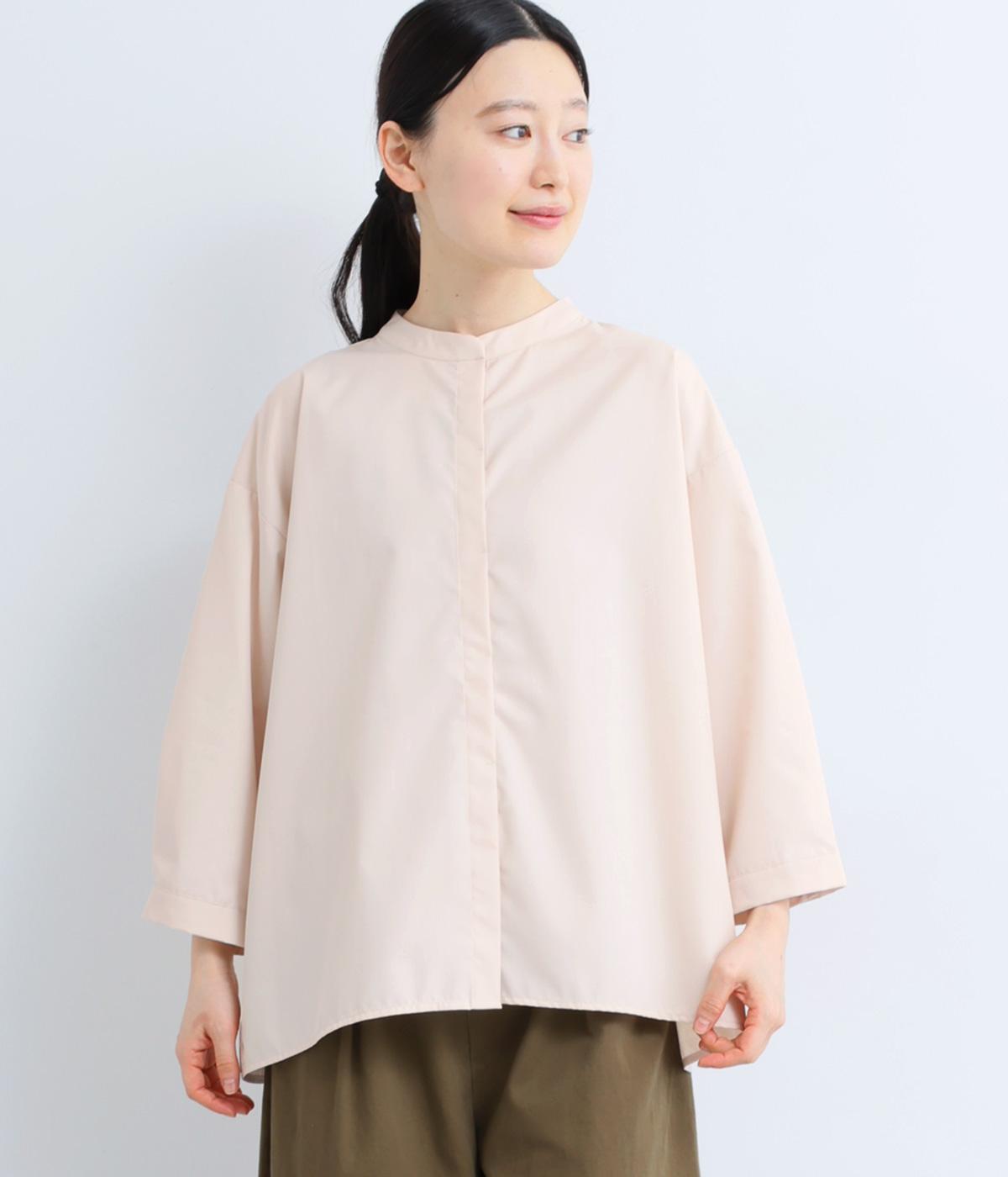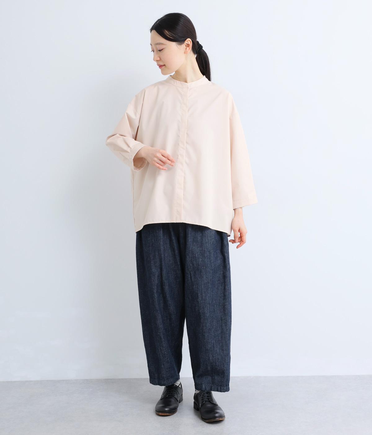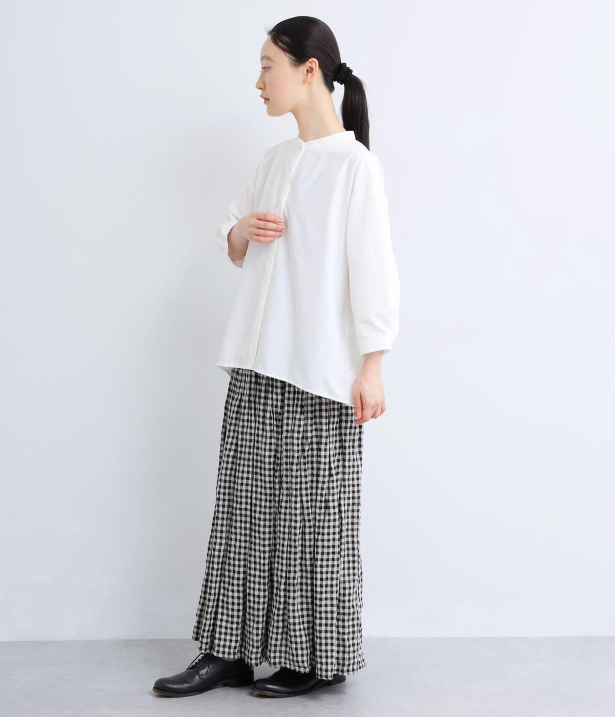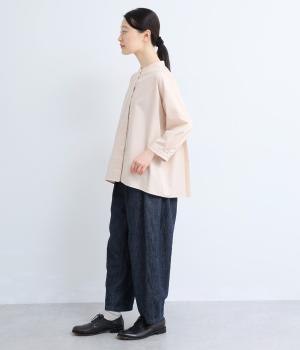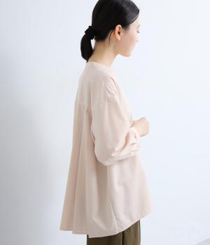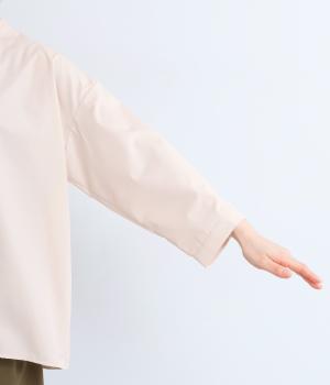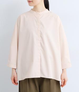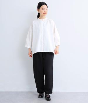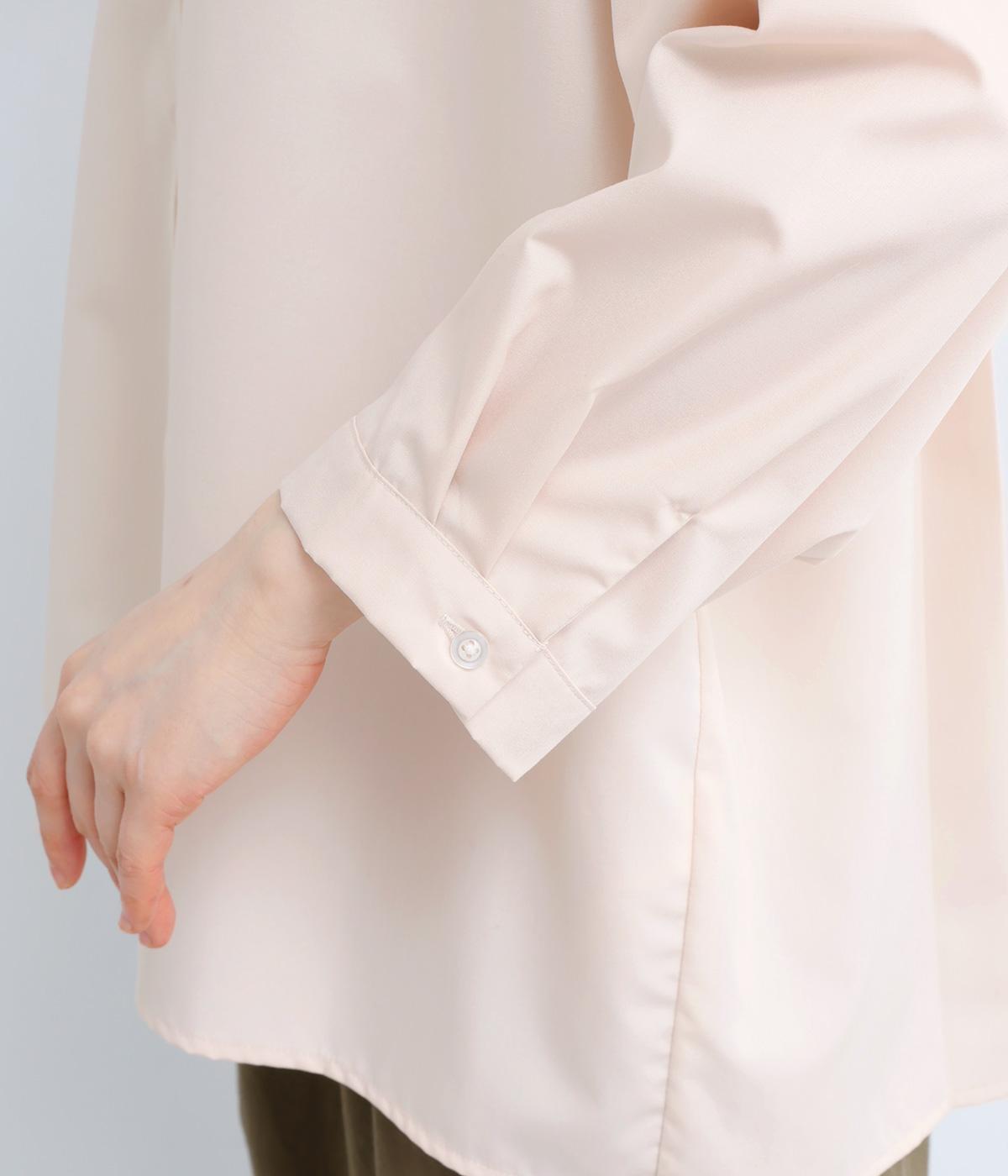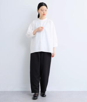 背中の立体的なプリーツが印象的なブラウス。フロントは比翼仕立てでボタンを隠し、シンプルに品よくデザインしました。手首が覗くやや短めの袖丈が女性らしい抜け感を演出。カジュアルにもきれいめにもマッチする一枚です。