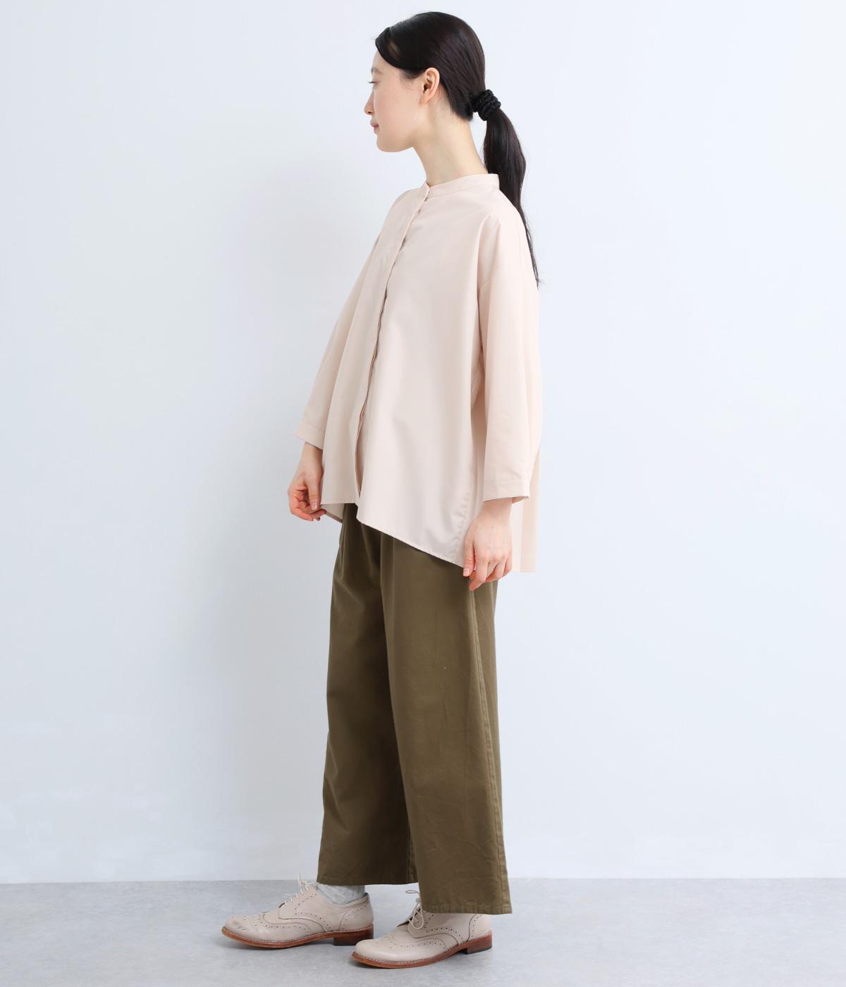 着こなしを品よく仕上げてくれる、さらりとしたなめらかな風合いのレーヨン混生地です。体のラインを拾いにくい、ほどよいハリ感が◎。プリーツの折り目も美しくキープしてくれます。