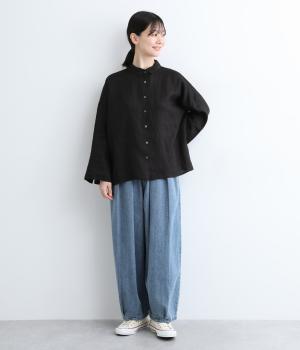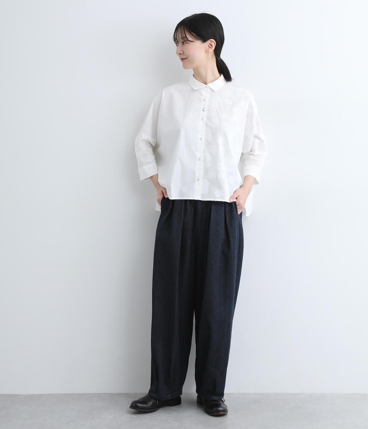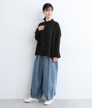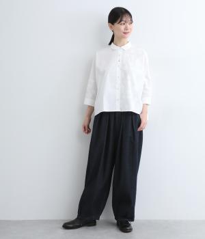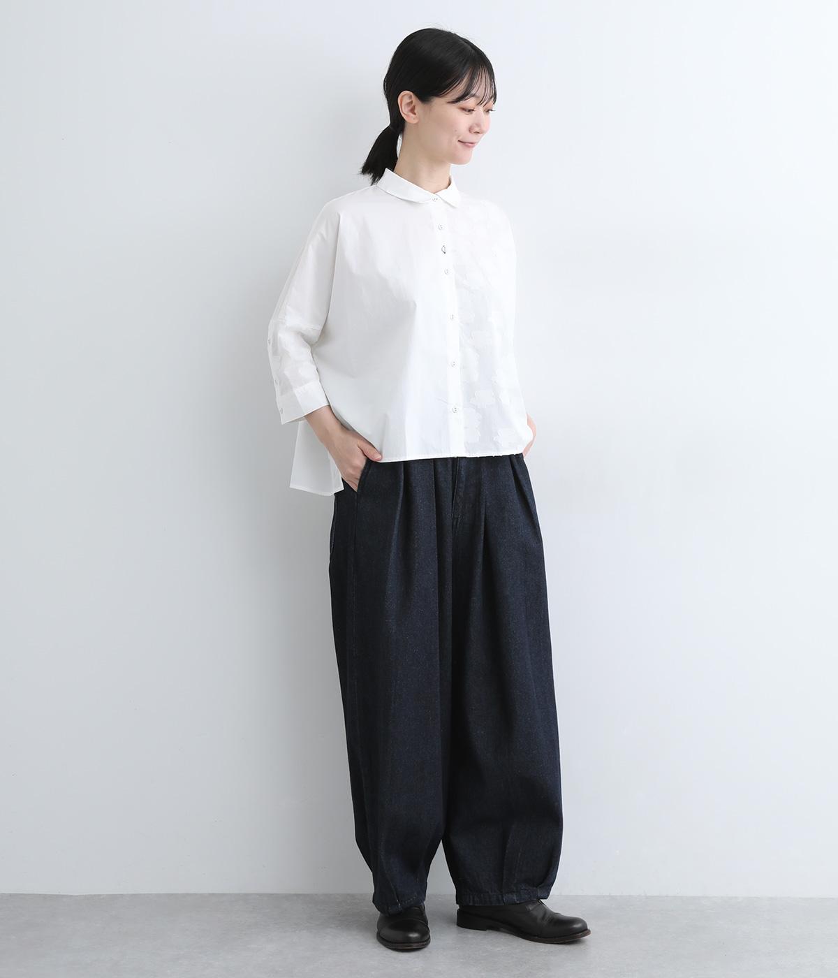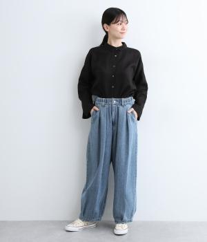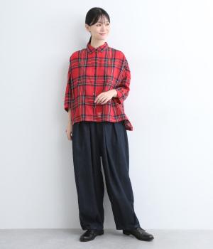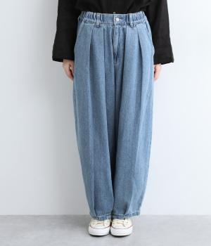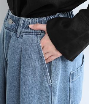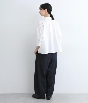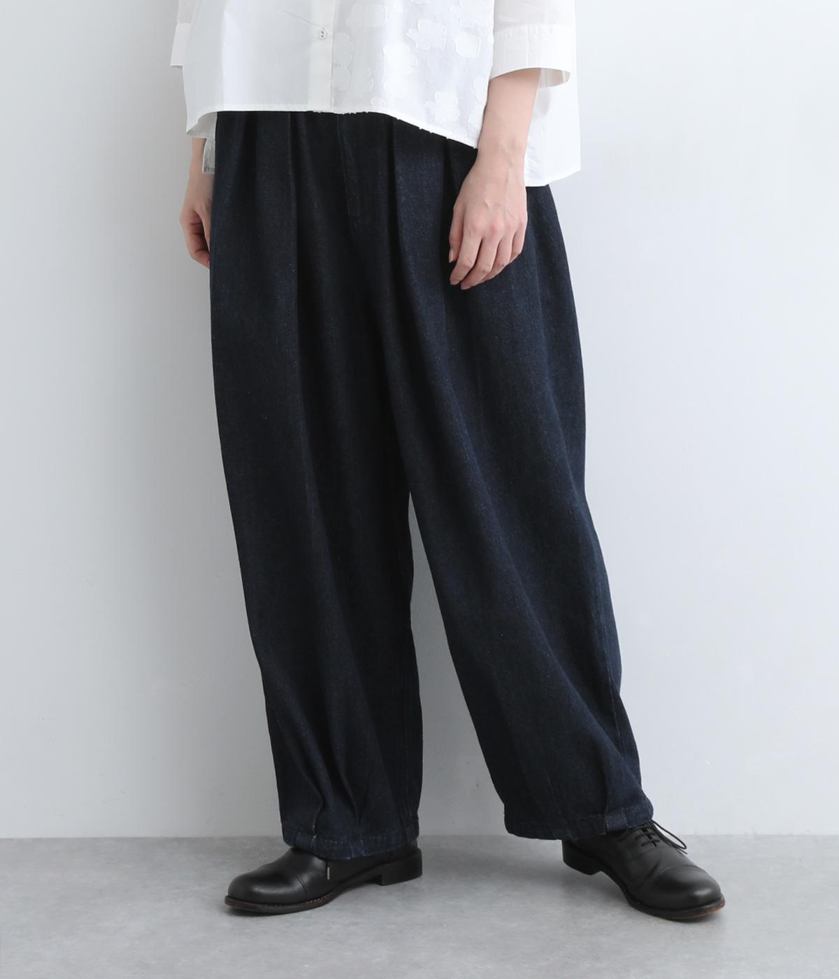 ウエストと裾にタックをいれて丸みを出し、立体感のあるコクーンシルエットにこだわりました。前ファスナーで脱ぎはきしやすく、サイドから後ろにかけてゴムを入れたリラックス仕様。ヒップポケットも独特のゆるさを感じさせます。