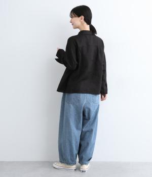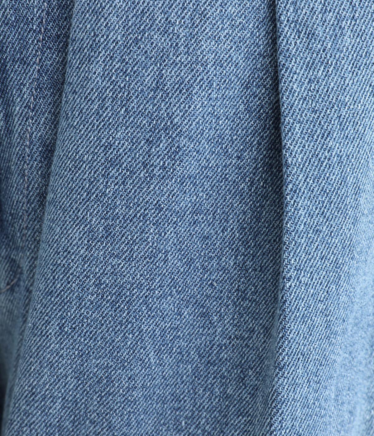 糸の撚りを弱くすることによりふくらみができた糸を、甘くゆっくりと織り上げたソフトデニム生地です。デニムらしいしっかりとしたタフさと、初期からはきやすいやわらかさが◎。