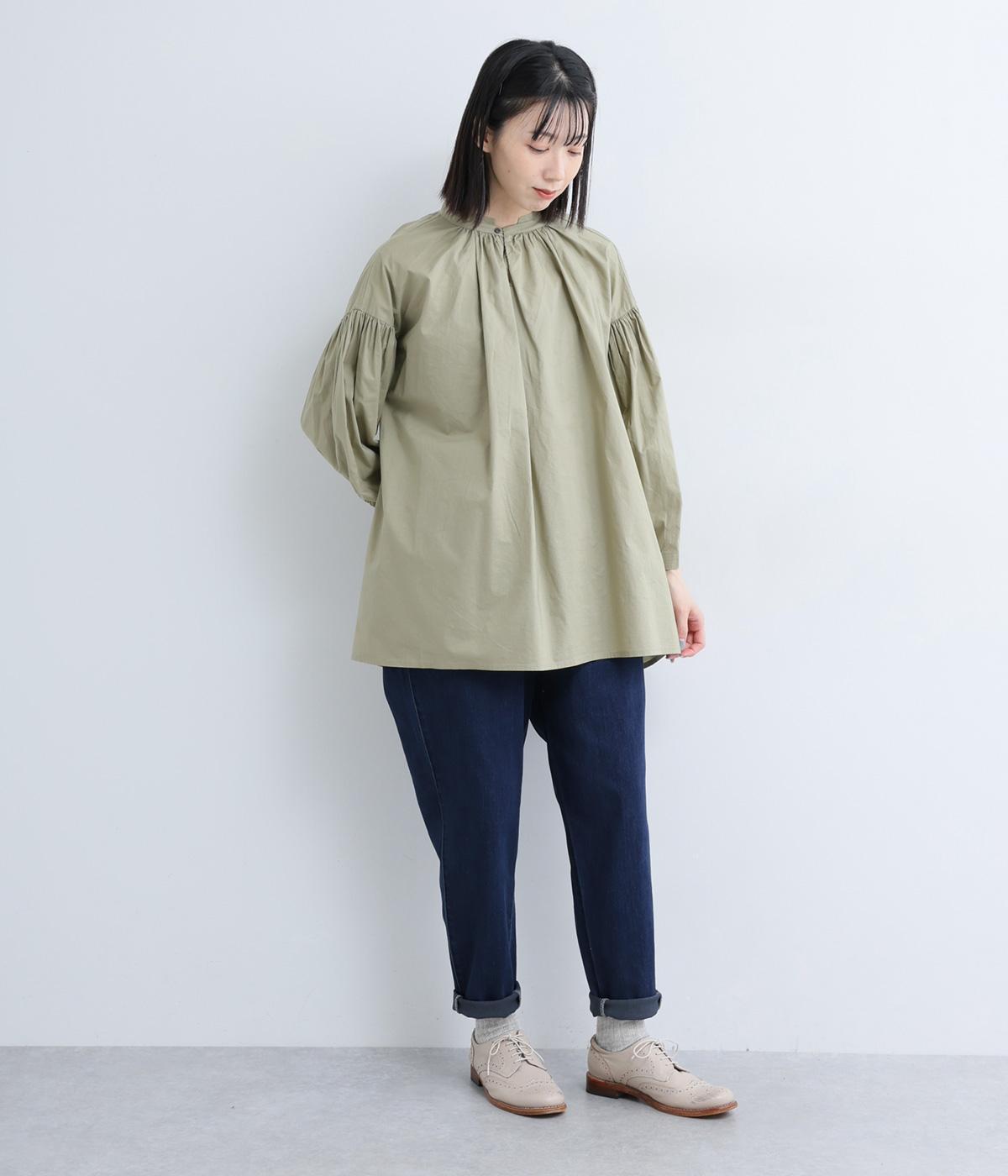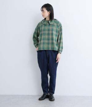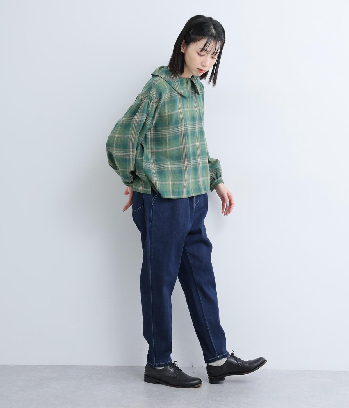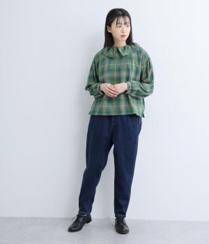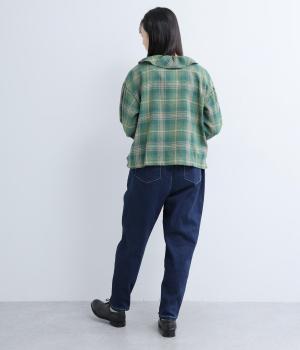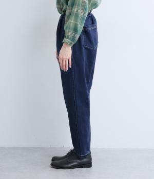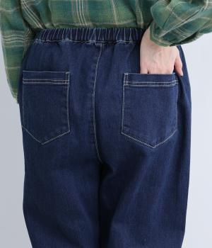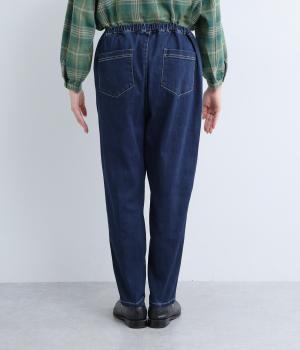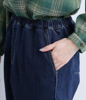 ヒップにゆとりを持たせ、裾に向かって細く仕上げた、ジョッパーズデザインが特徴です。メリハリのあるシルエットで、脚のラインをきれいに見せながら、着用感も◎。膝下のシルエットがすっきりしているので、ワンピースやチュニックとのレイヤードにもおすすめです。