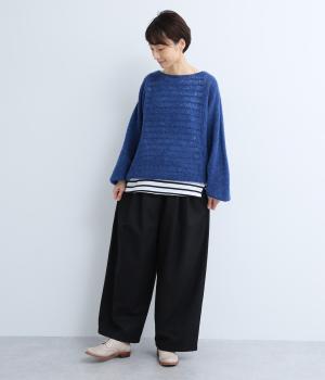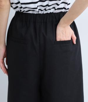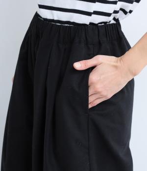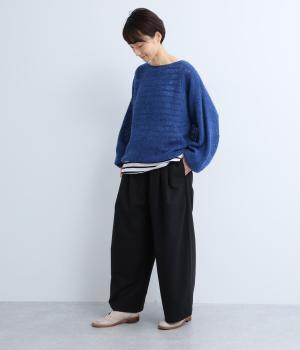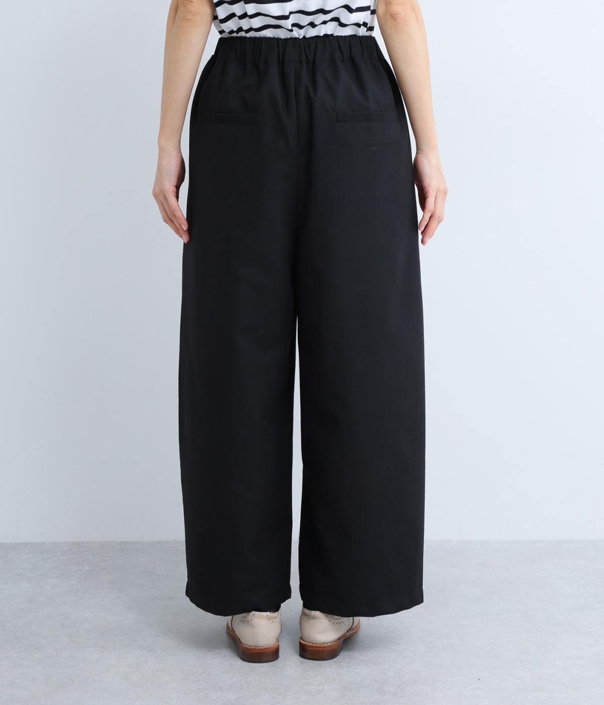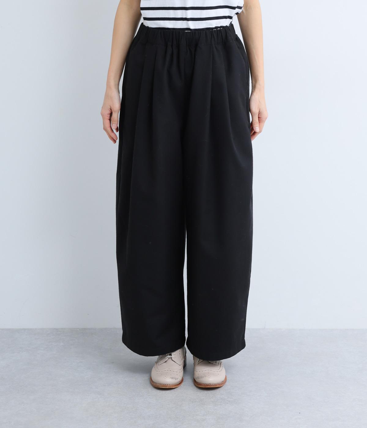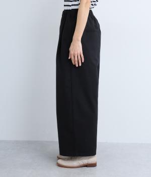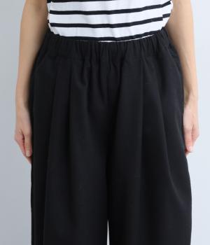 ゆとりを持たせた腰まわりにタックを入れ、ふんわりとふくらむシルエットをつくりました。裾に向かってやや細くなるコクーンラインが、脚のラインをきれいに見せつつ、抜け感も演出します。快適なはき心地なので、デイリー使いはもちろん、きれいめな装いにも合わせやすい一本です。