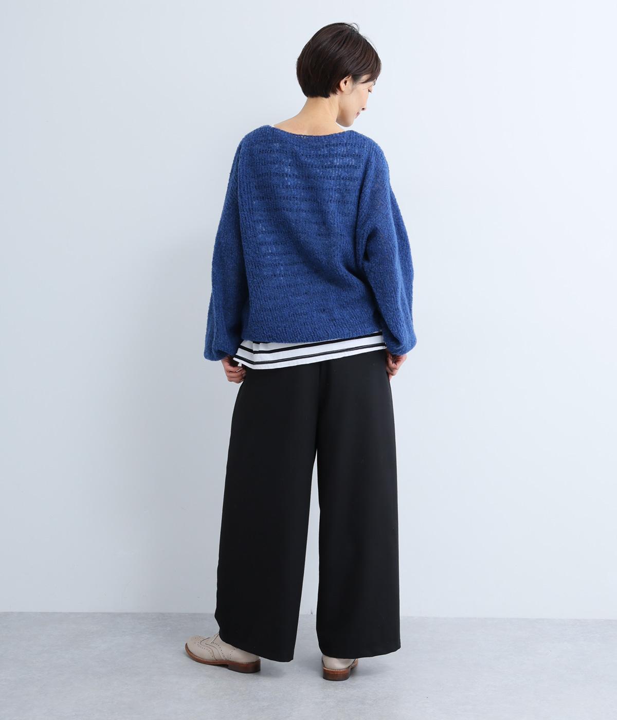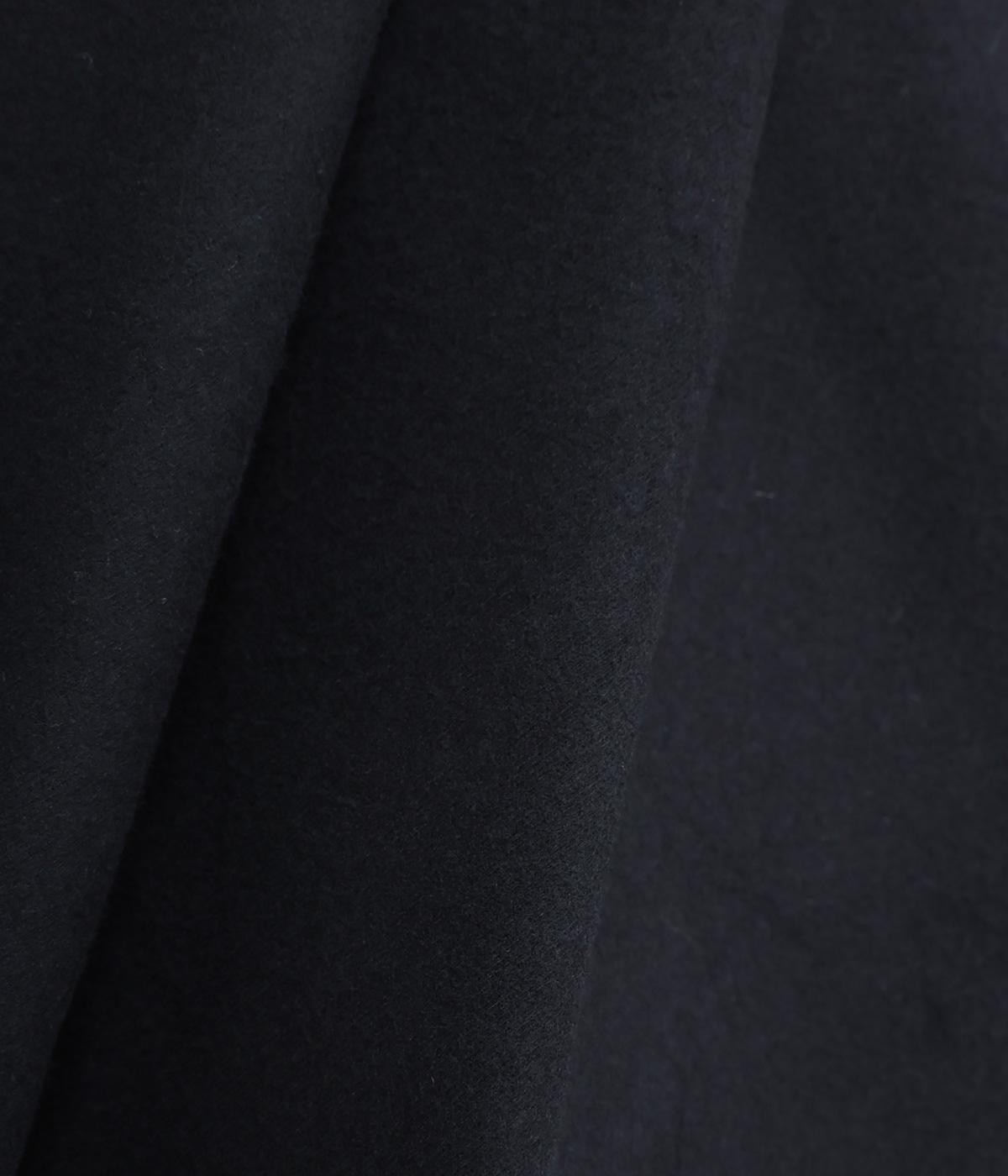 ほんのりと起毛した風合いがあたたかみを感じさせる、ウール調の生地を使用しています。やわらかさと軽さを兼ね備え、肌ざわりも心地よいのが魅力です。ほどよく落ち感があるため、シルエットがきれいに整い、上品な印象を添えてくれます。