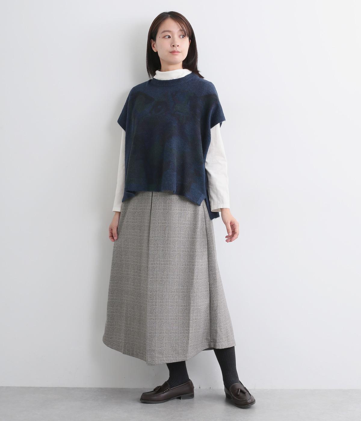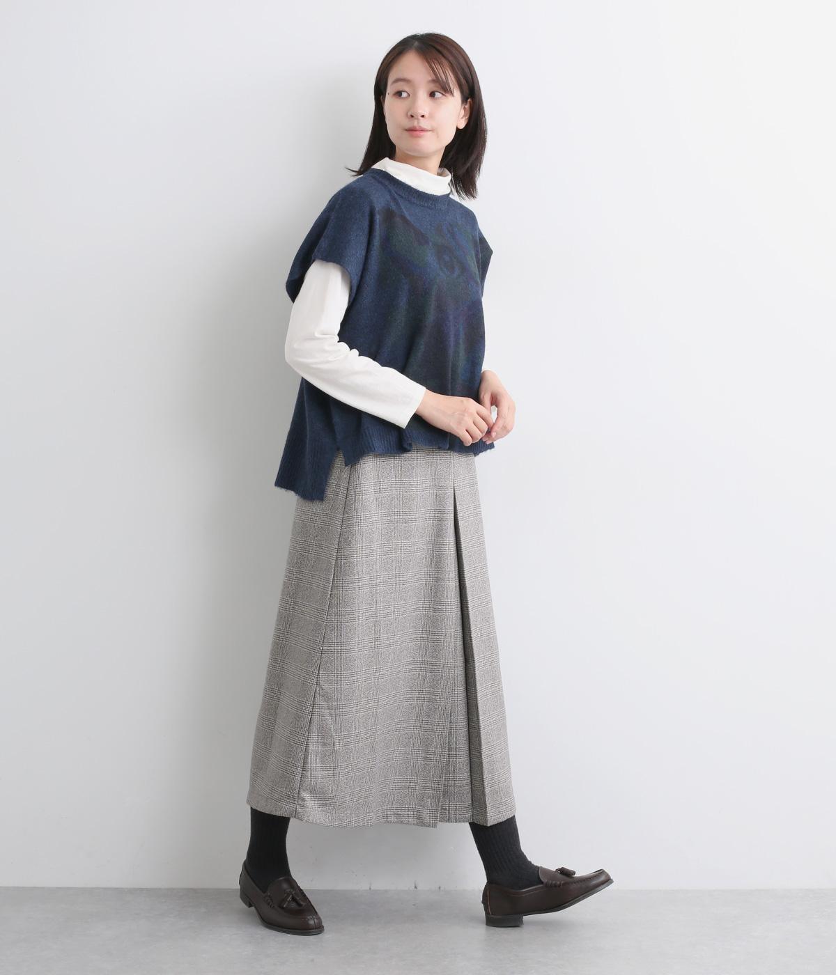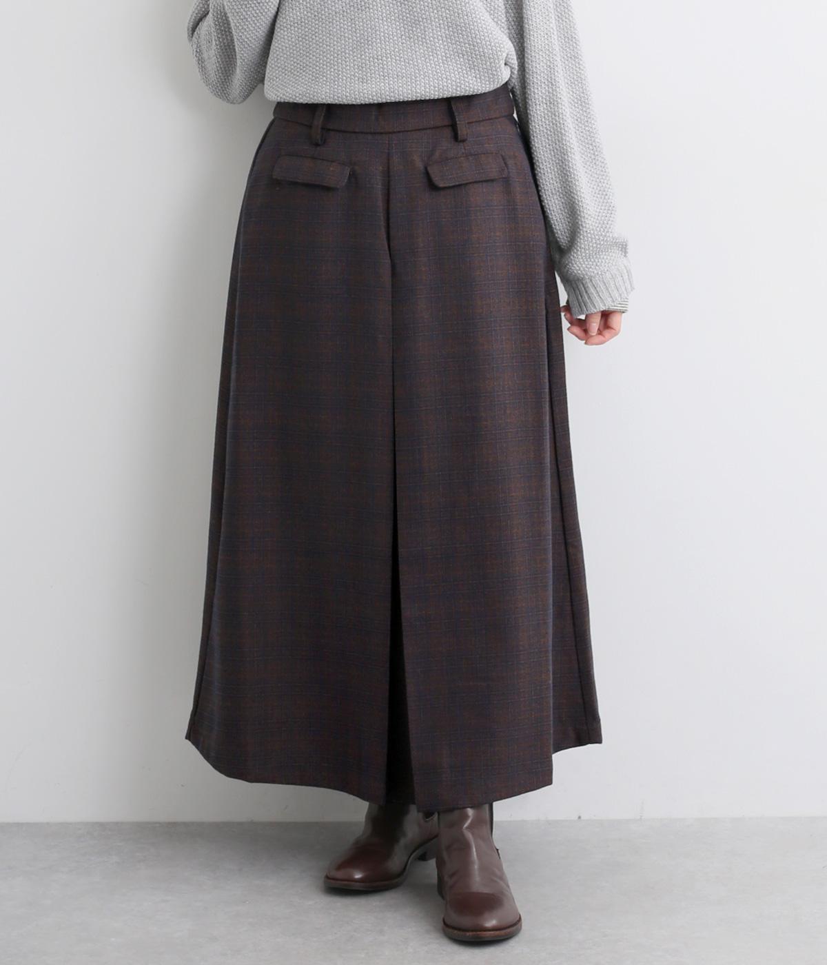 チェック柄やフロントポケットがクラシカルなロングスカート。前後に入れたタックが美しいAラインをつくります。ウエストは後ろゴム仕様でフロントまわりはすっきり。着脱しやすいサイドファスナー仕様です。